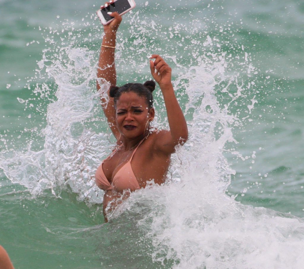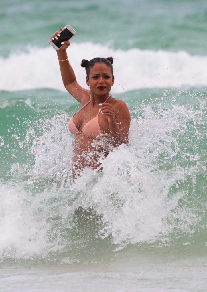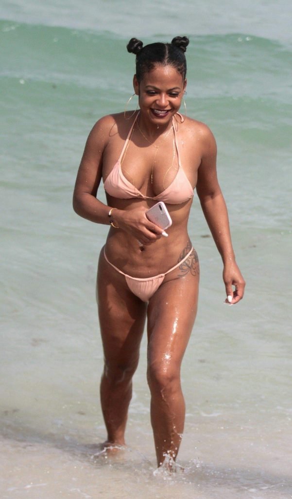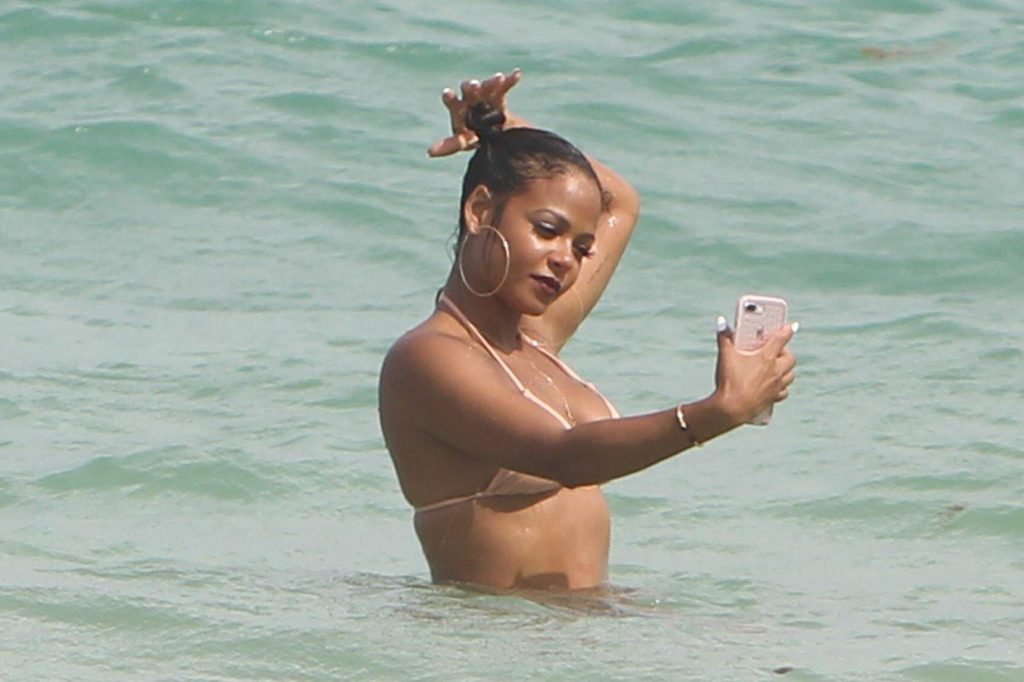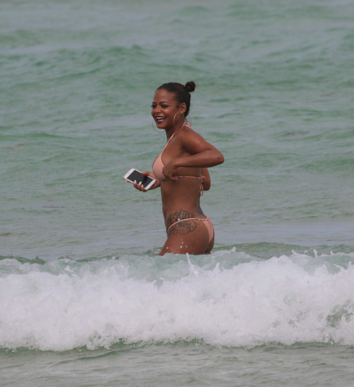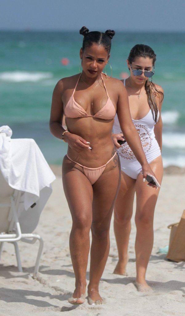 Christina Milian muestra su cuerpo en bikini en la playa de Miami, 20/08/2017. Christina Milian es una estrella estadounidense de R&B y actriz.