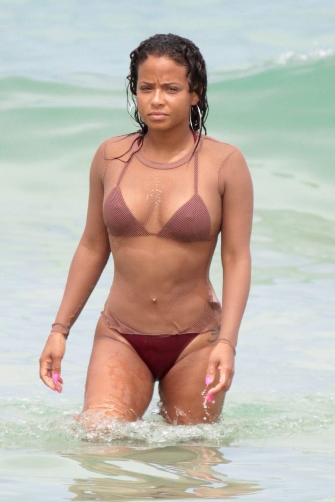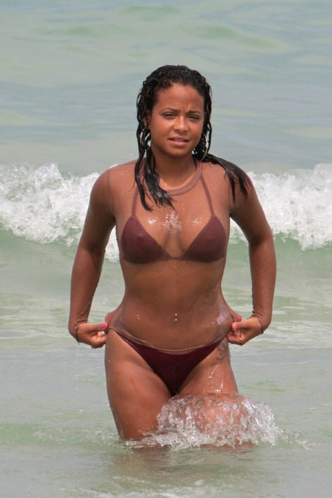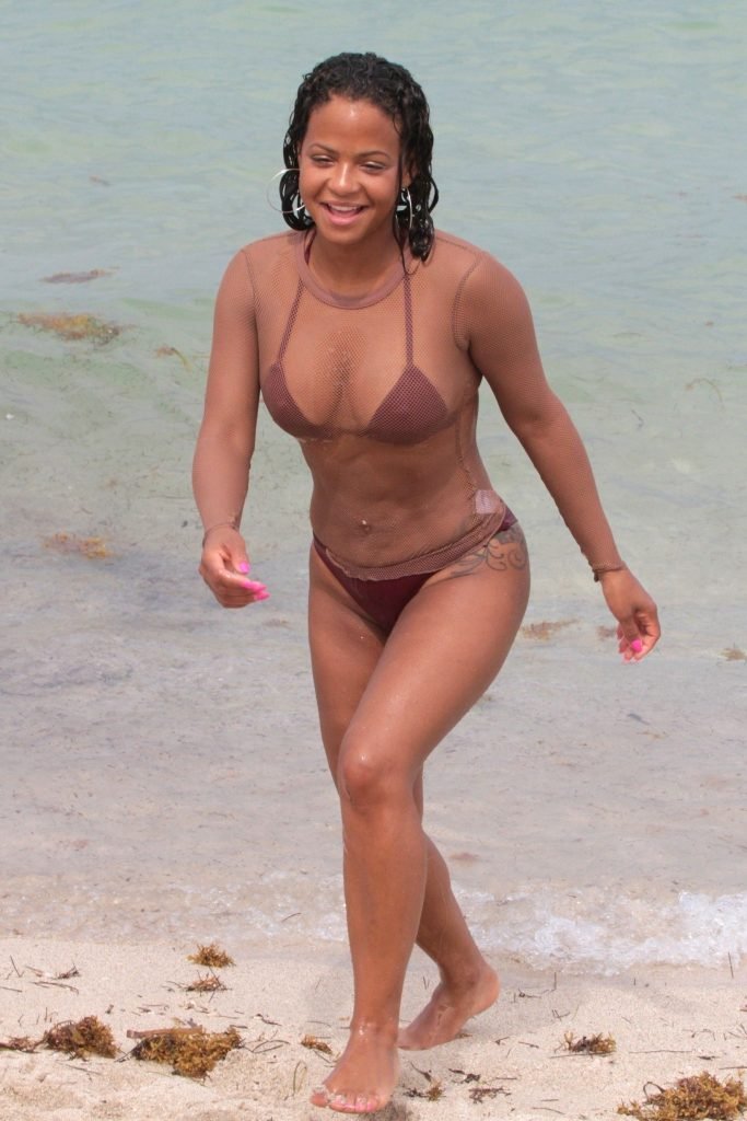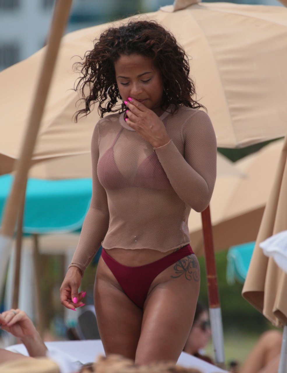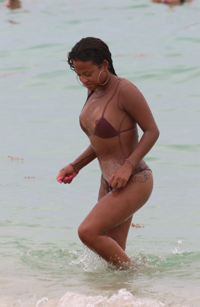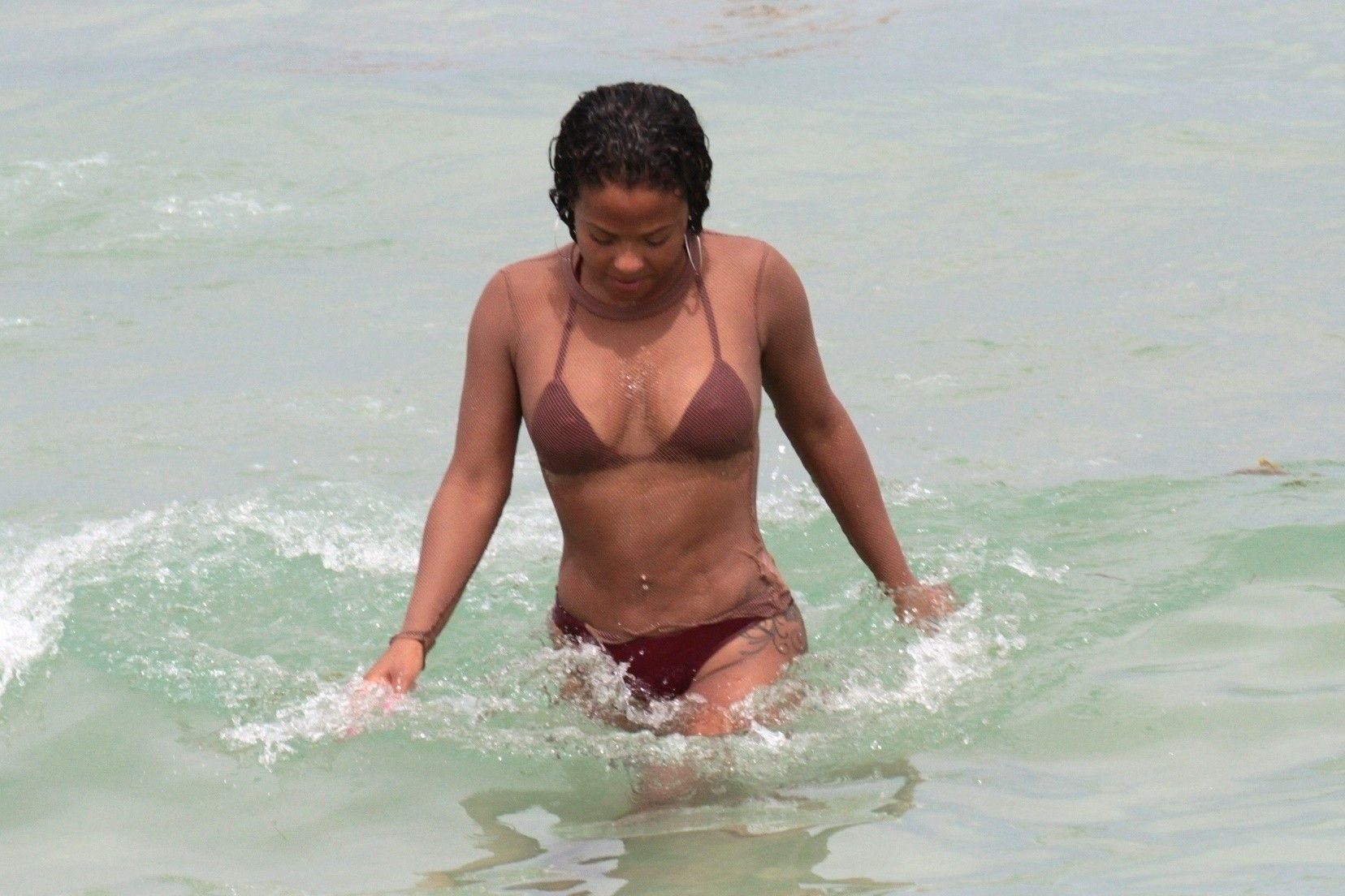 La cantante, compositora y actriz estadounidense Christina Milian disfruta de la playa con un bikini marrón, 22/07/2017.