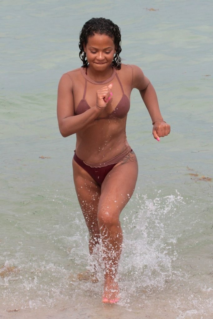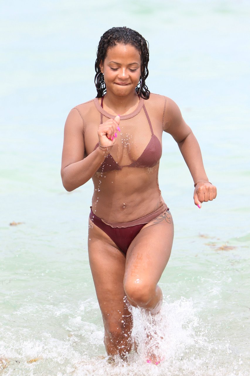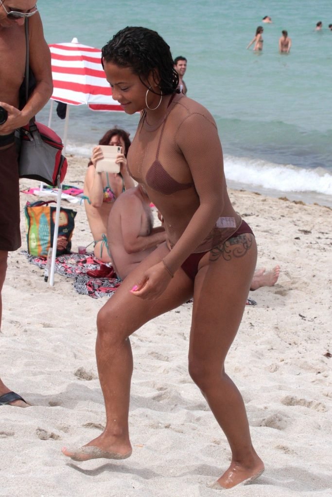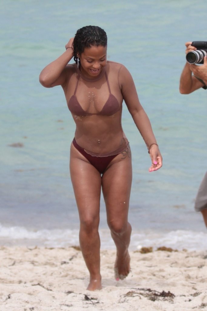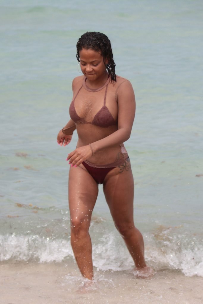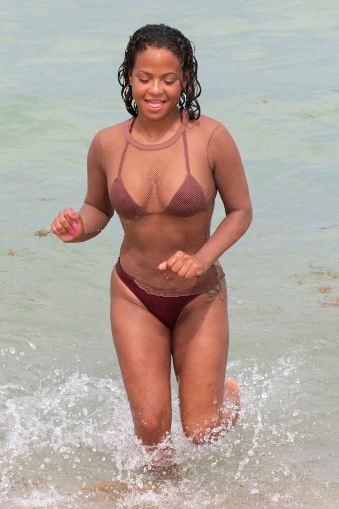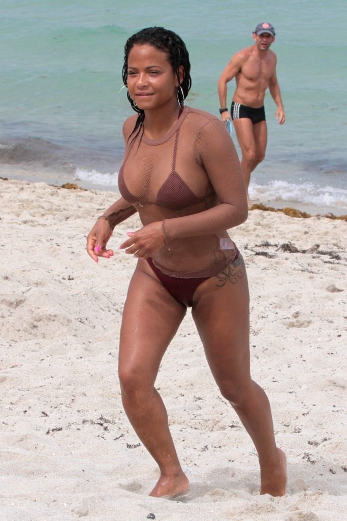 La cantante, compositora y actriz estadounidense Christina Milian disfruta de la playa con un bikini marrón, 22/07/2017.