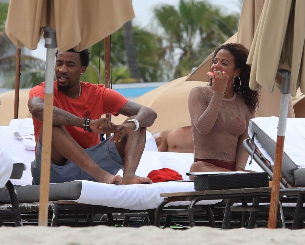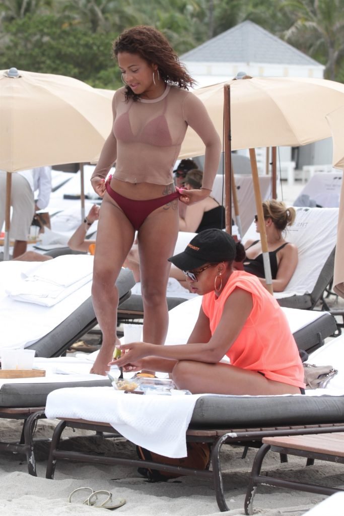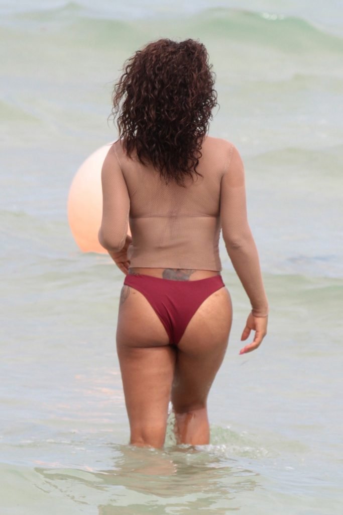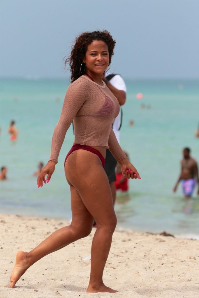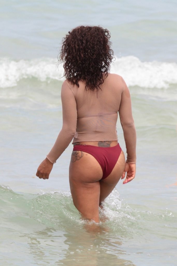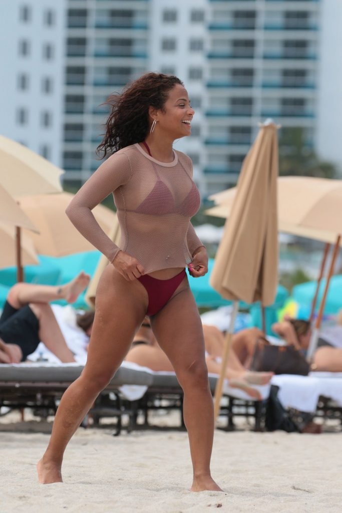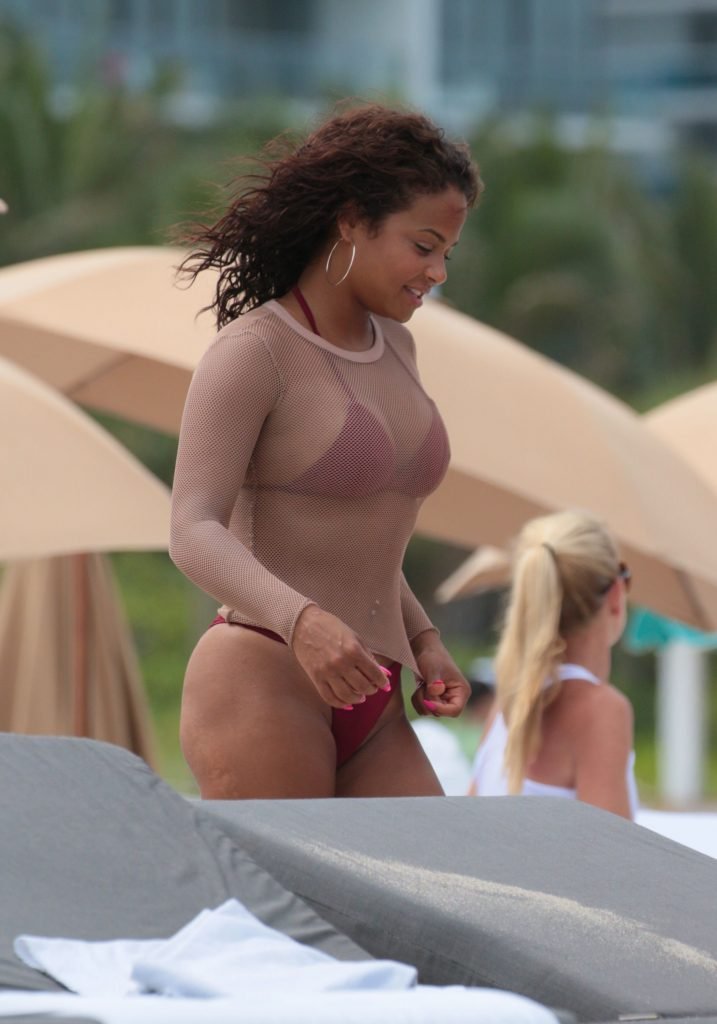 La cantante, compositora y actriz estadounidense Christina Milian disfruta de la playa con un bikini marrón, 22/07/2017.