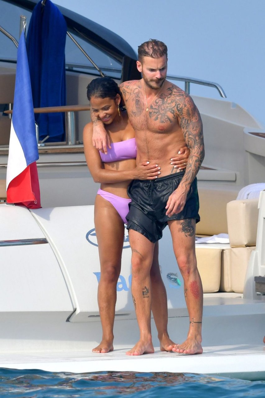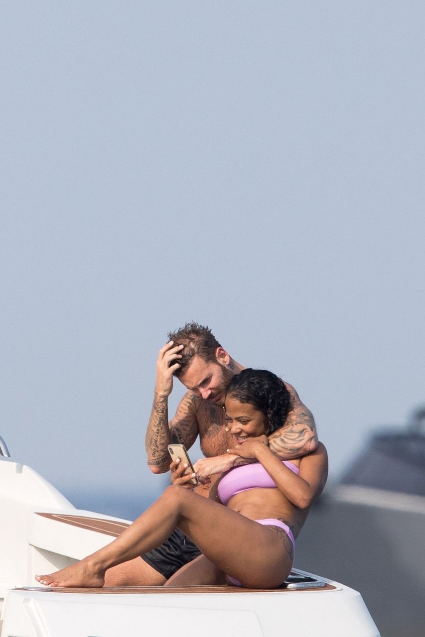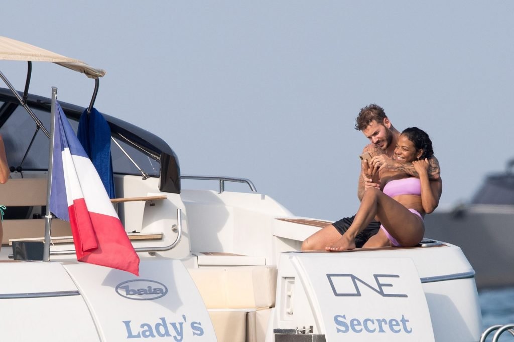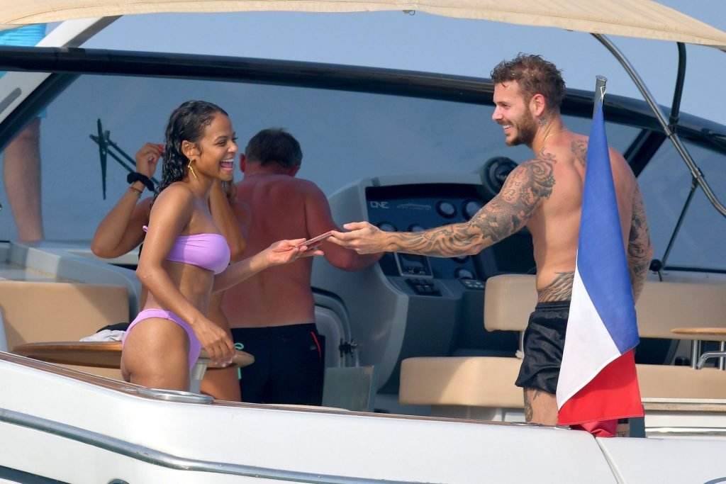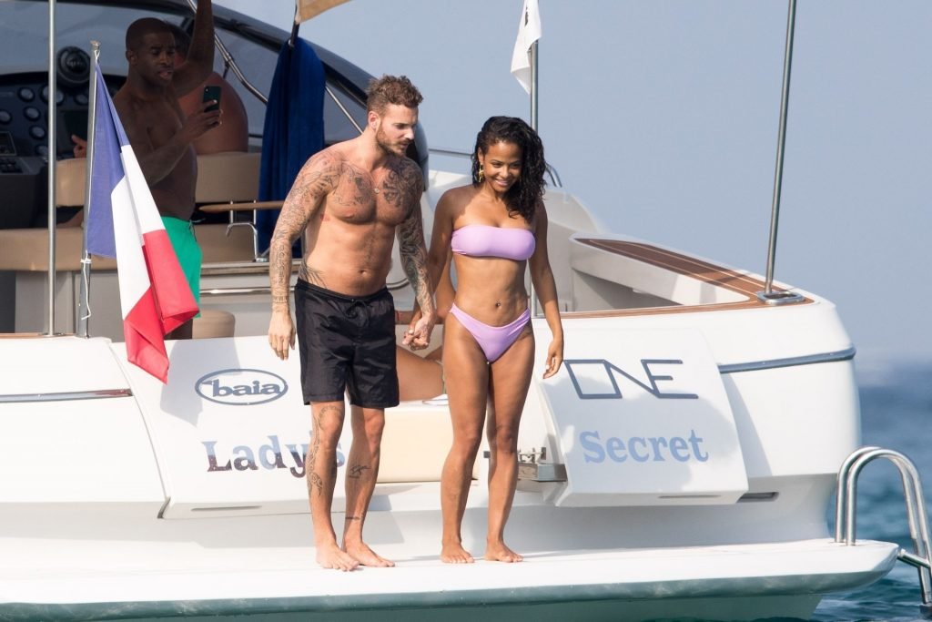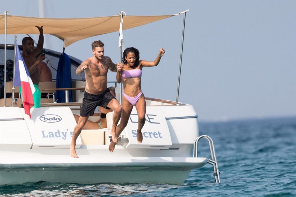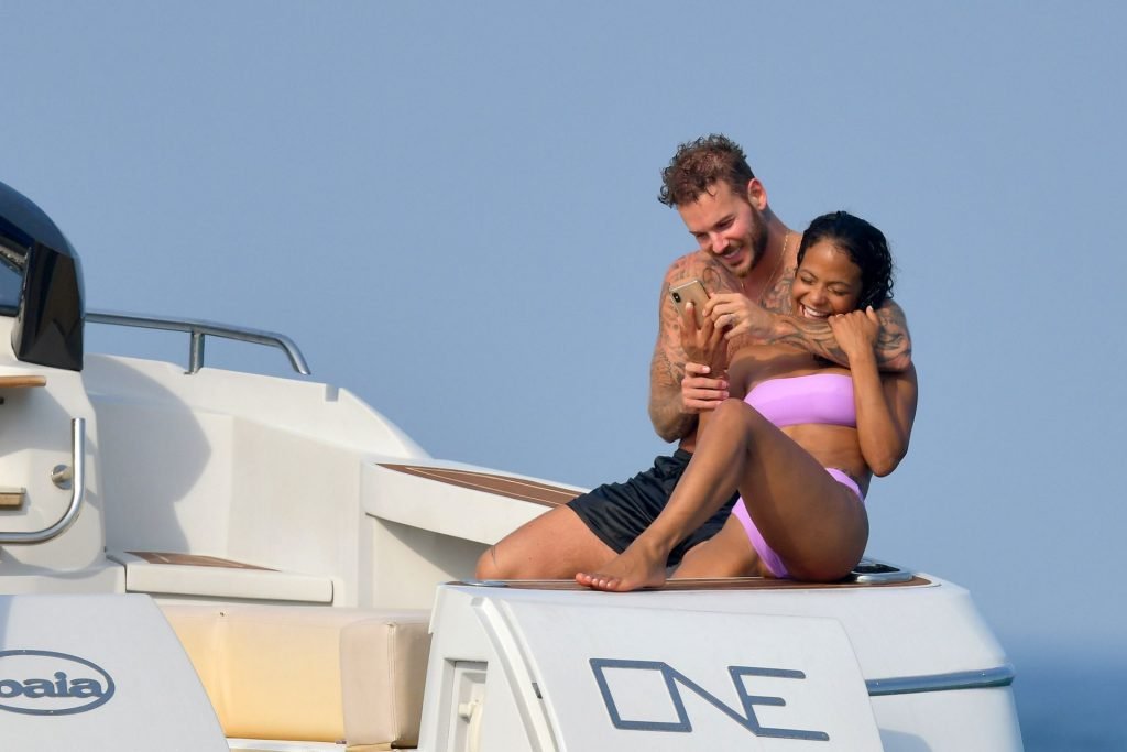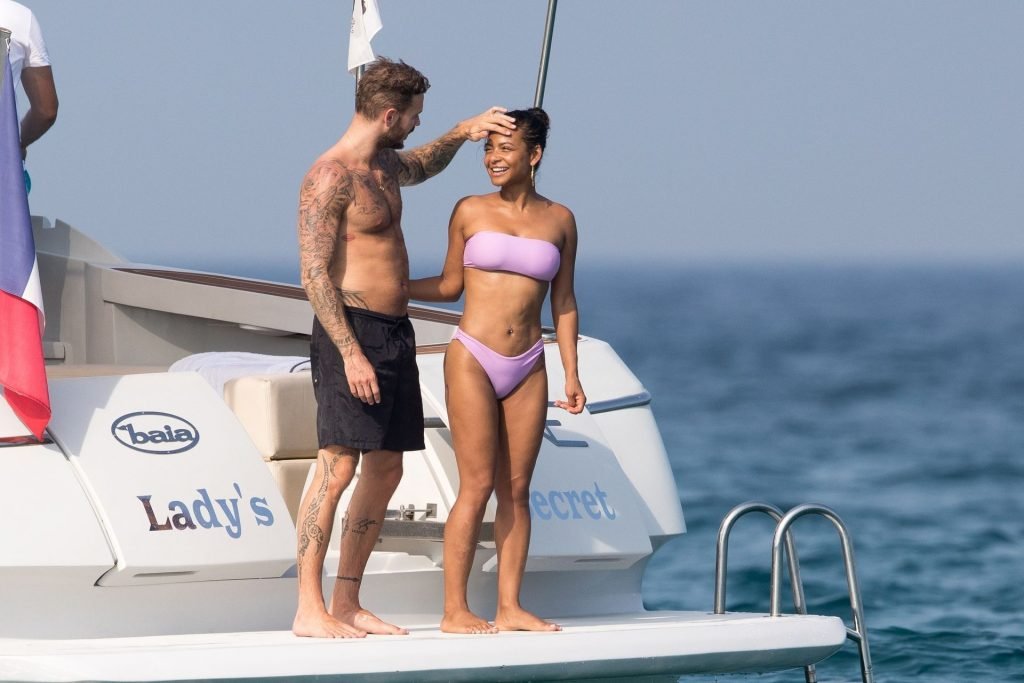 La cantante y actriz Christina Milian y su novio de mucho tiempo Matt Pokora (M. Pokora) disfrutan del sol en la Riviera Francesa con amigos en el barco Lady’s Secret en Francia, 29/06/2019.