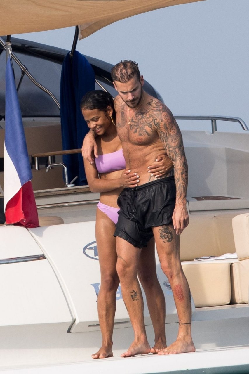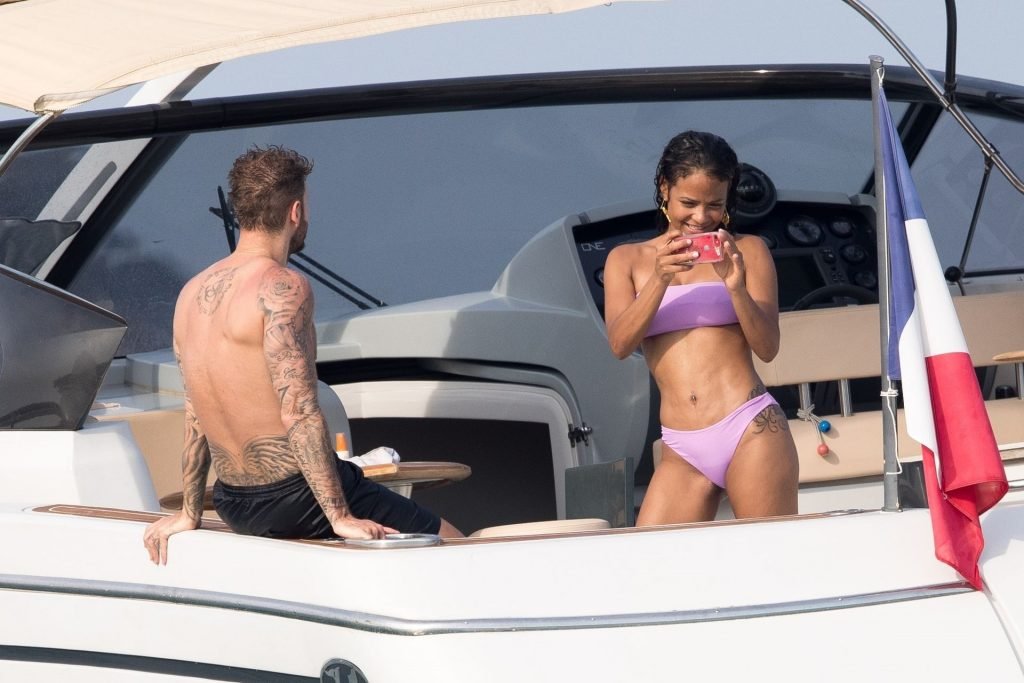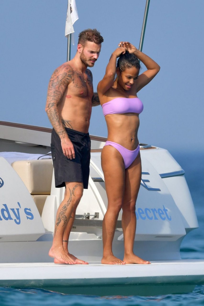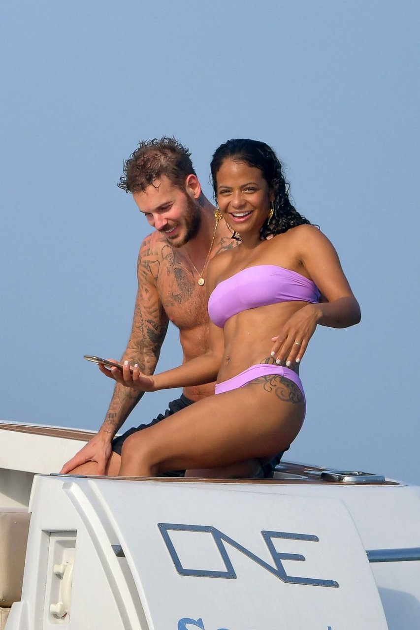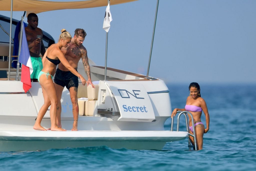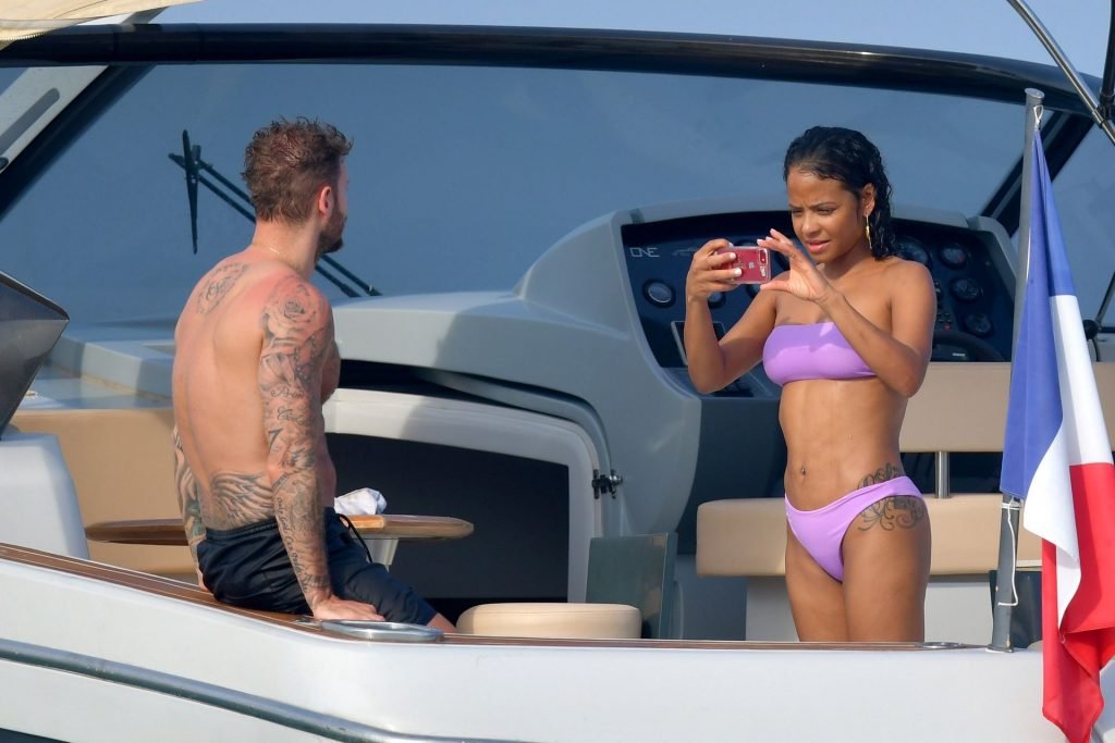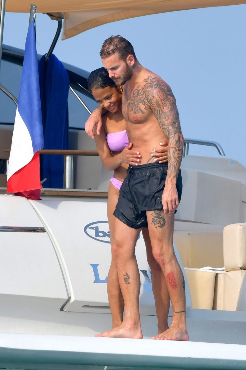 La cantante y actriz Christina Milian y su novio de mucho tiempo Matt Pokora (M. Pokora) disfrutan del sol en la Riviera Francesa con amigos en el barco Lady’s Secret en Francia, 29/06/2019.