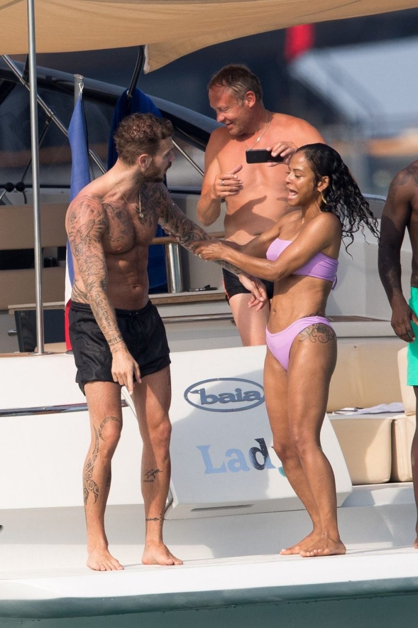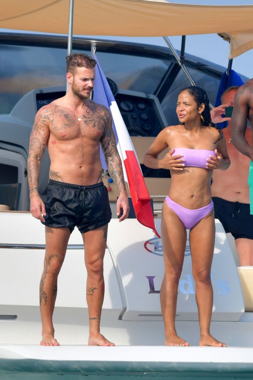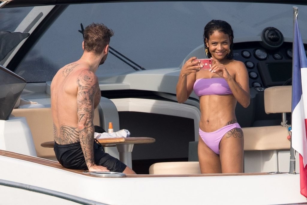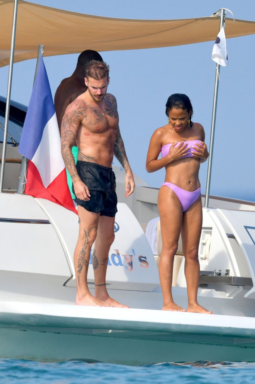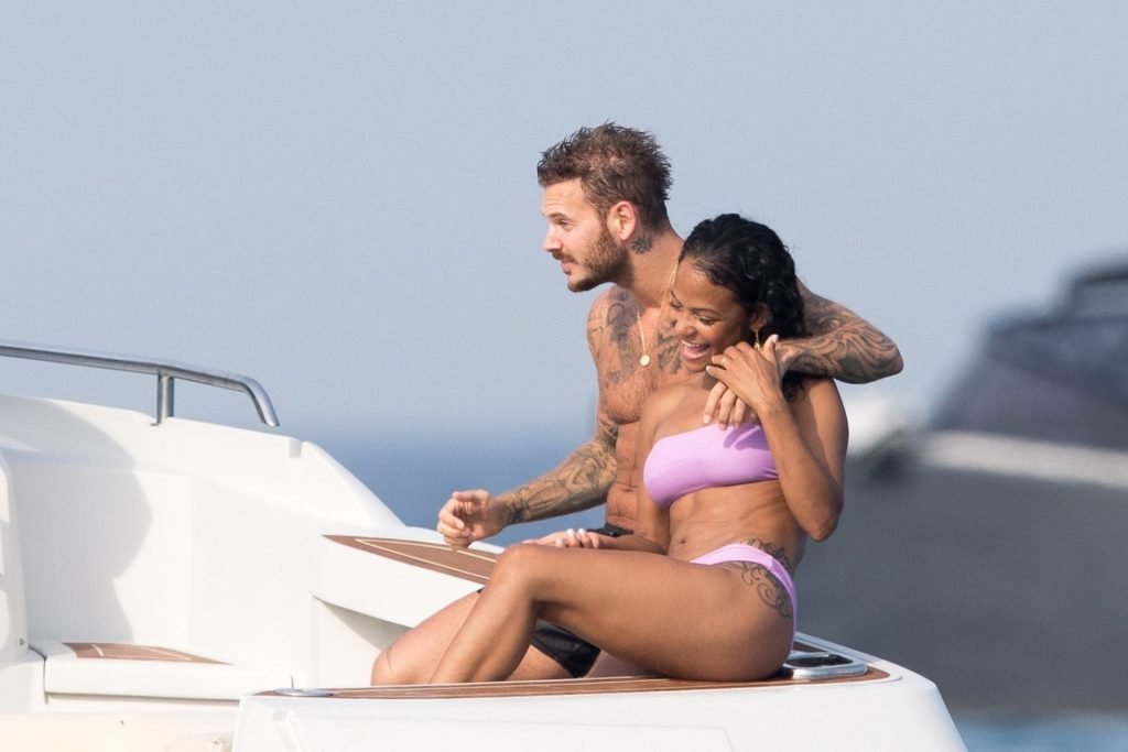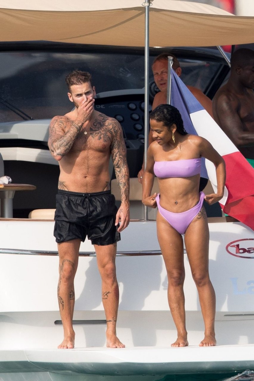 La cantante y actriz Christina Milian y su novio de mucho tiempo Matt Pokora (M. Pokora) disfrutan del sol en la Riviera Francesa con amigos en el barco Lady’s Secret en Francia, 29/06/2019.