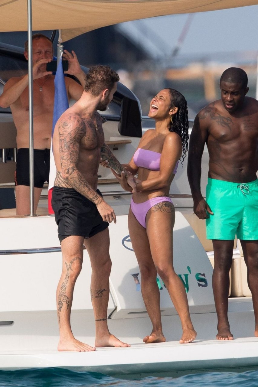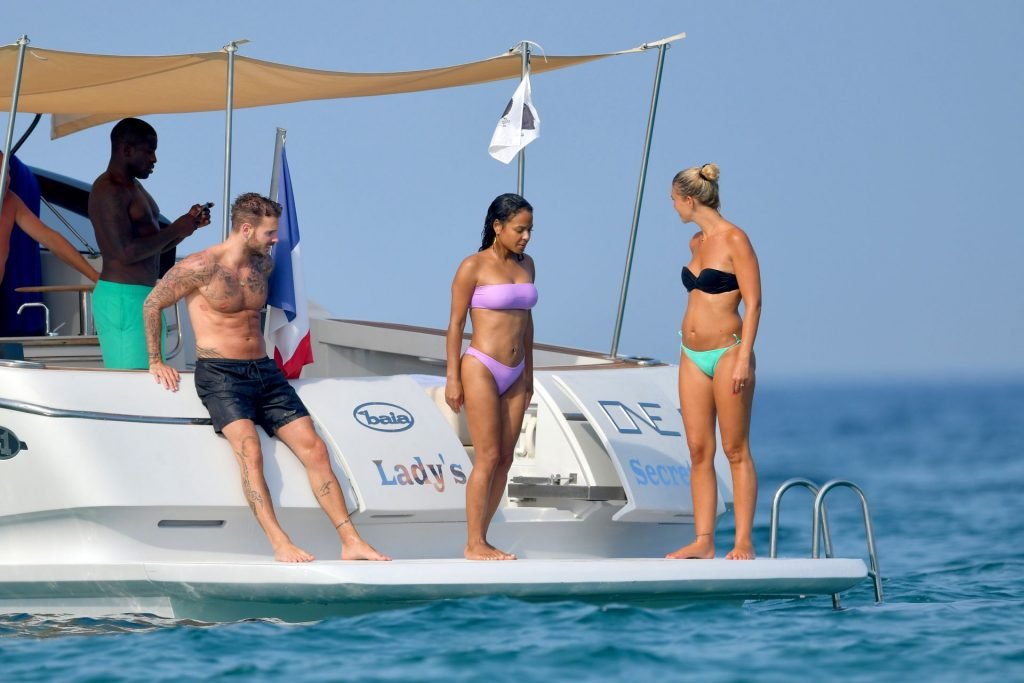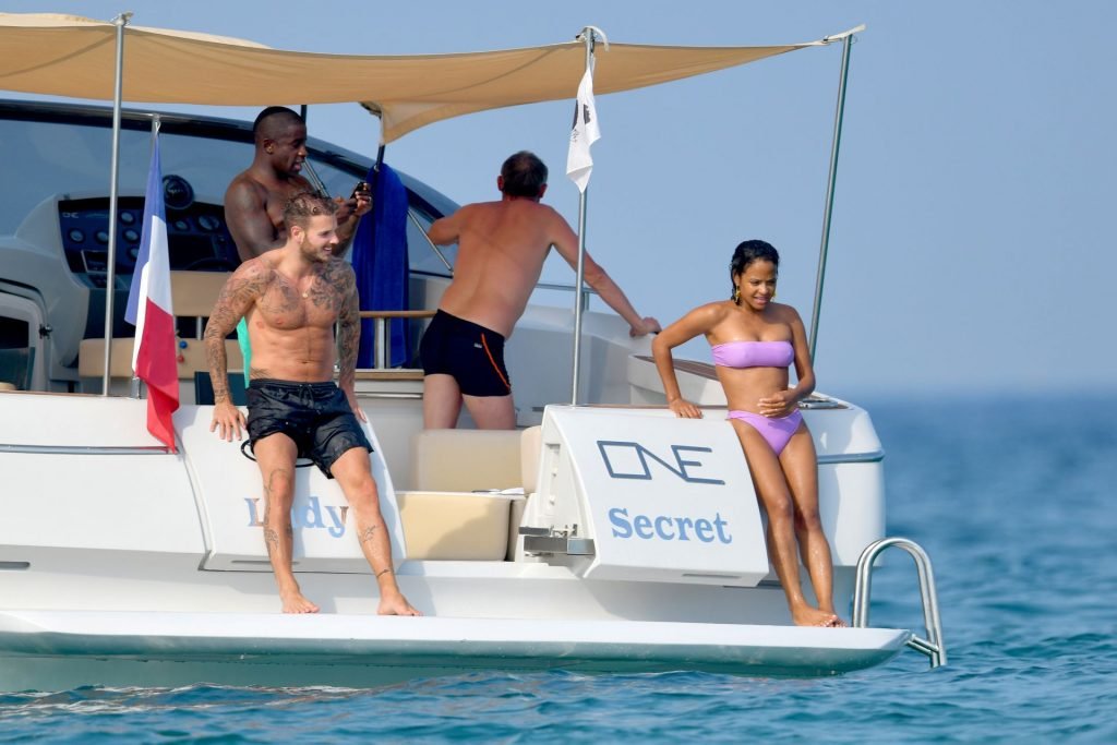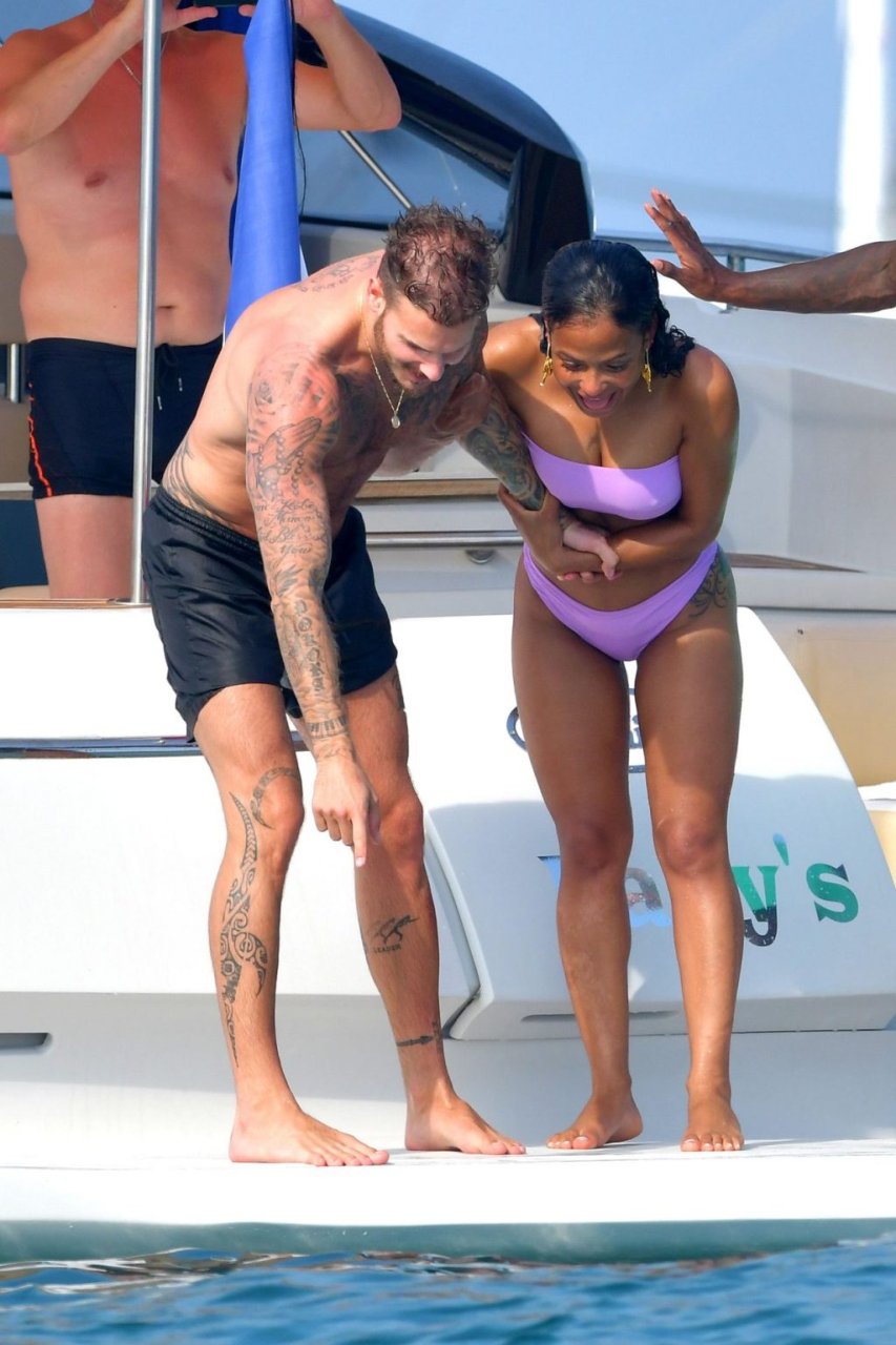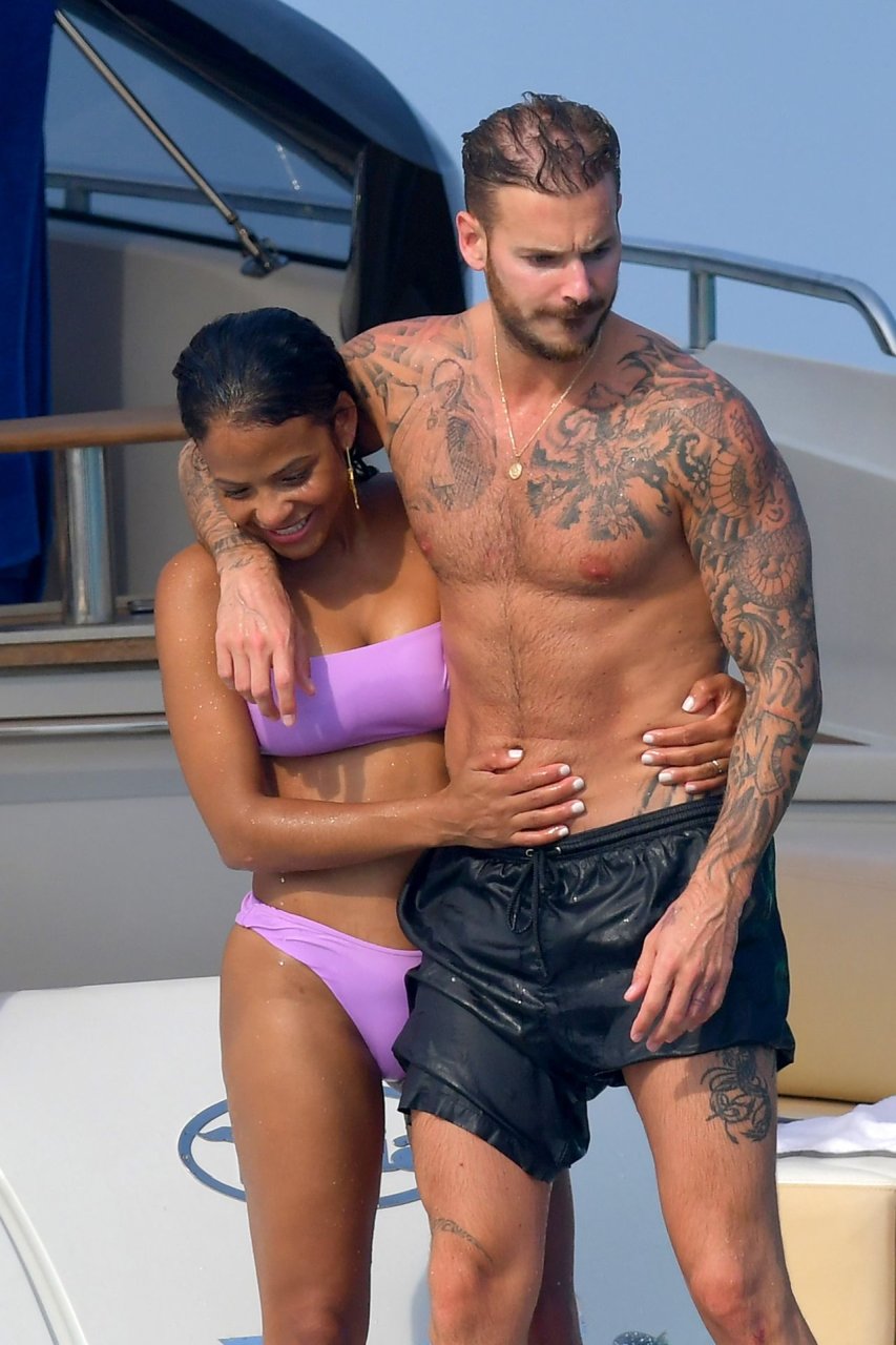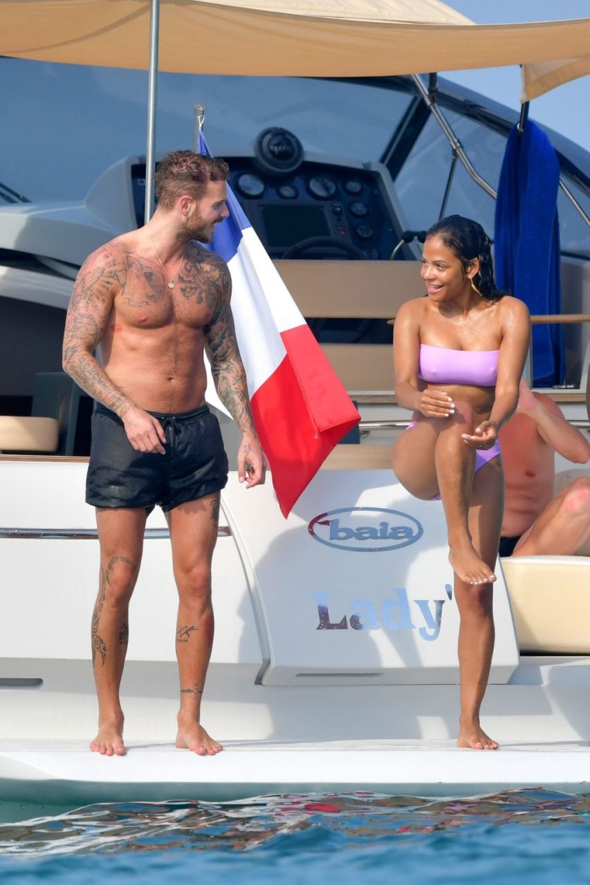 La cantante y actriz Christina Milian y su novio de mucho tiempo Matt Pokora (M. Pokora) disfrutan del sol en la Riviera Francesa con amigos en el barco Lady’s Secret en Francia, 29/06/2019.