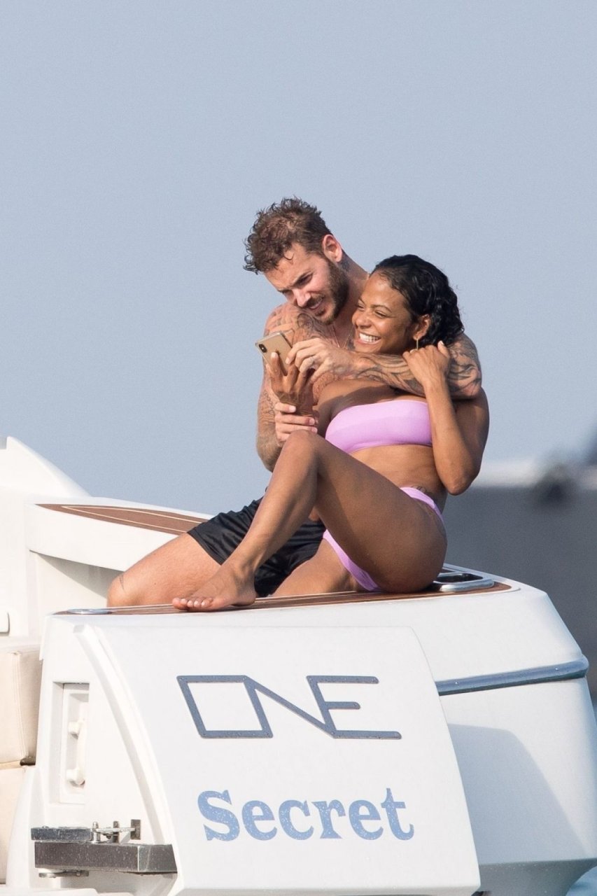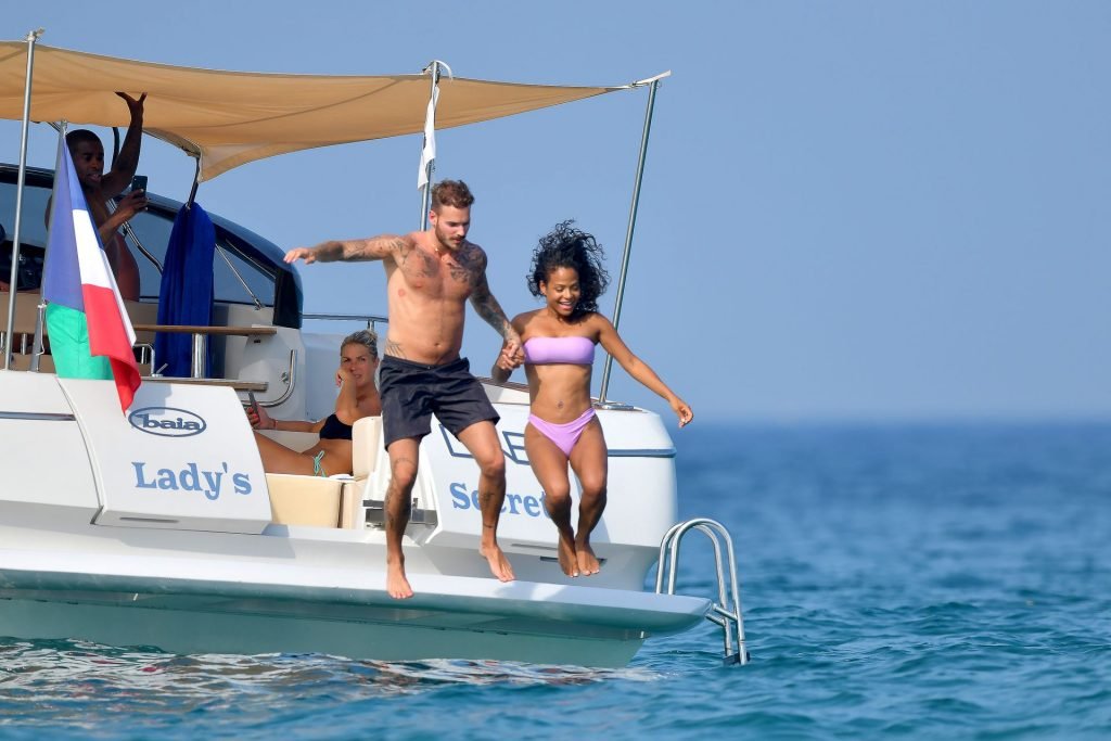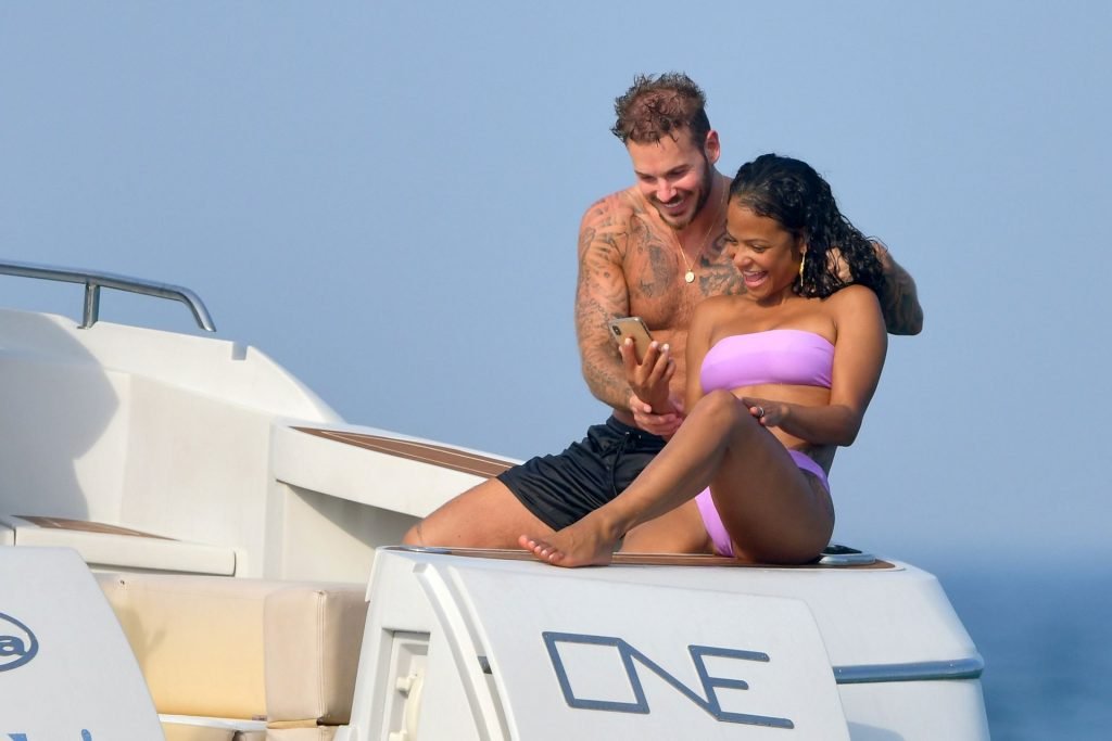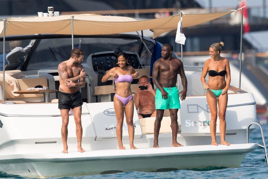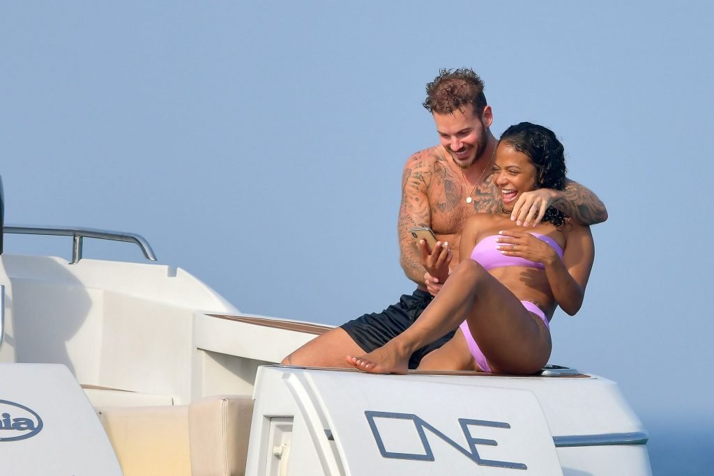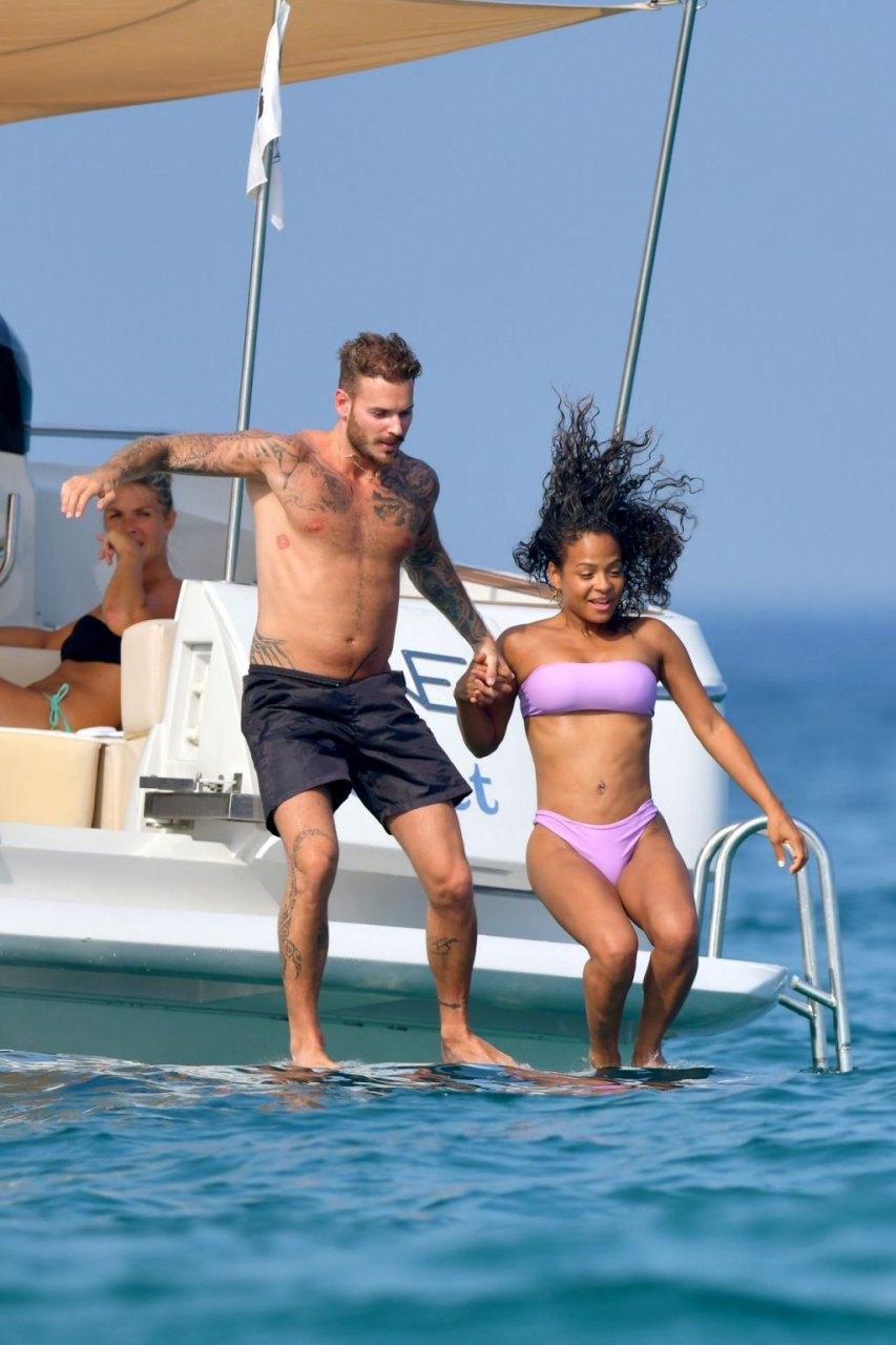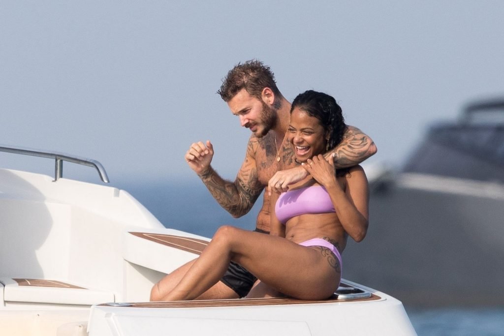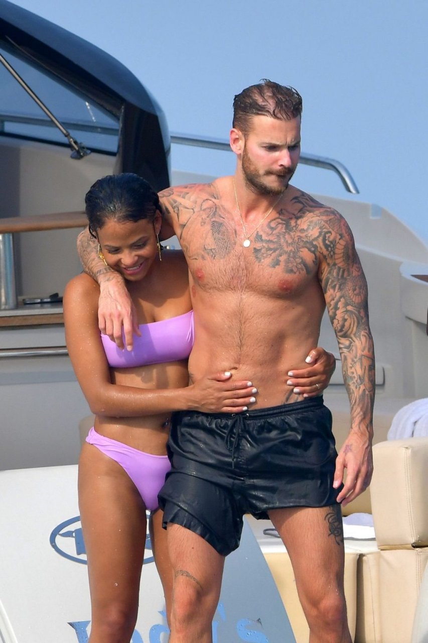 La cantante y actriz Christina Milian y su novio de mucho tiempo Matt Pokora (M. Pokora) disfrutan del sol en la Riviera Francesa con amigos en el barco Lady’s Secret en Francia, 29/06/2019.