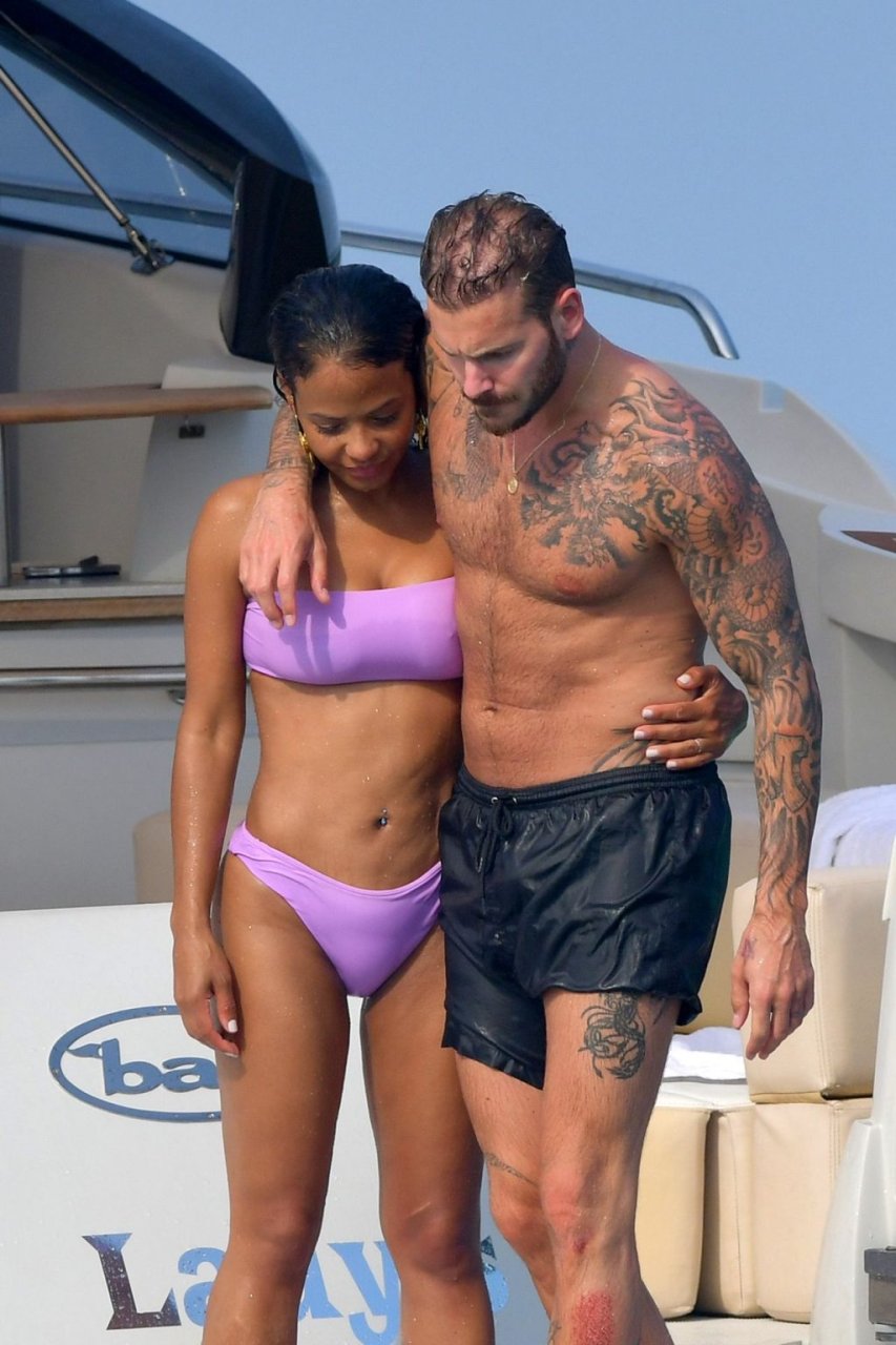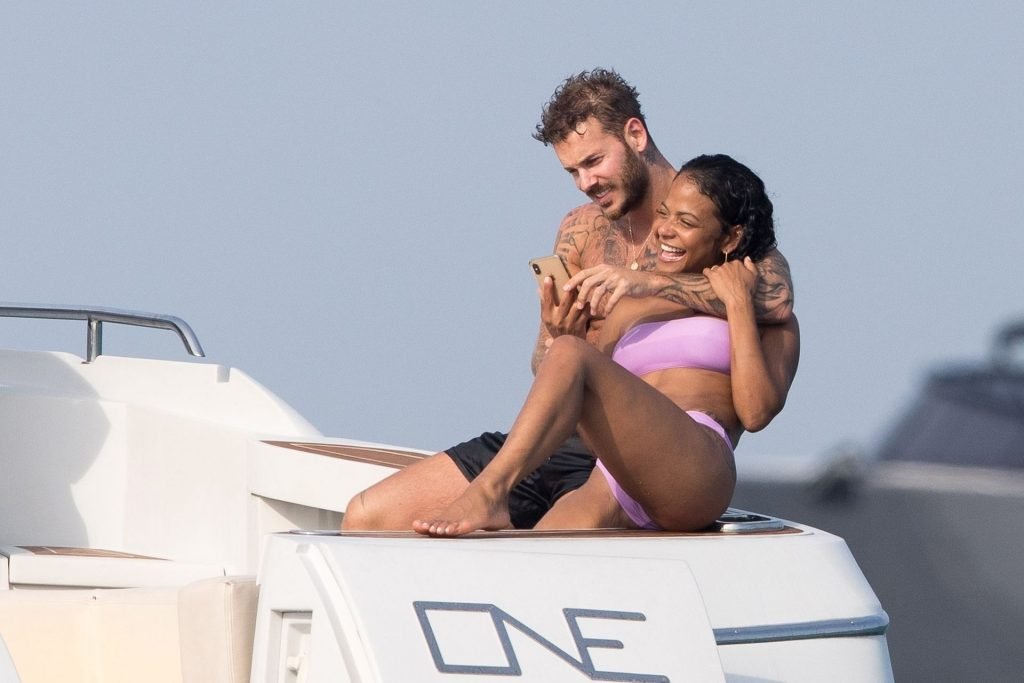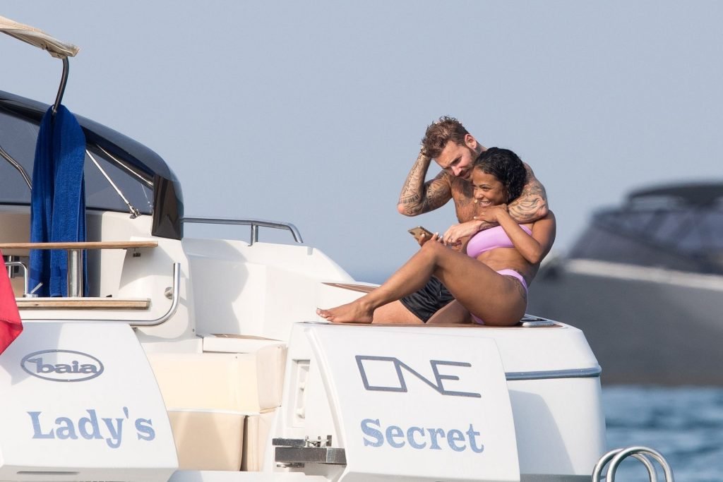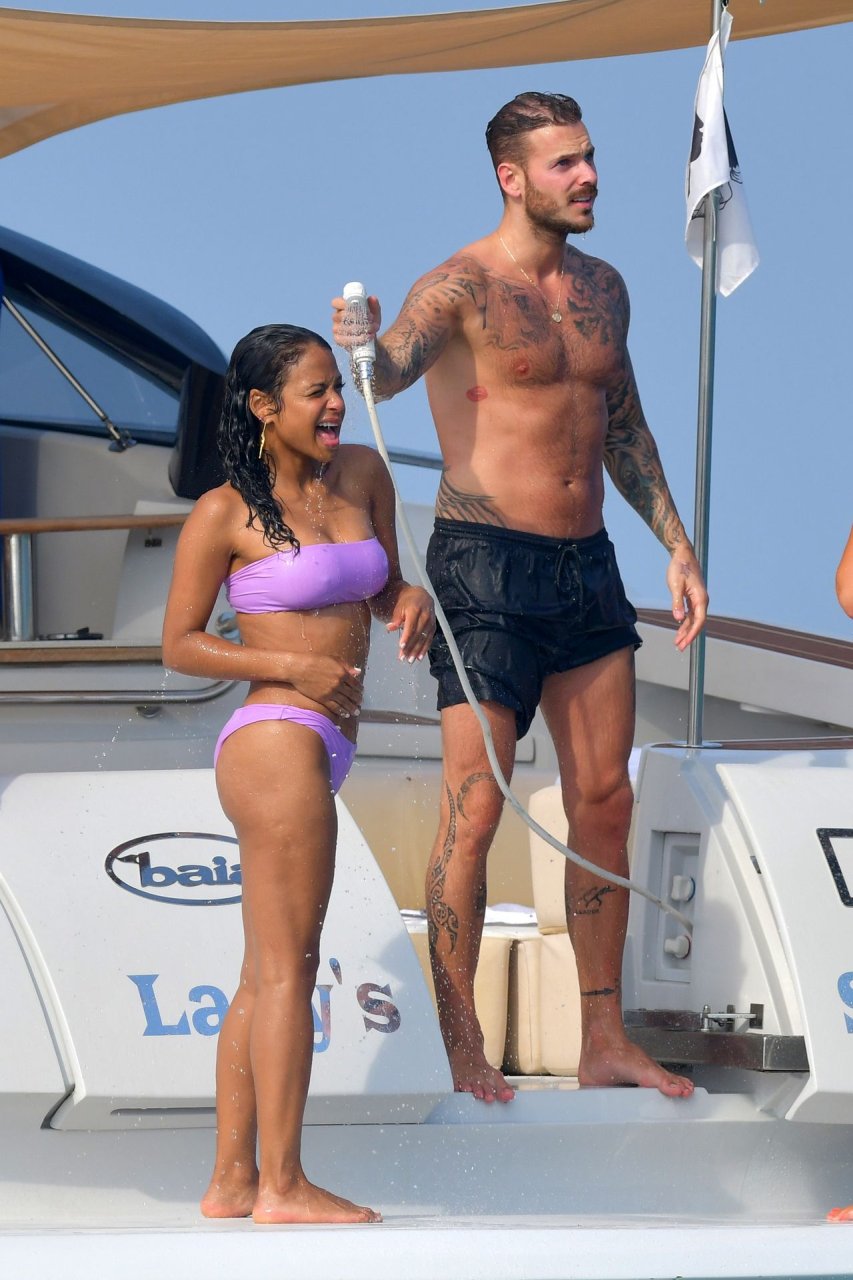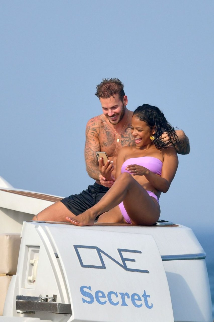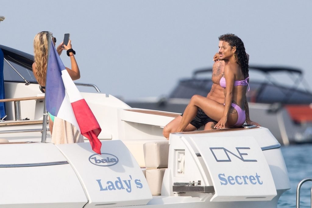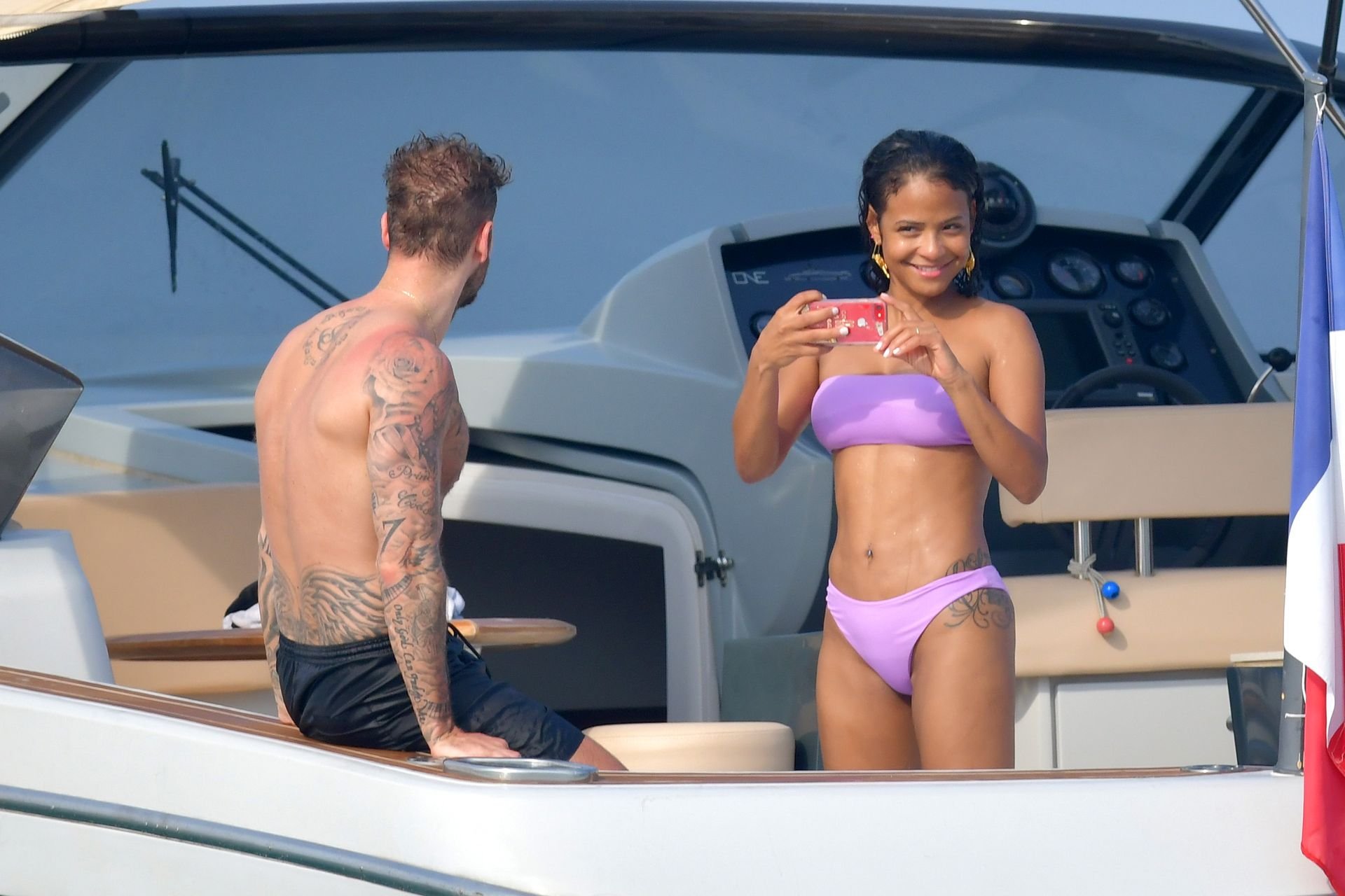 La cantante y actriz Christina Milian y su novio de mucho tiempo Matt Pokora (M. Pokora) disfrutan del sol en la Riviera Francesa con amigos en el barco Lady’s Secret en Francia, 29/06/2019.