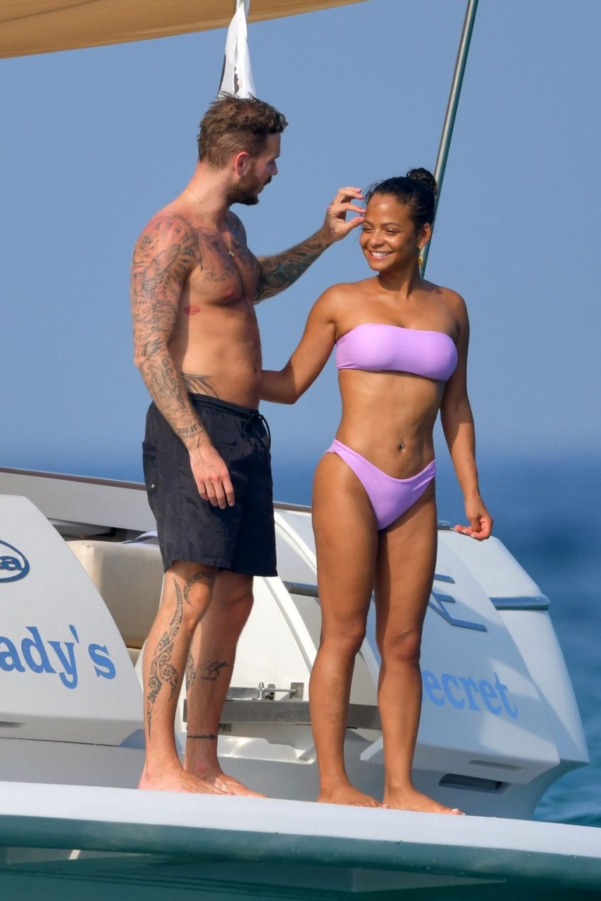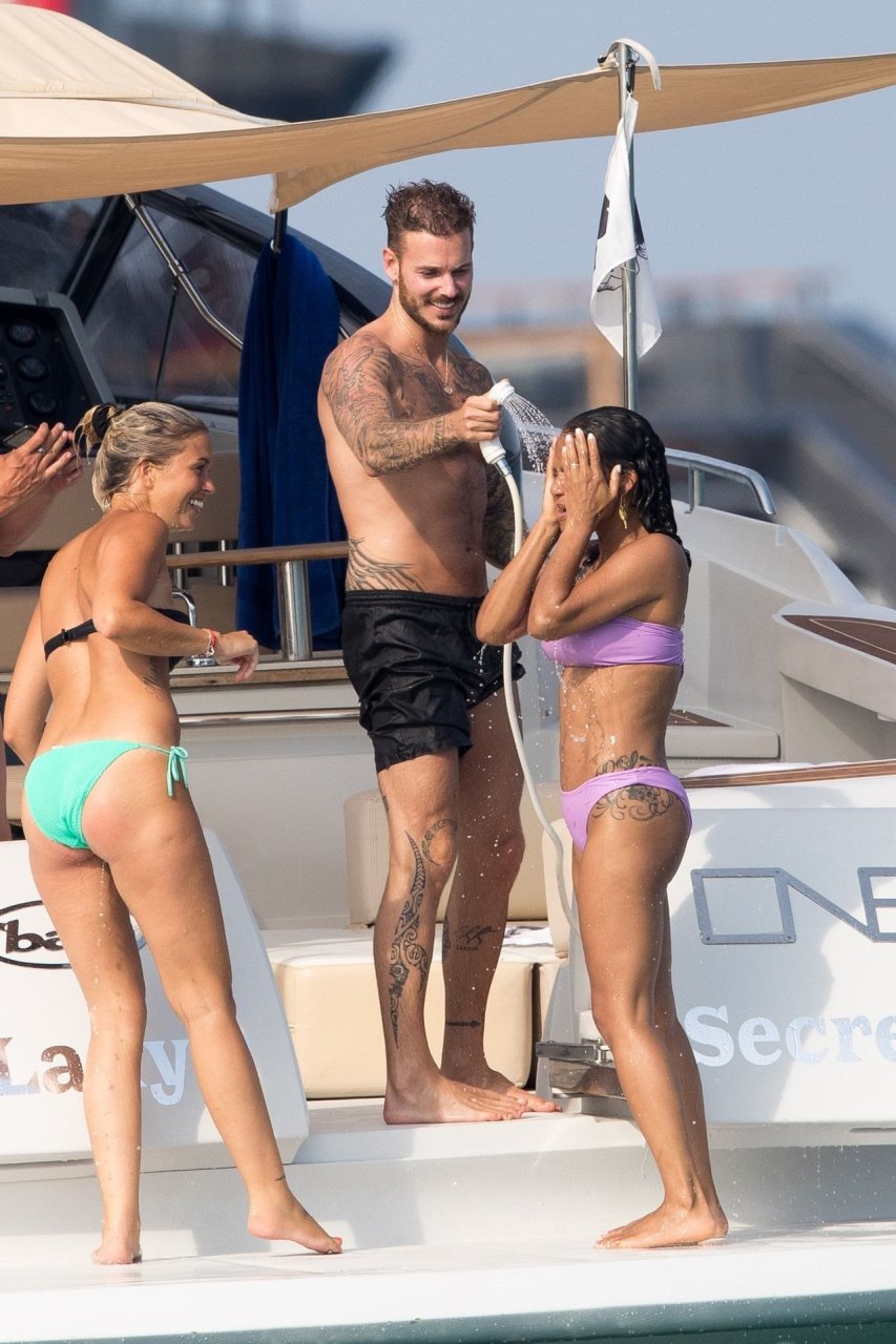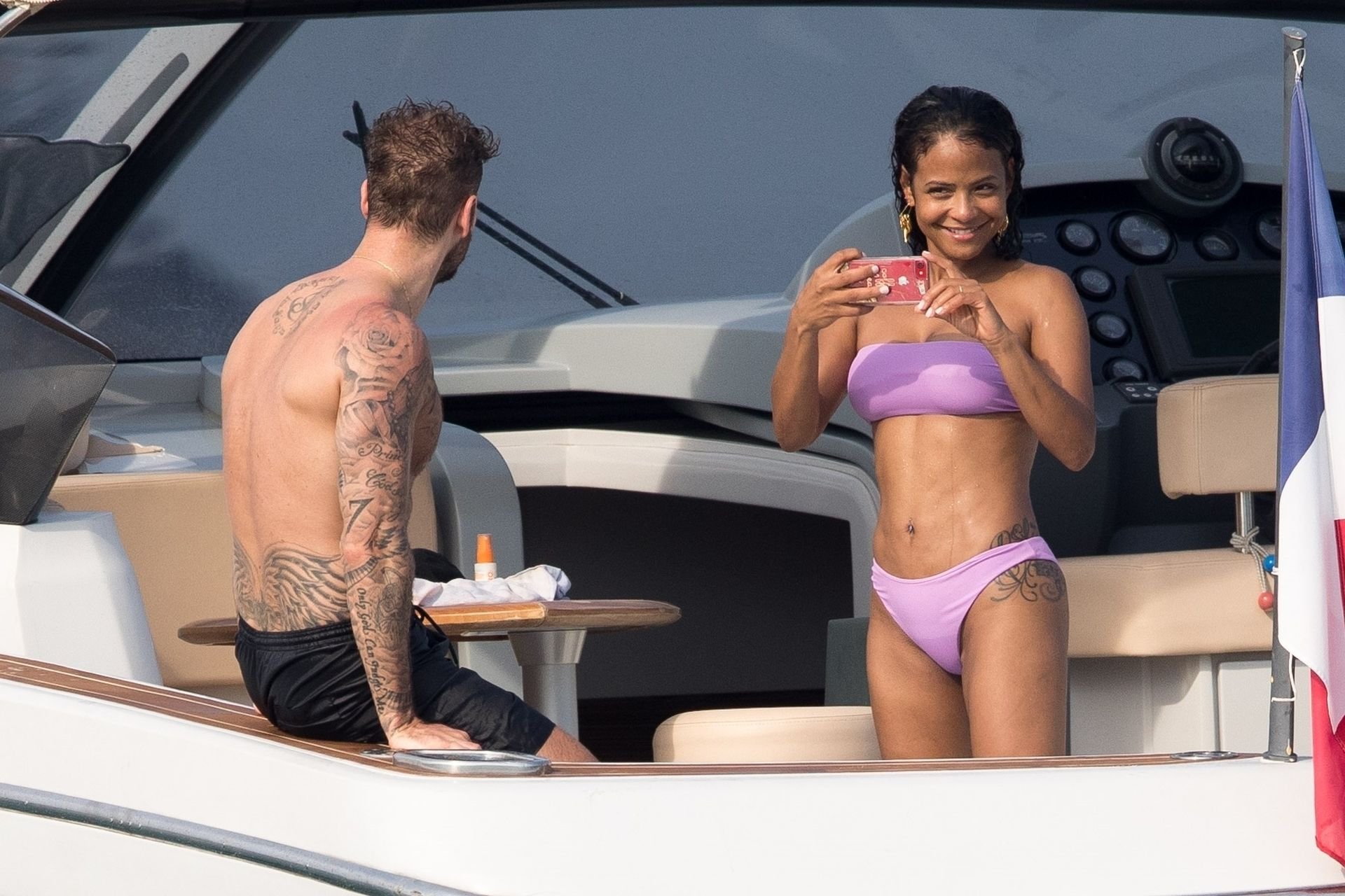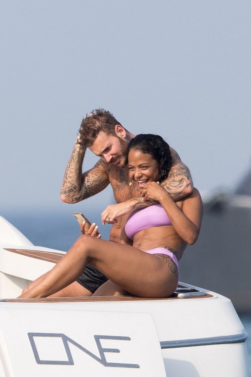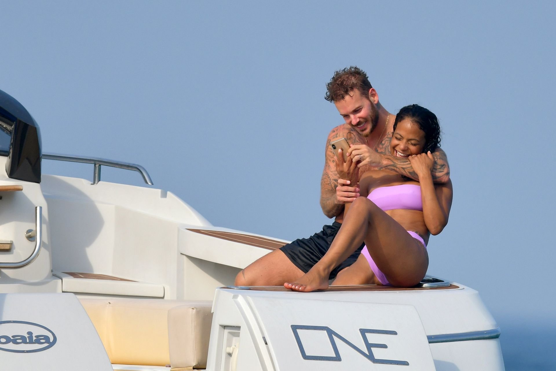 La cantante y actriz Christina Milian y su novio de mucho tiempo Matt Pokora (M. Pokora) disfrutan del sol en la Riviera Francesa con amigos en el barco Lady’s Secret en Francia, 29/06/2019.
