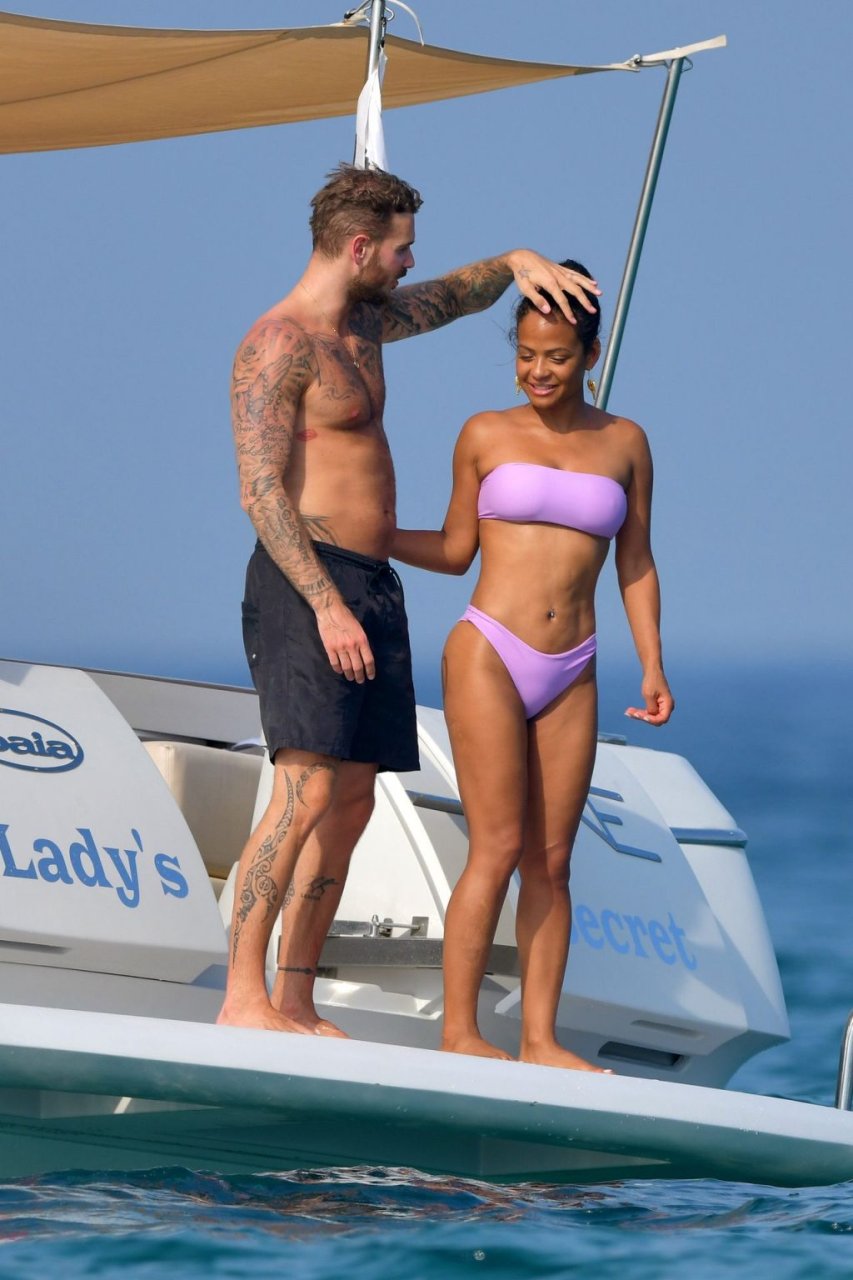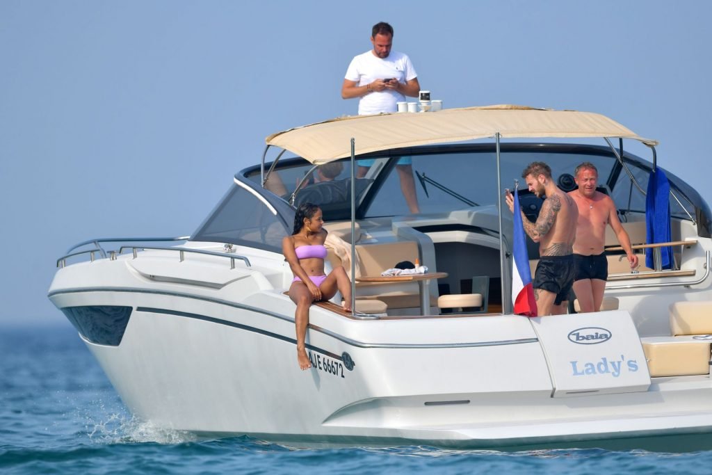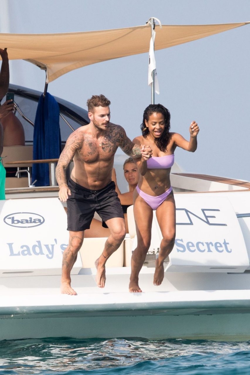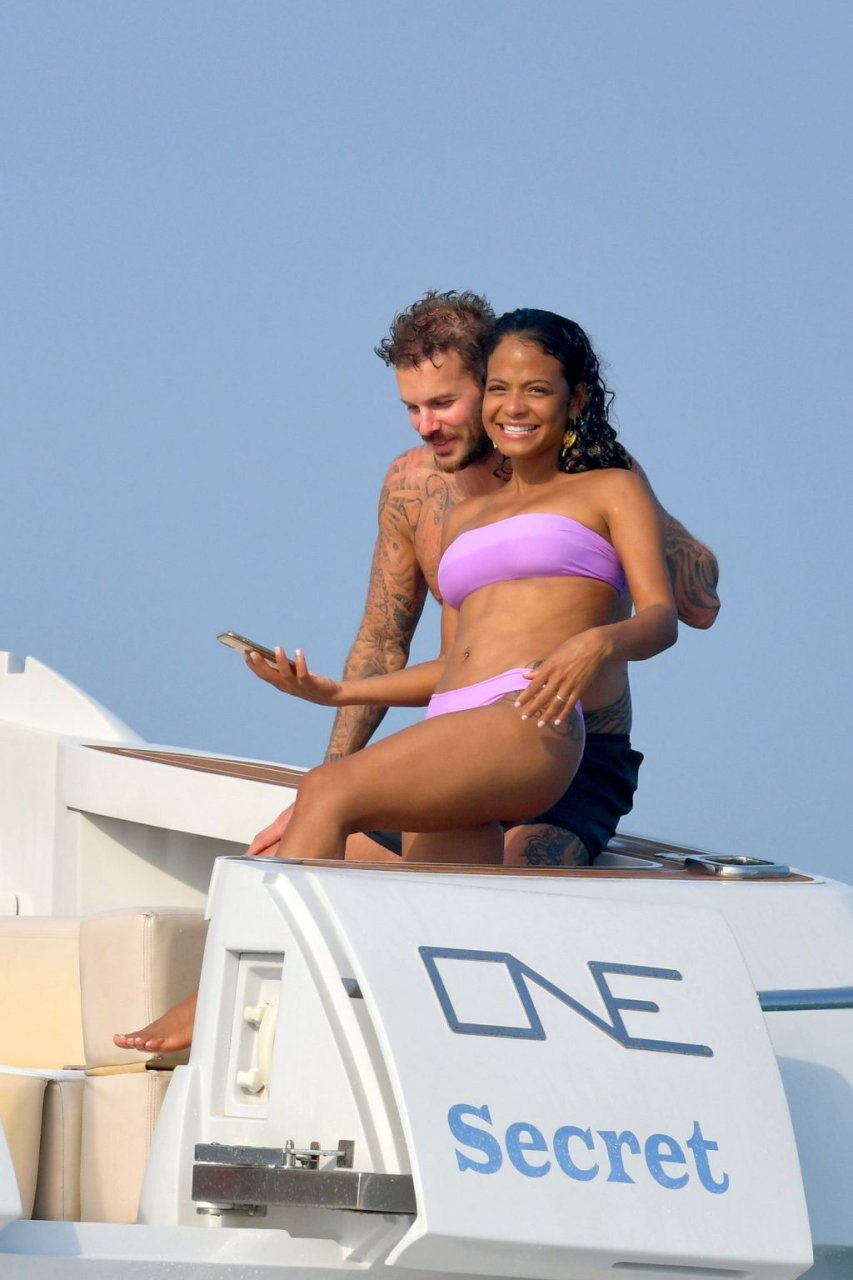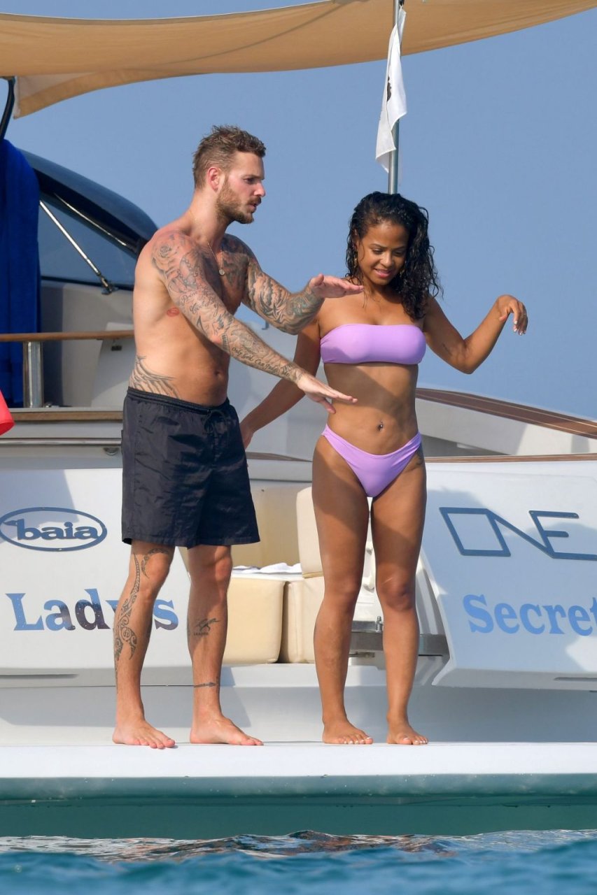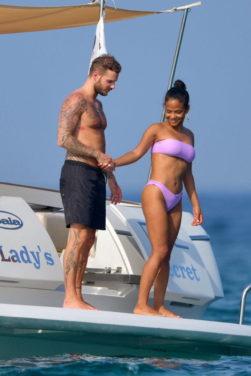 La cantante y actriz Christina Milian y su novio de mucho tiempo Matt Pokora (M. Pokora) disfrutan del sol en la Riviera Francesa con amigos en el barco Lady’s Secret en Francia, 29/06/2019.