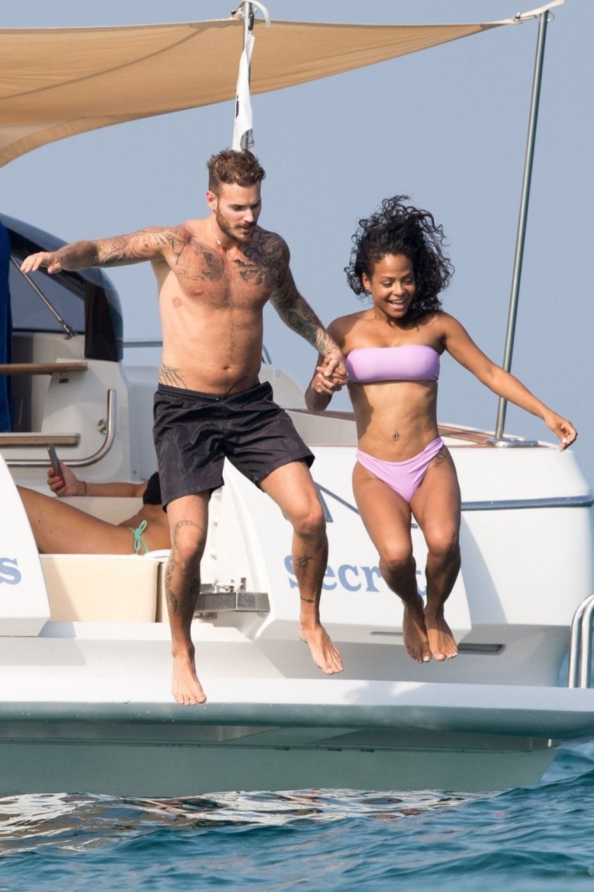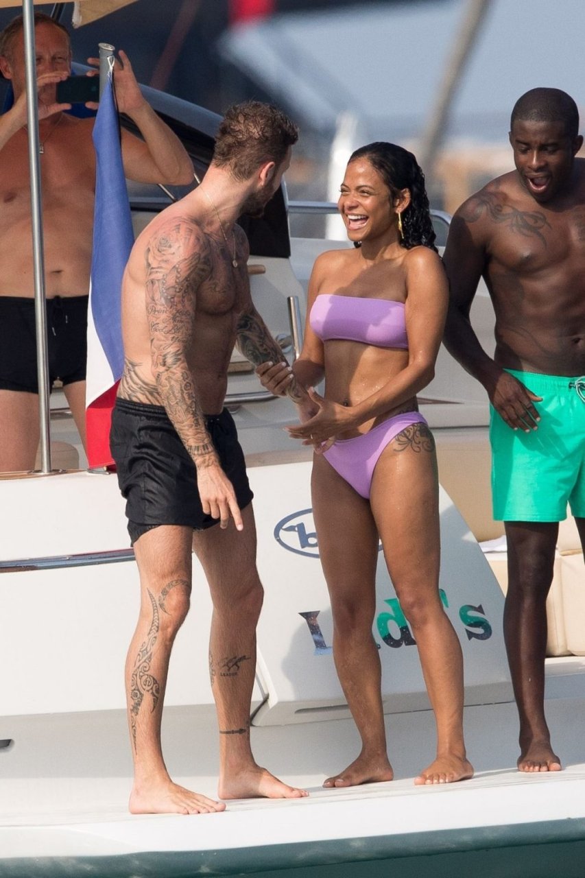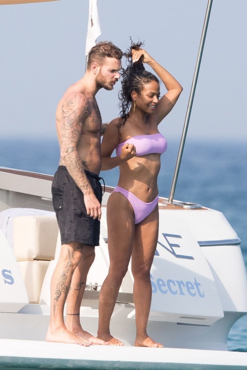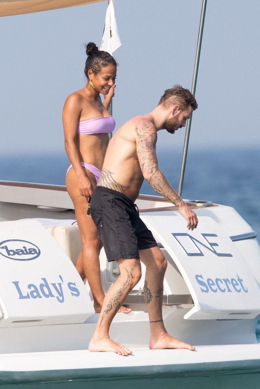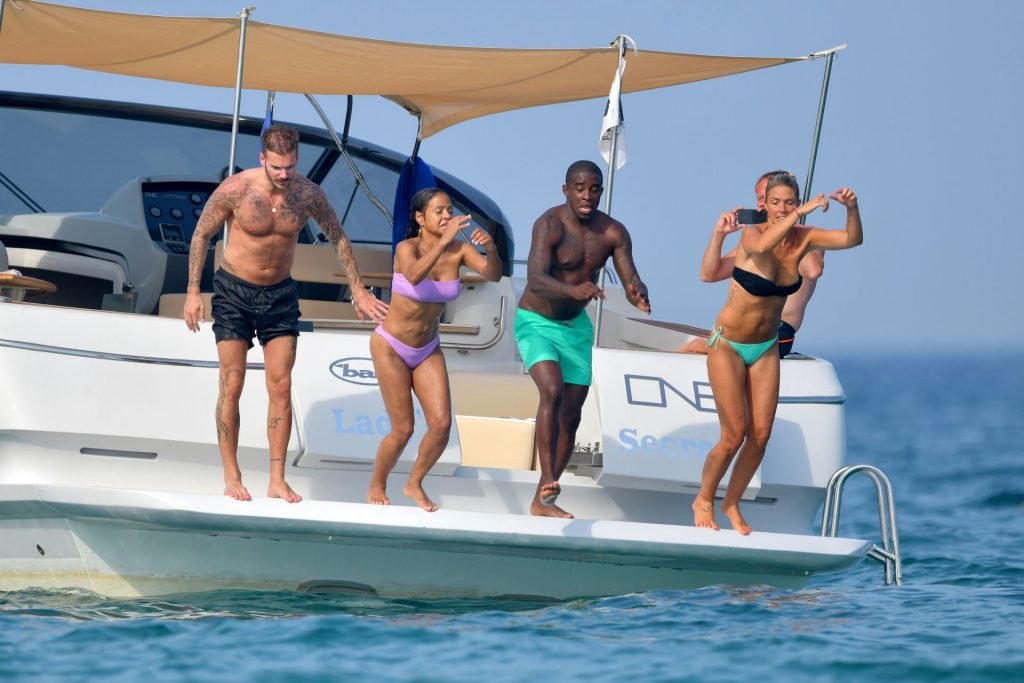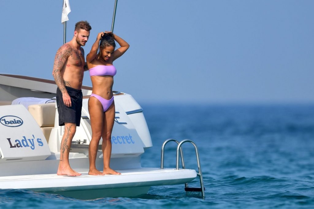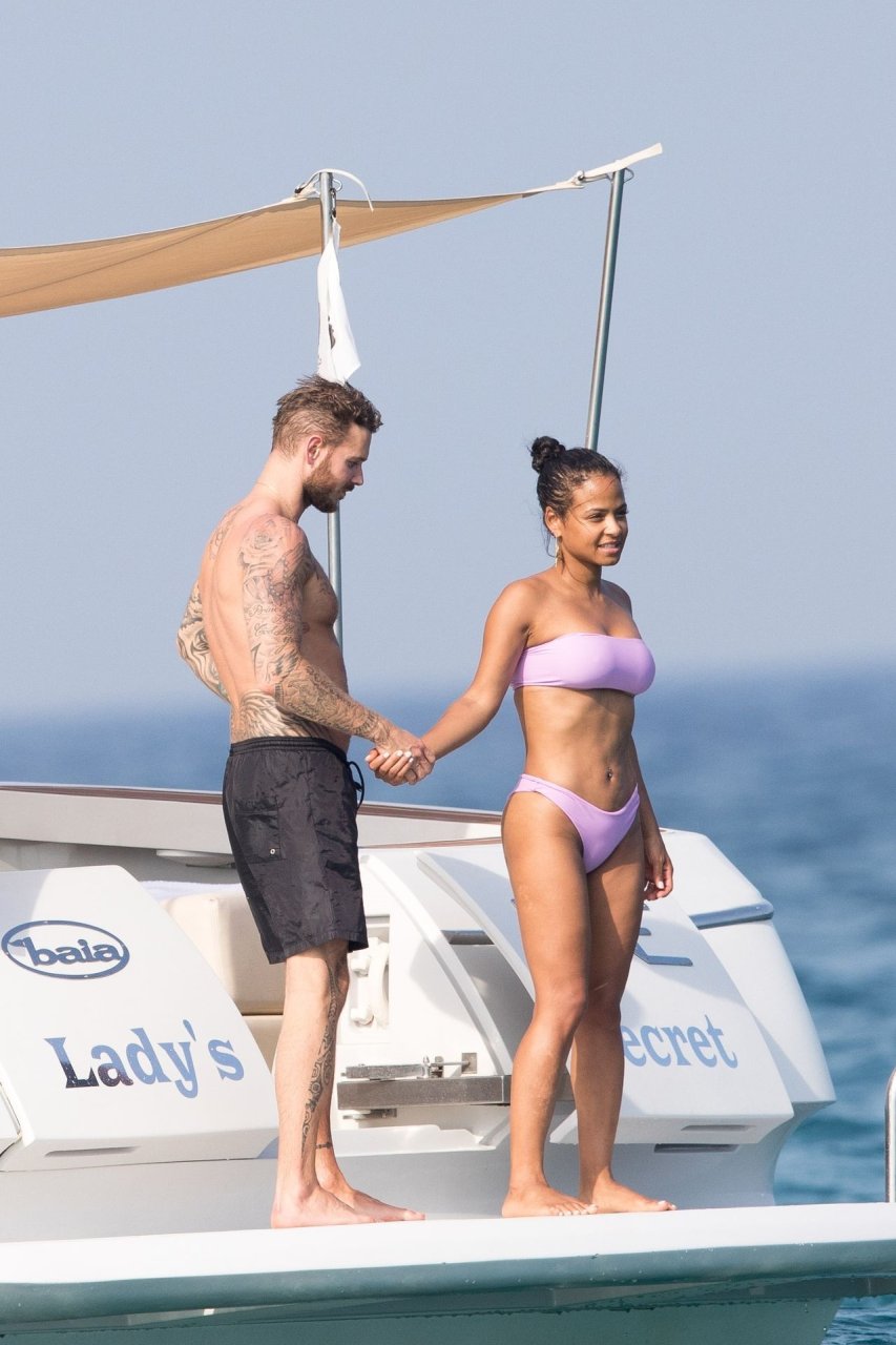 La cantante y actriz Christina Milian y su novio de mucho tiempo Matt Pokora (M. Pokora) disfrutan del sol en la Riviera Francesa con amigos en el barco Lady’s Secret en Francia, 29/06/2019.
