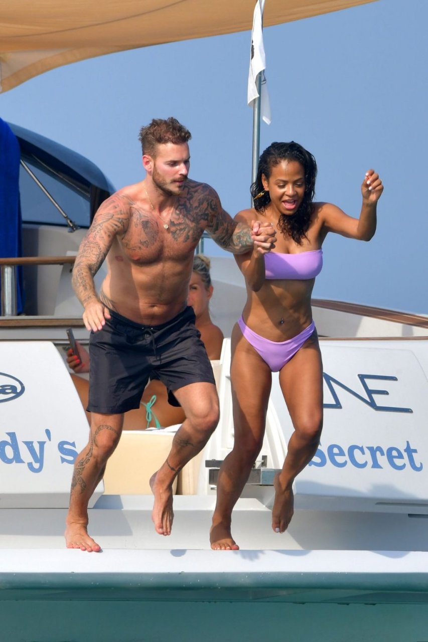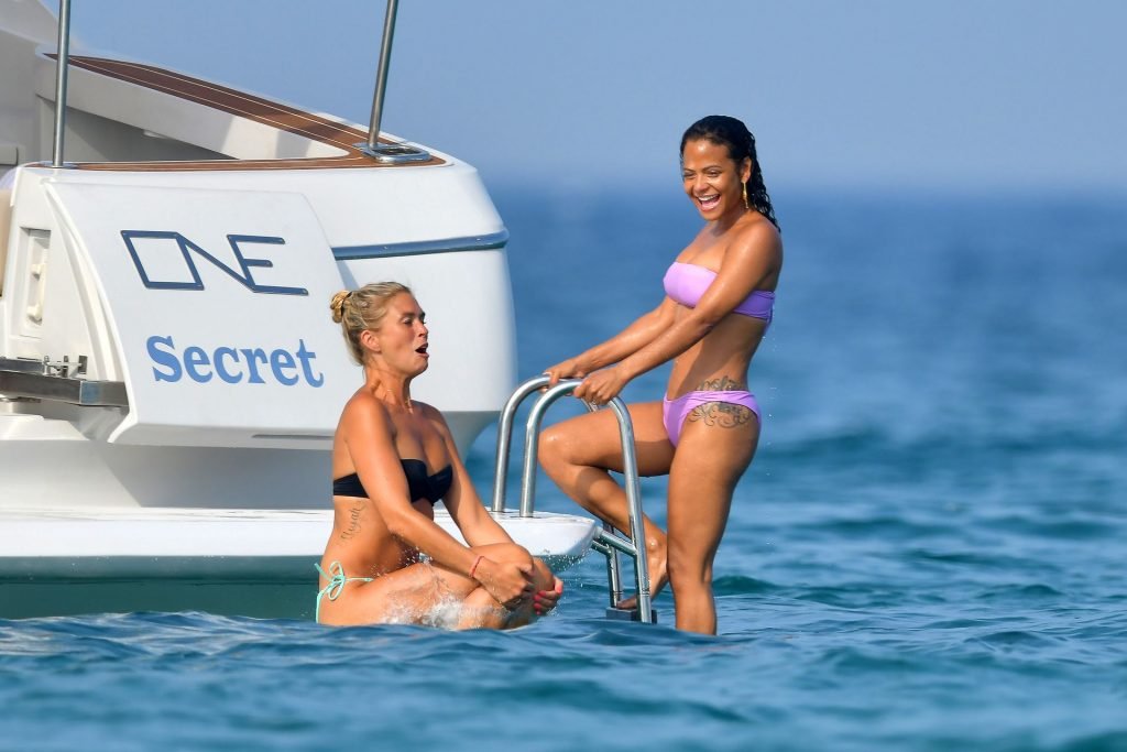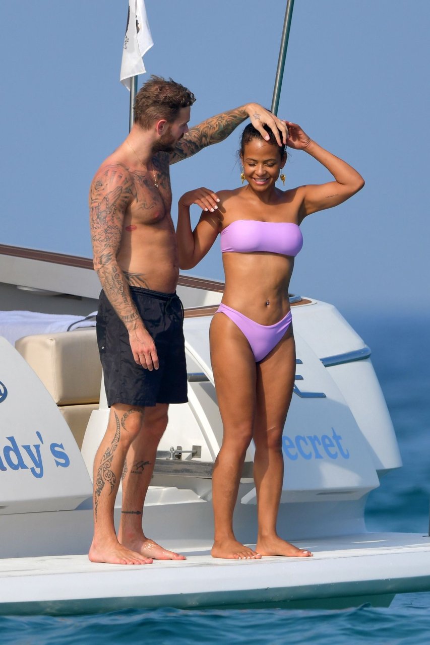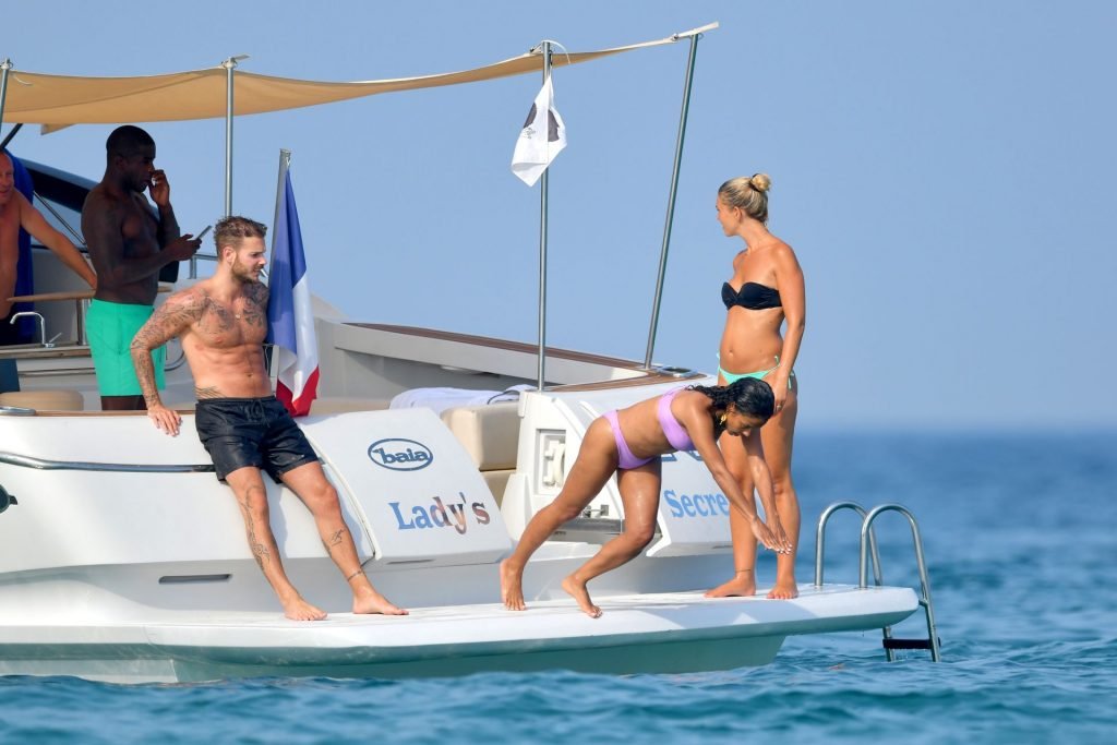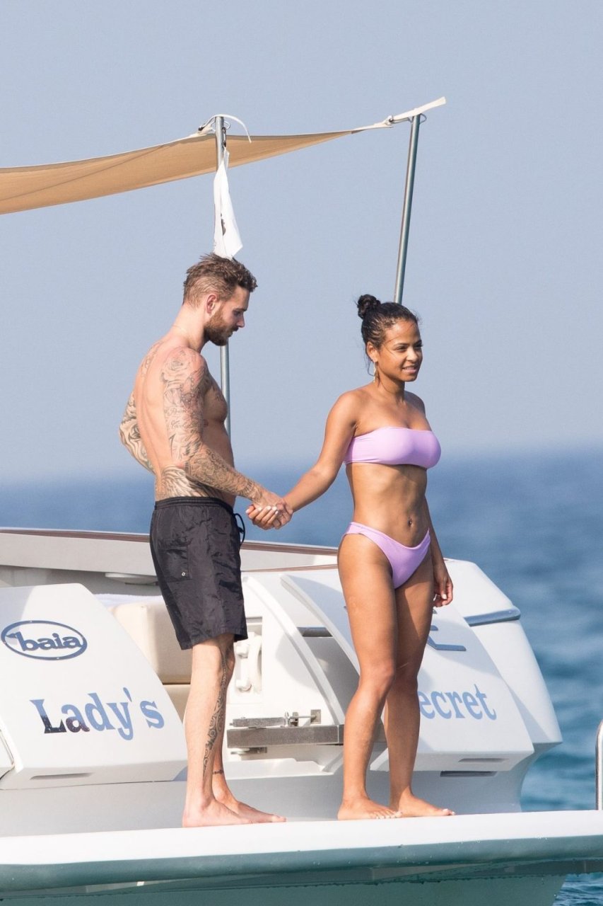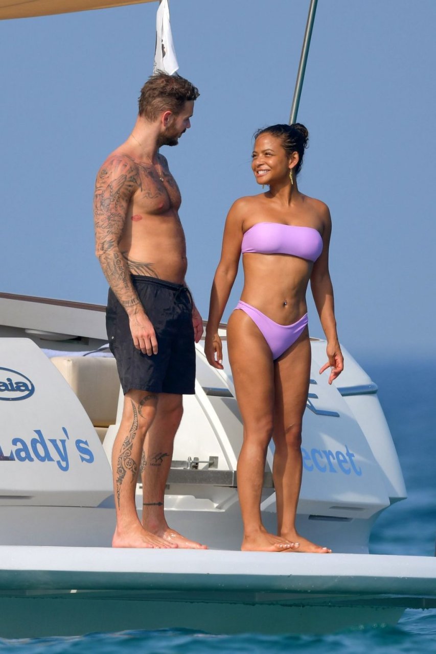 La cantante y actriz Christina Milian y su novio de mucho tiempo Matt Pokora (M. Pokora) disfrutan del sol en la Riviera Francesa con amigos en el barco Lady’s Secret en Francia, 29/06/2019.