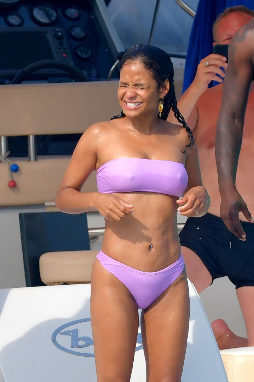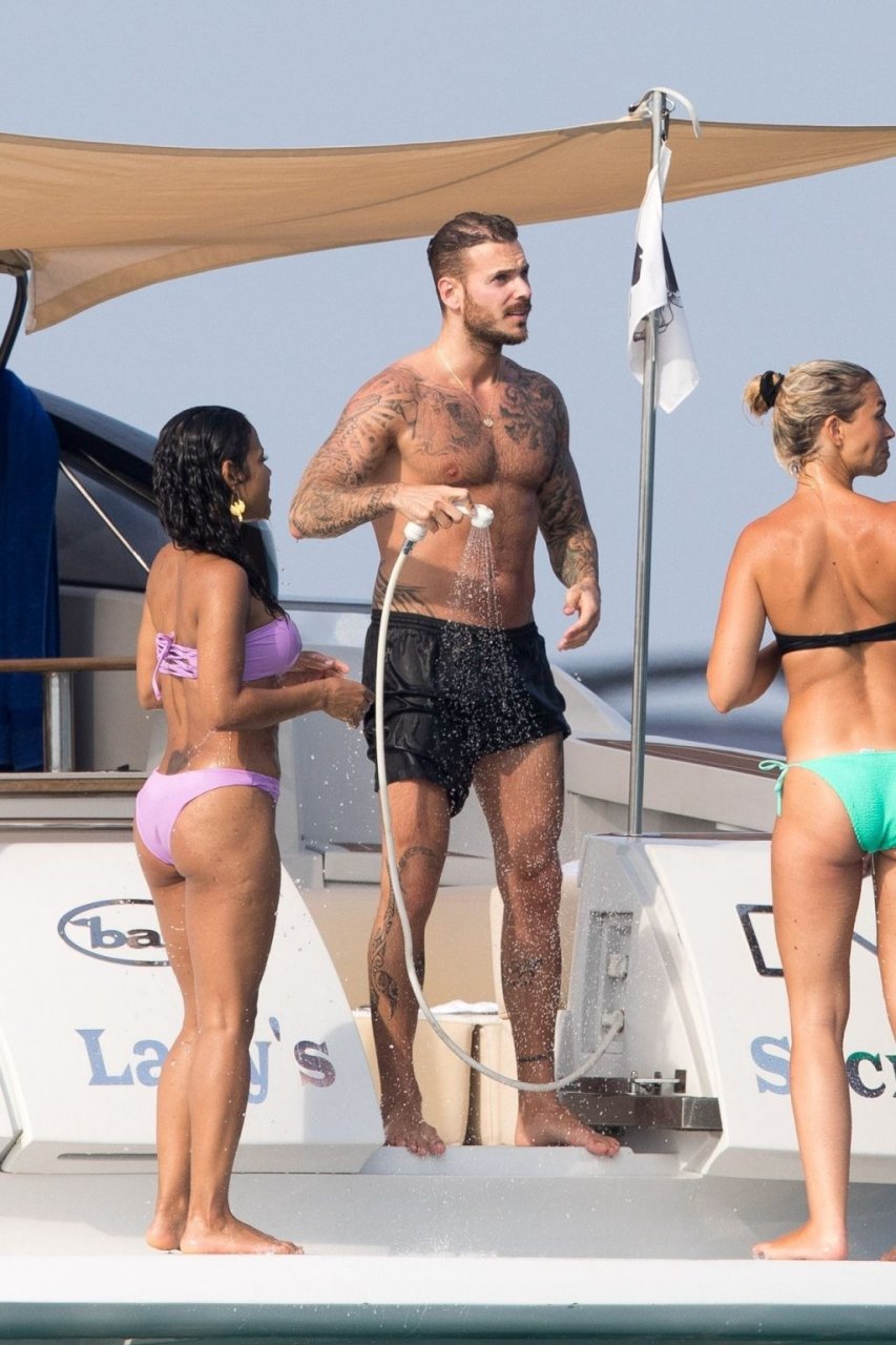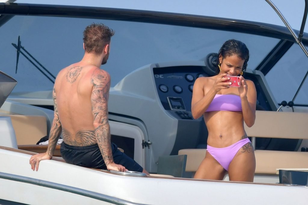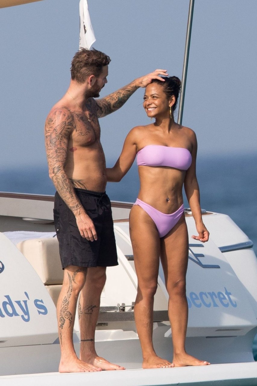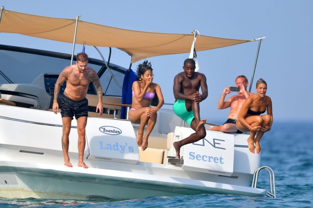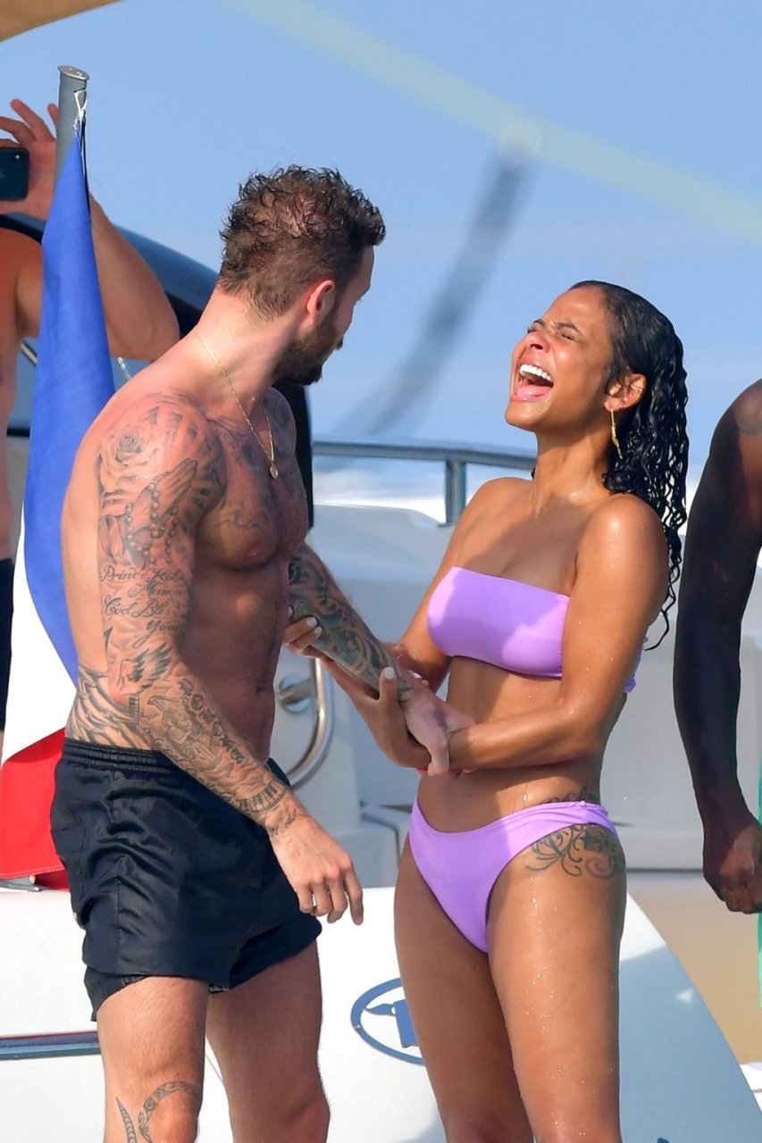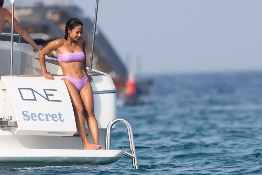 La cantante y actriz Christina Milian y su novio de mucho tiempo Matt Pokora (M. Pokora) disfrutan del sol en la Riviera Francesa con amigos en el barco Lady’s Secret en Francia, 29/06/2019.