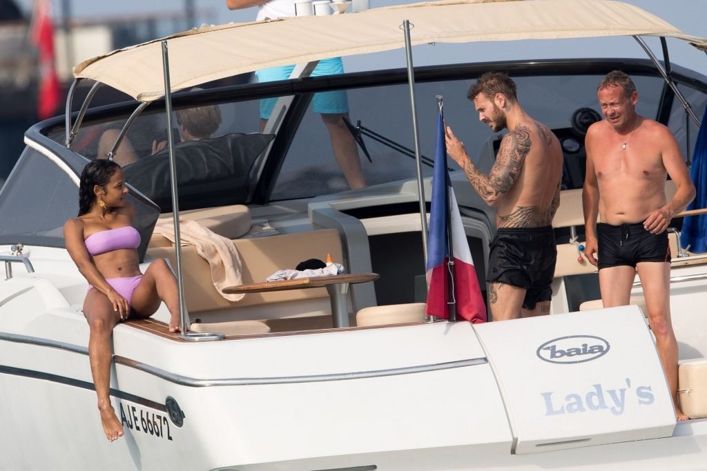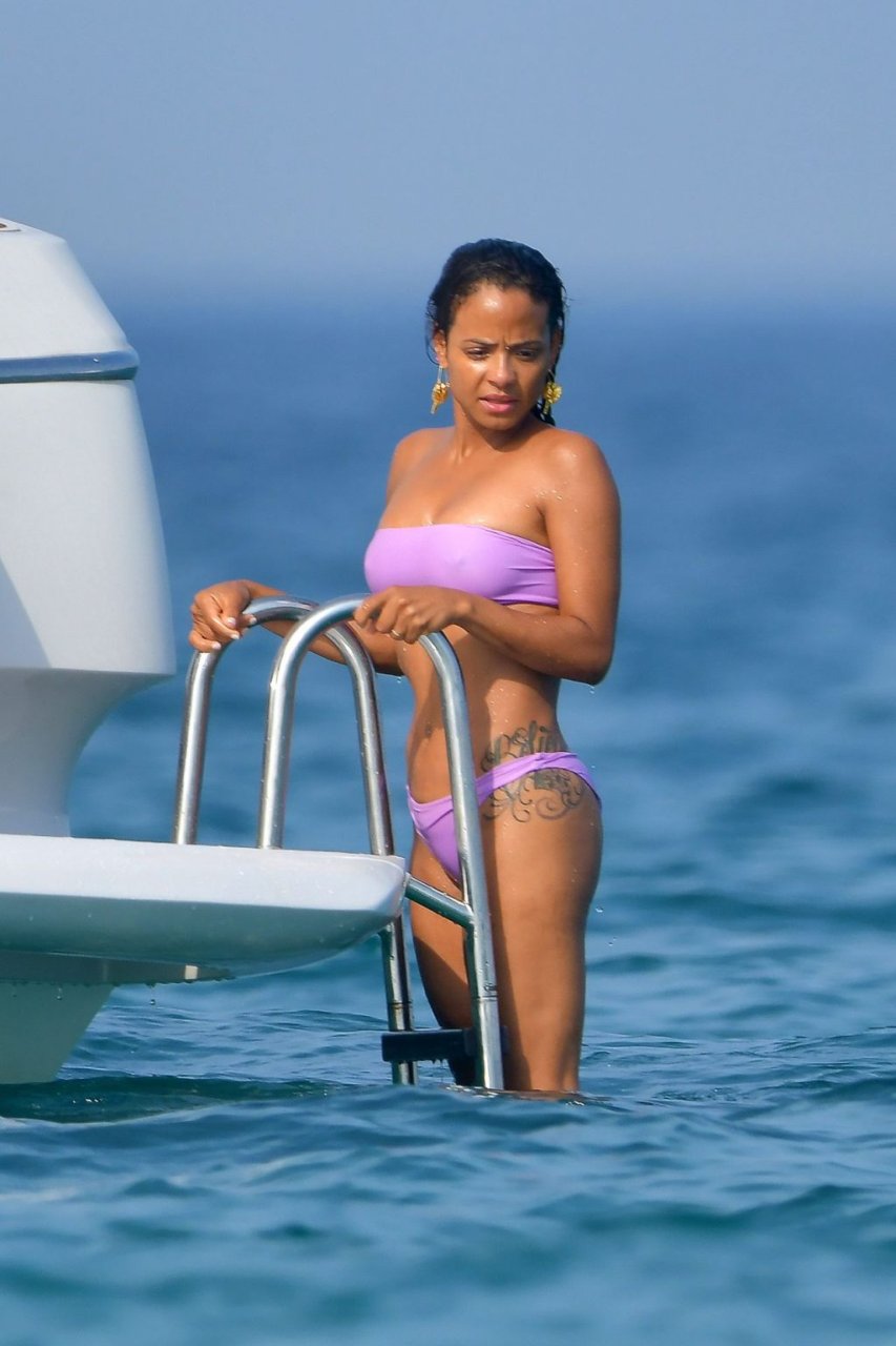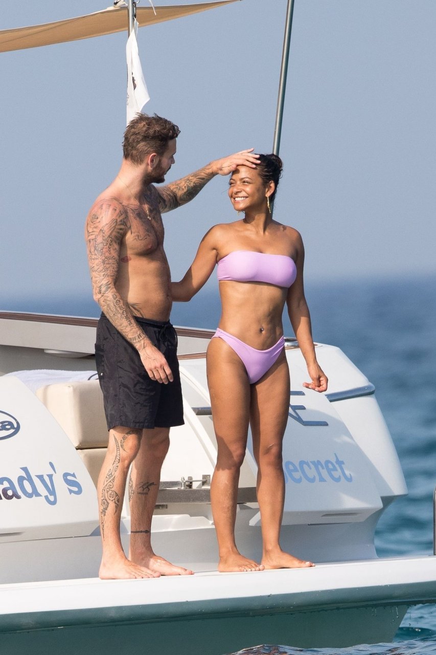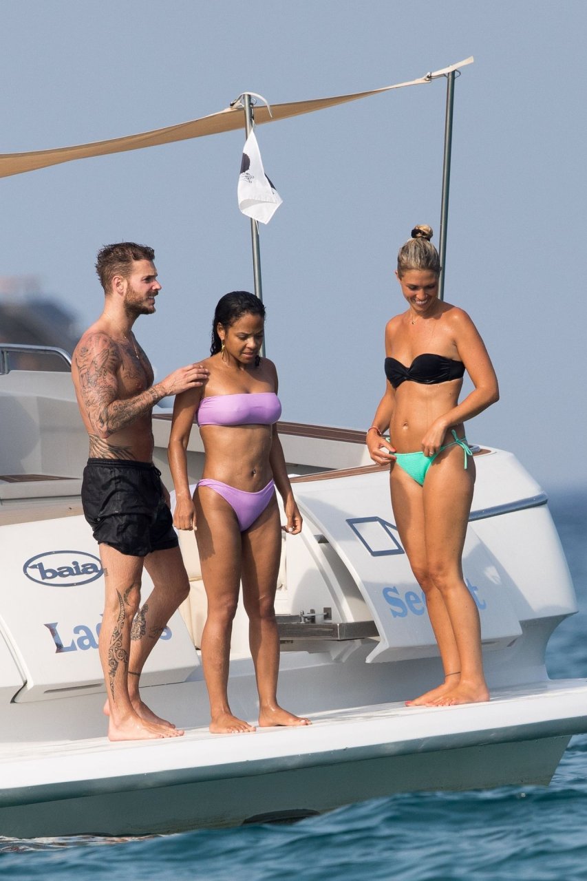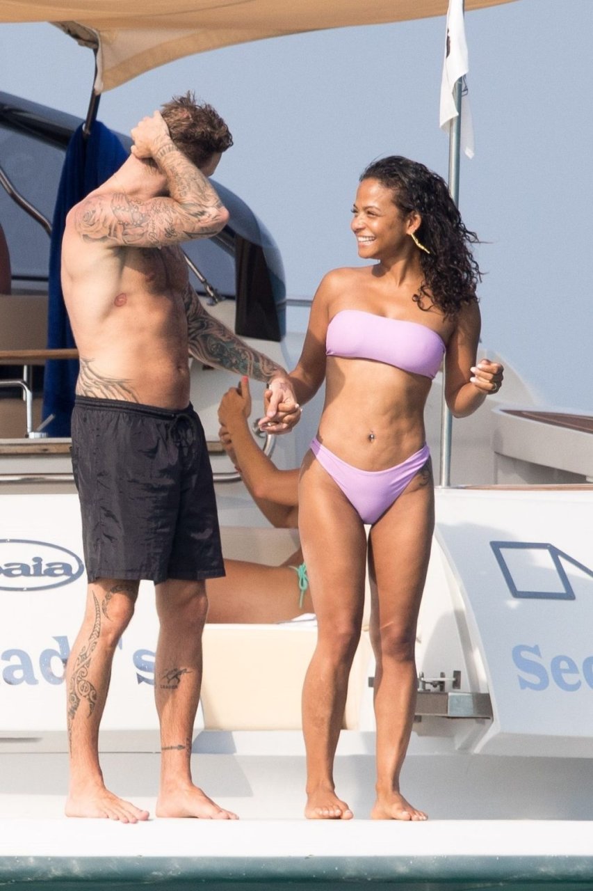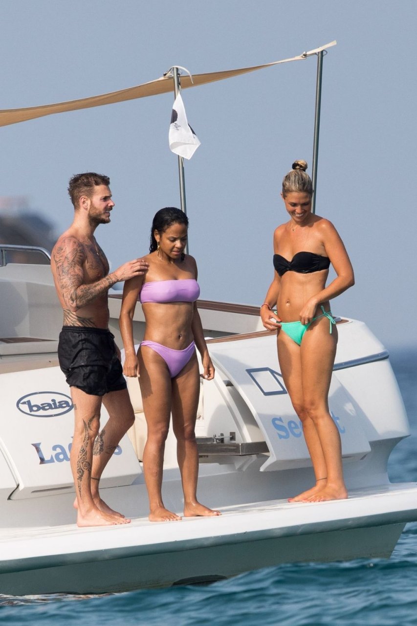 La cantante y actriz Christina Milian y su novio de mucho tiempo Matt Pokora (M. Pokora) disfrutan del sol en la Riviera Francesa con amigos en el barco Lady’s Secret en Francia, 29/06/2019.
