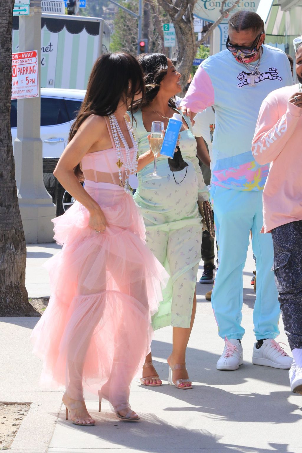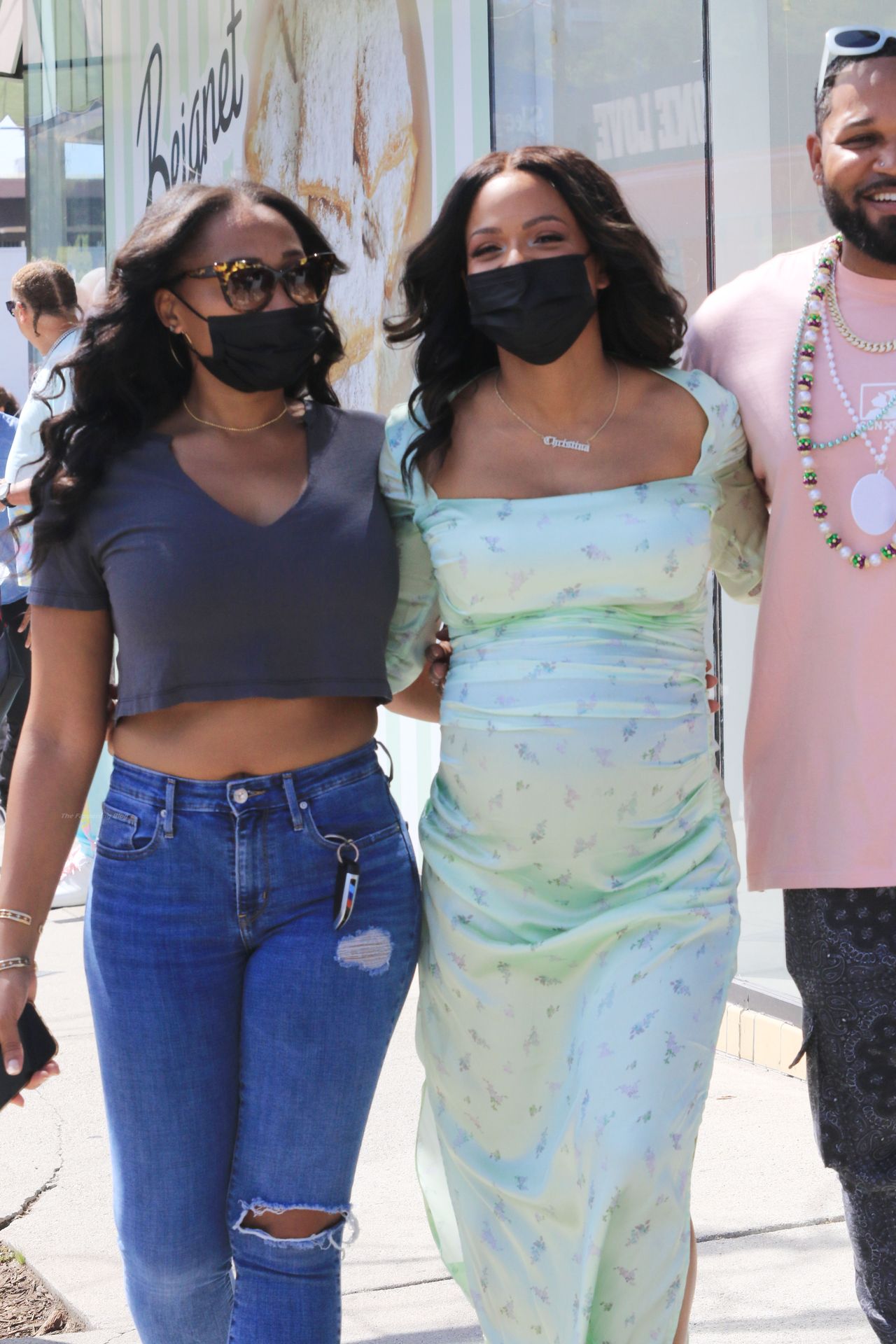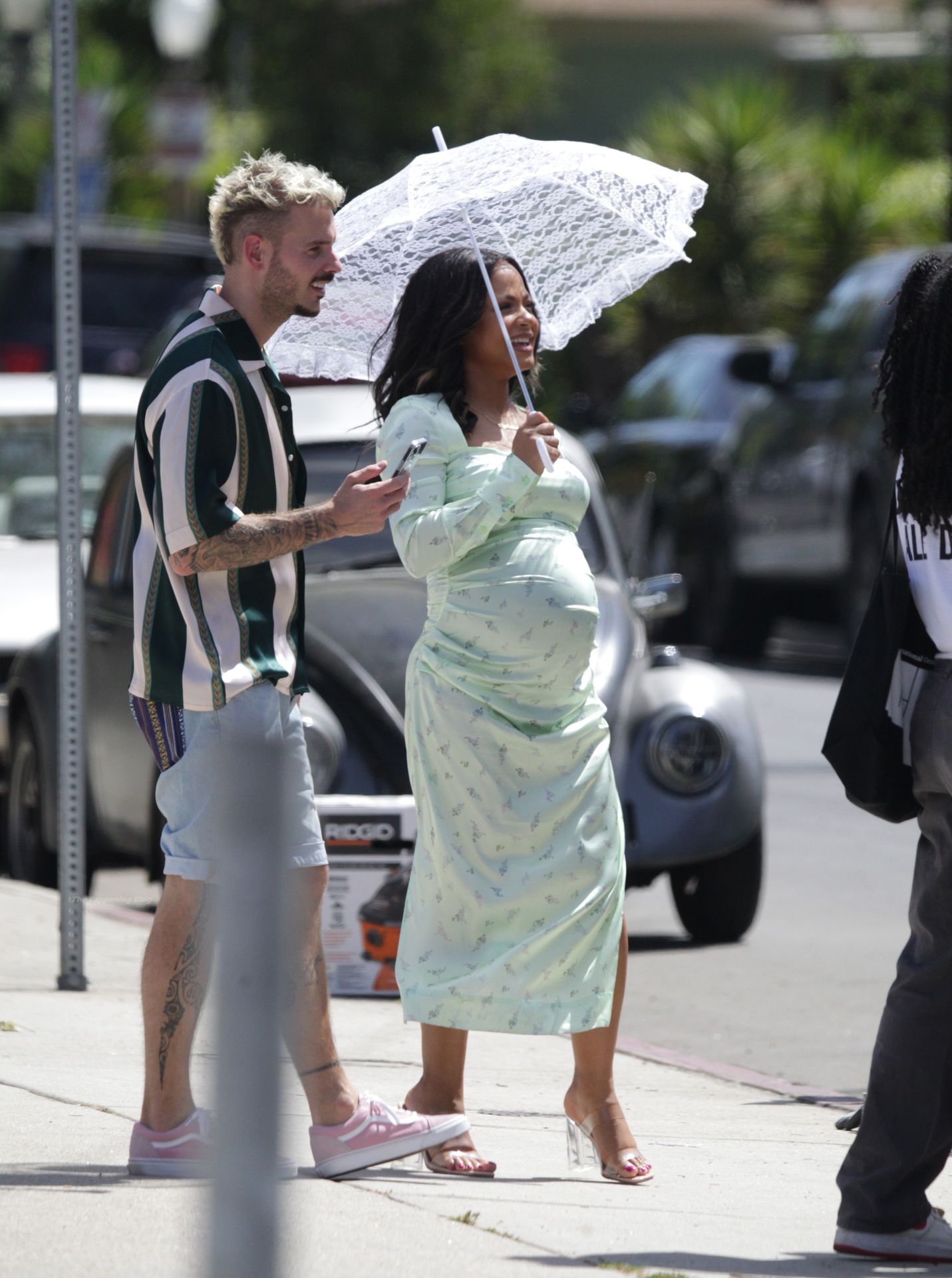 La actriz estadounidense de 39 años parecía estar de muy buen humor mientras celebraba la apertura de su nuevo negocio de comida, Beignet Box. Milian estuvo acompañada por su pareja, M. Pokora, quien en un momento le acarició la barriga.