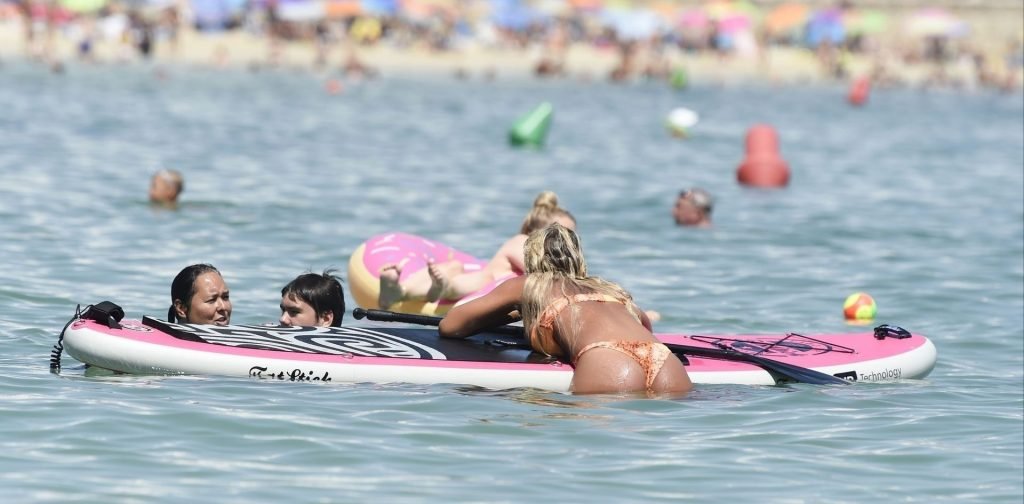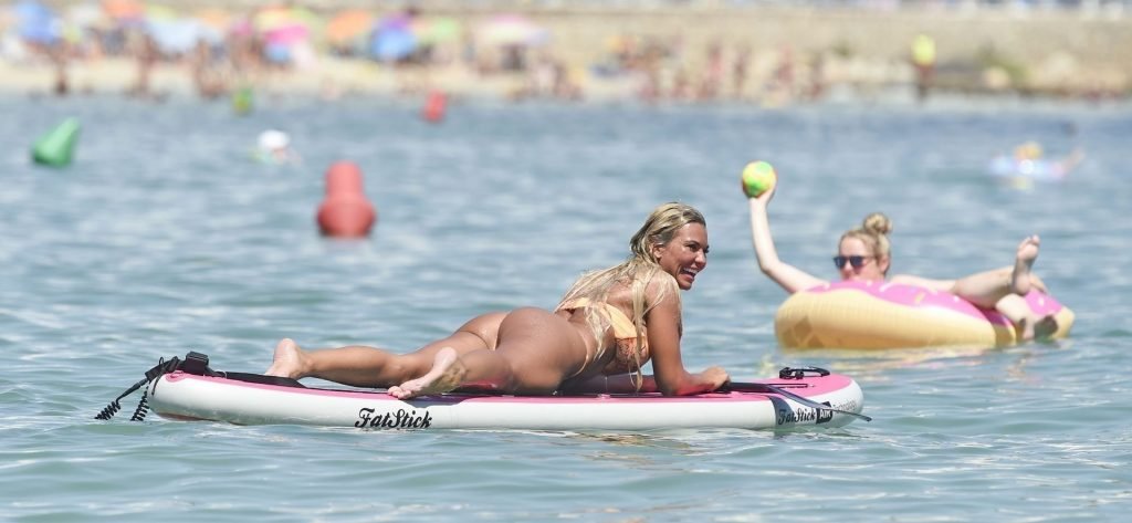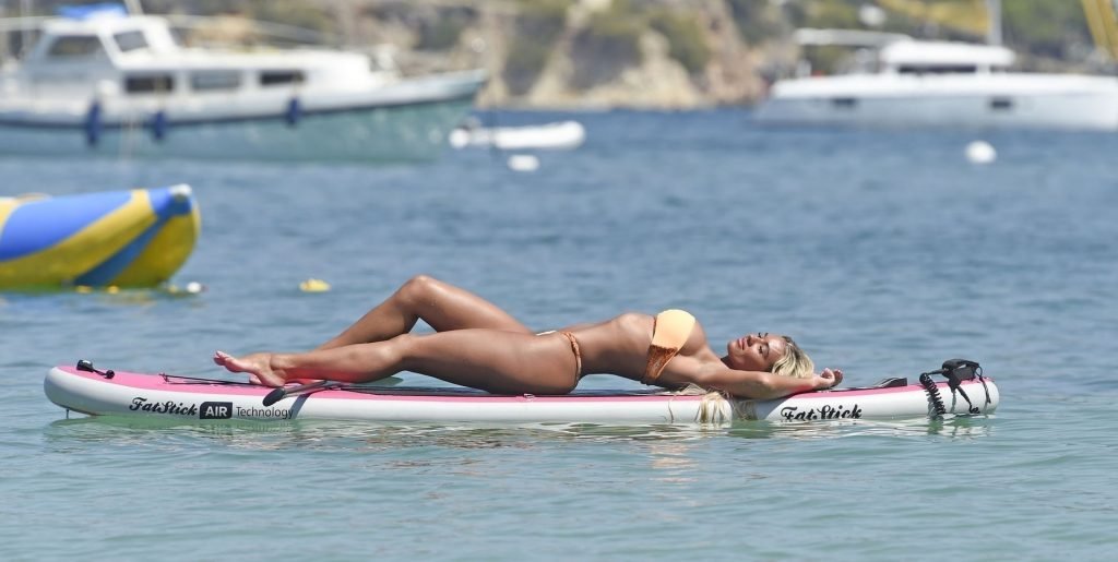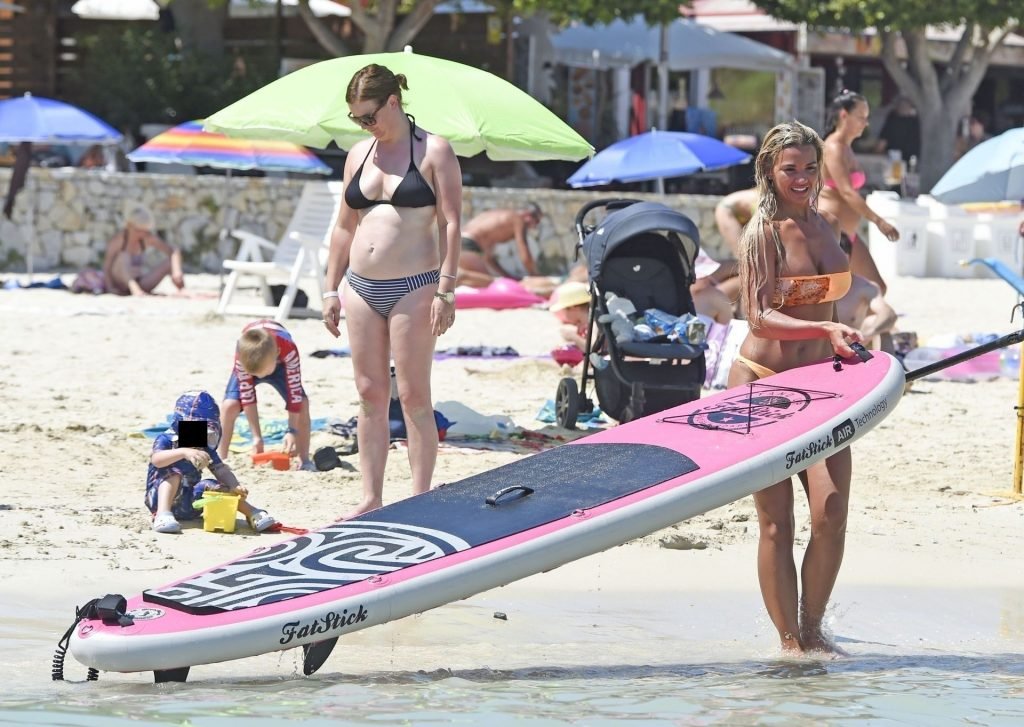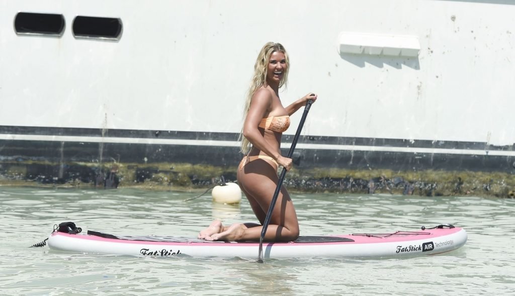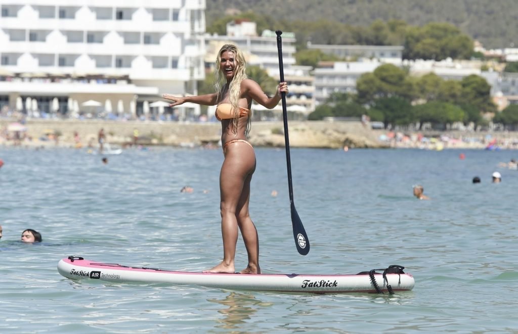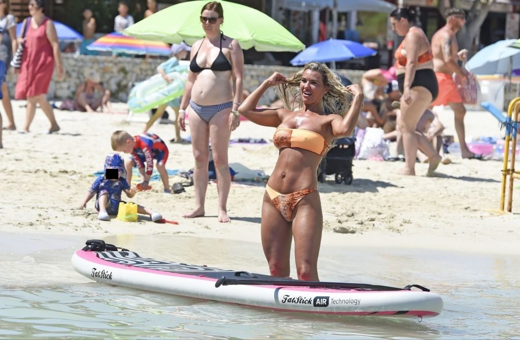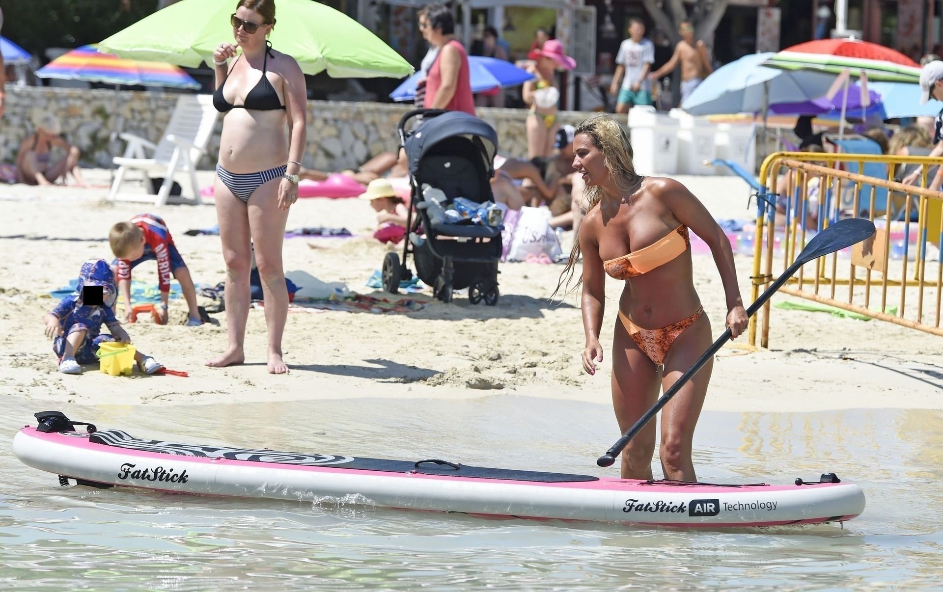 Con su larga melena rubia y su cuerpo ardiente de playa, la estrella de Real Housewives of Cheshire hizo subir la temperatura con una exhibición caliente sobre su tabla de paddle después de visitar la playa.