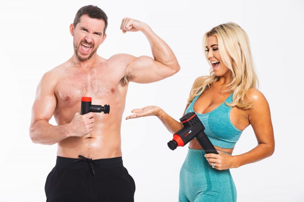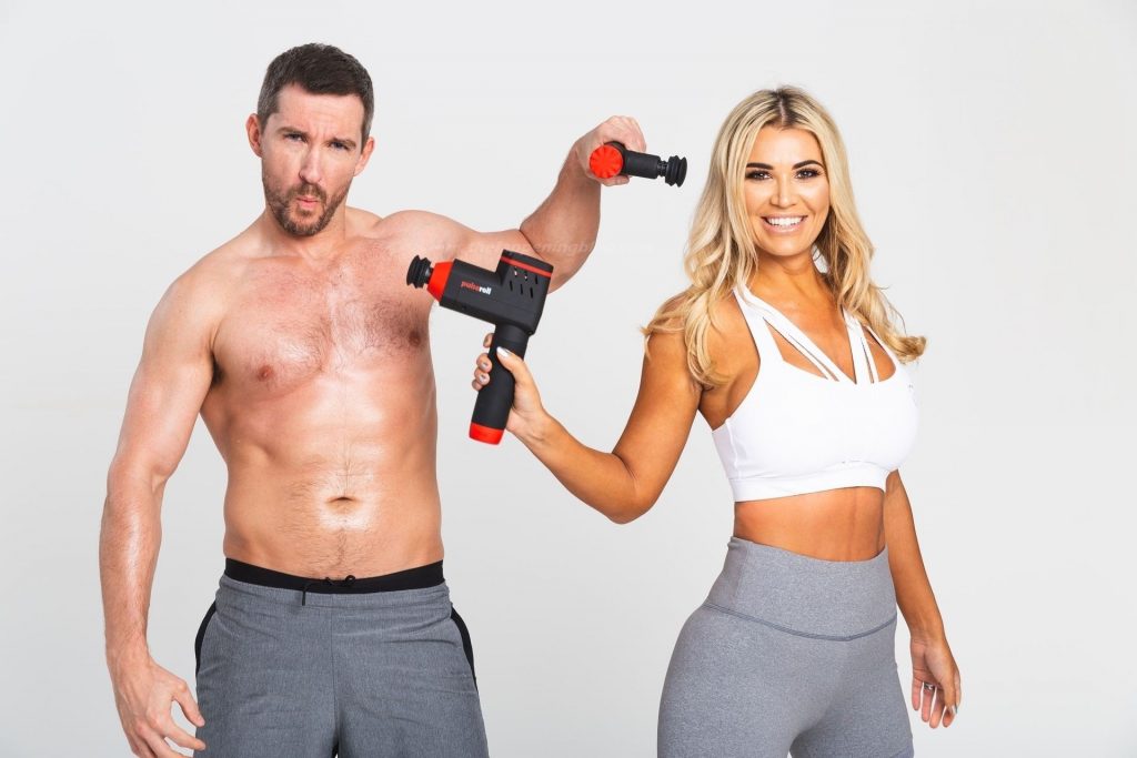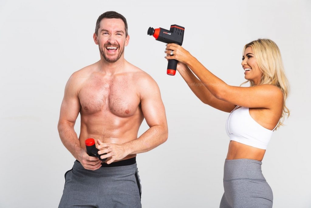 Christine McGuinness aparece mostrando su físico tonificado durante una sesión promocional con el actor Anthony Quinlan para el nuevo Pulse Roll en Manchester, 17/12/2020.