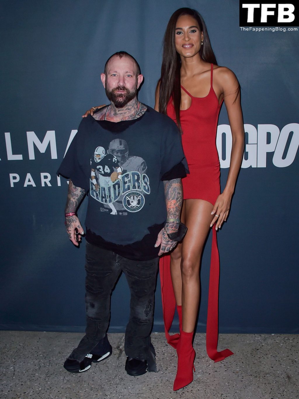 Model Cindy Bruna se ve con un vestido rojo en el lanzamiento de la colaboración DOGPOUND x Balmain Bbold celebrado en West Hollywood, 12/08/2021.