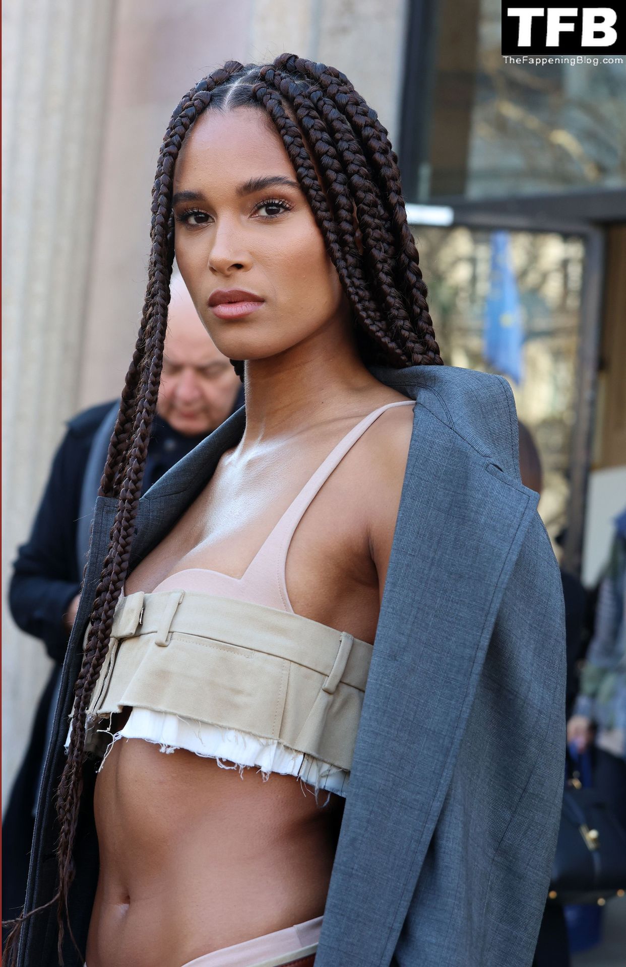 Modelo Cindy Bruna asiste al desfile de Miu Miu Prêt-à-porter Otoño-Invierno 2022-2023 durante la Semana de la Moda de París, 08/03/2022.