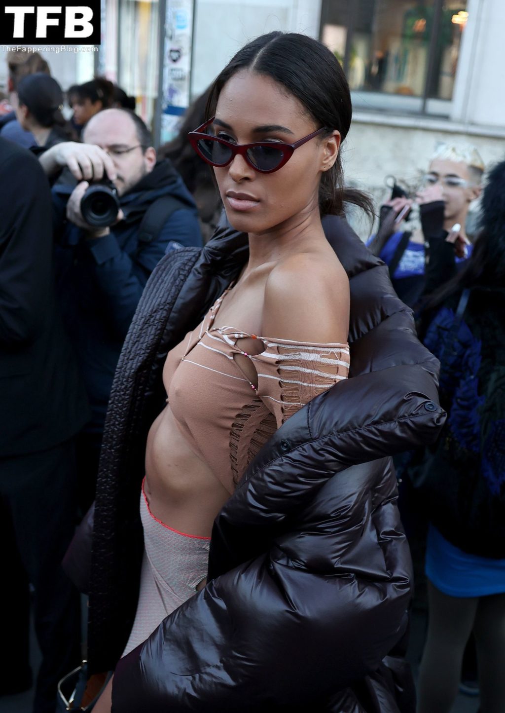 Modelo Cindy Bruna asiste al desfile de moda de la Colección Femenina Otoño-Invierno 2022-2023 de Elie Saab en París, 05/03/2022.