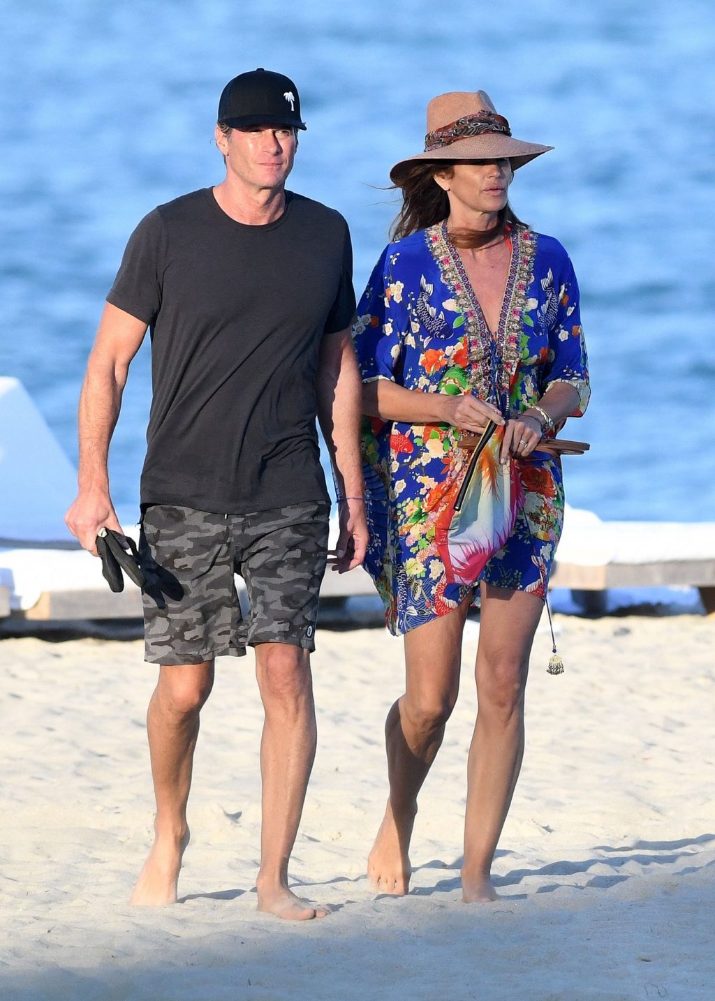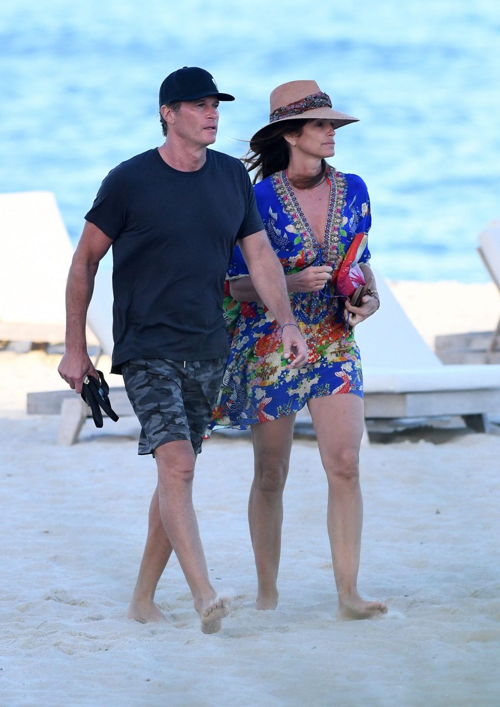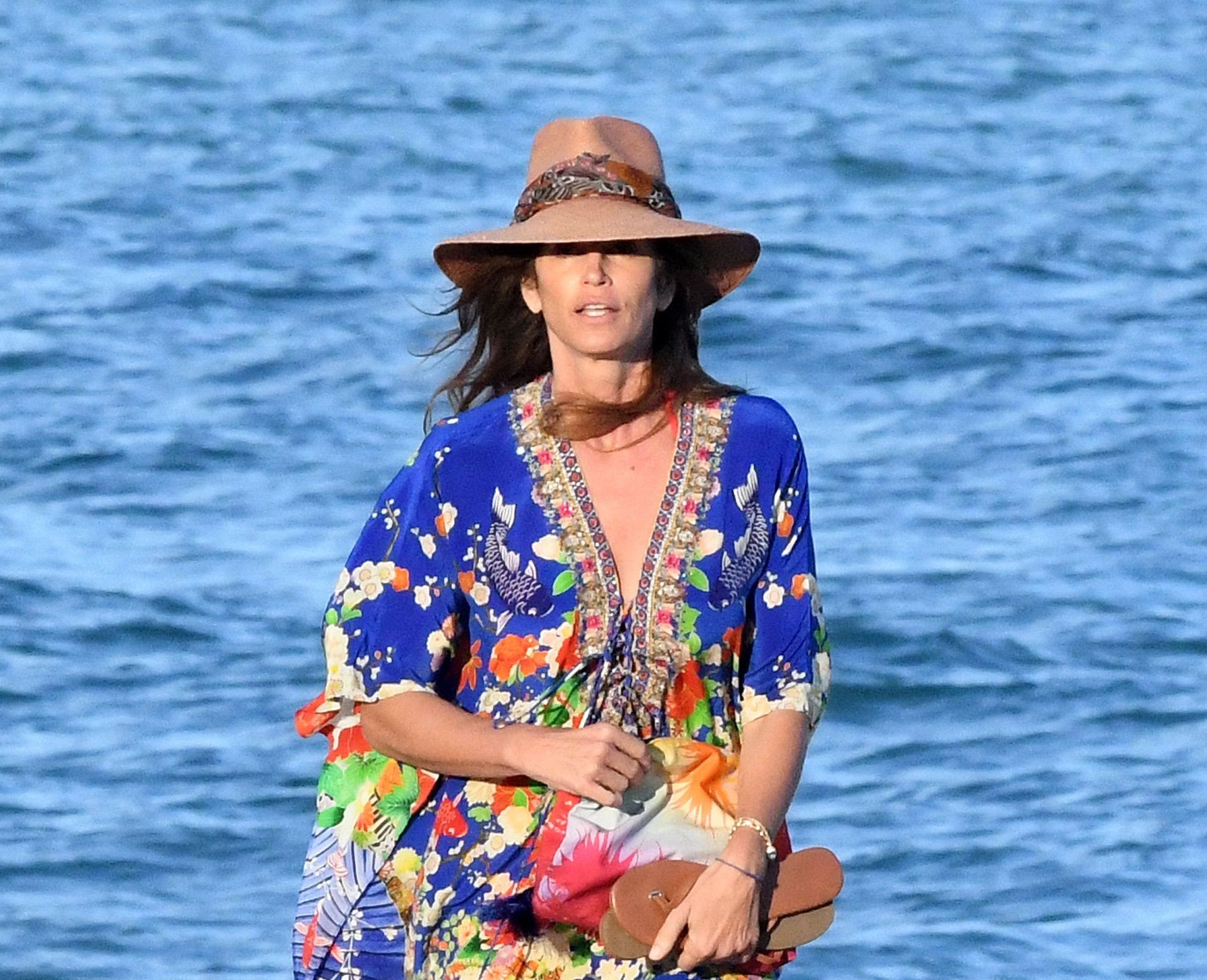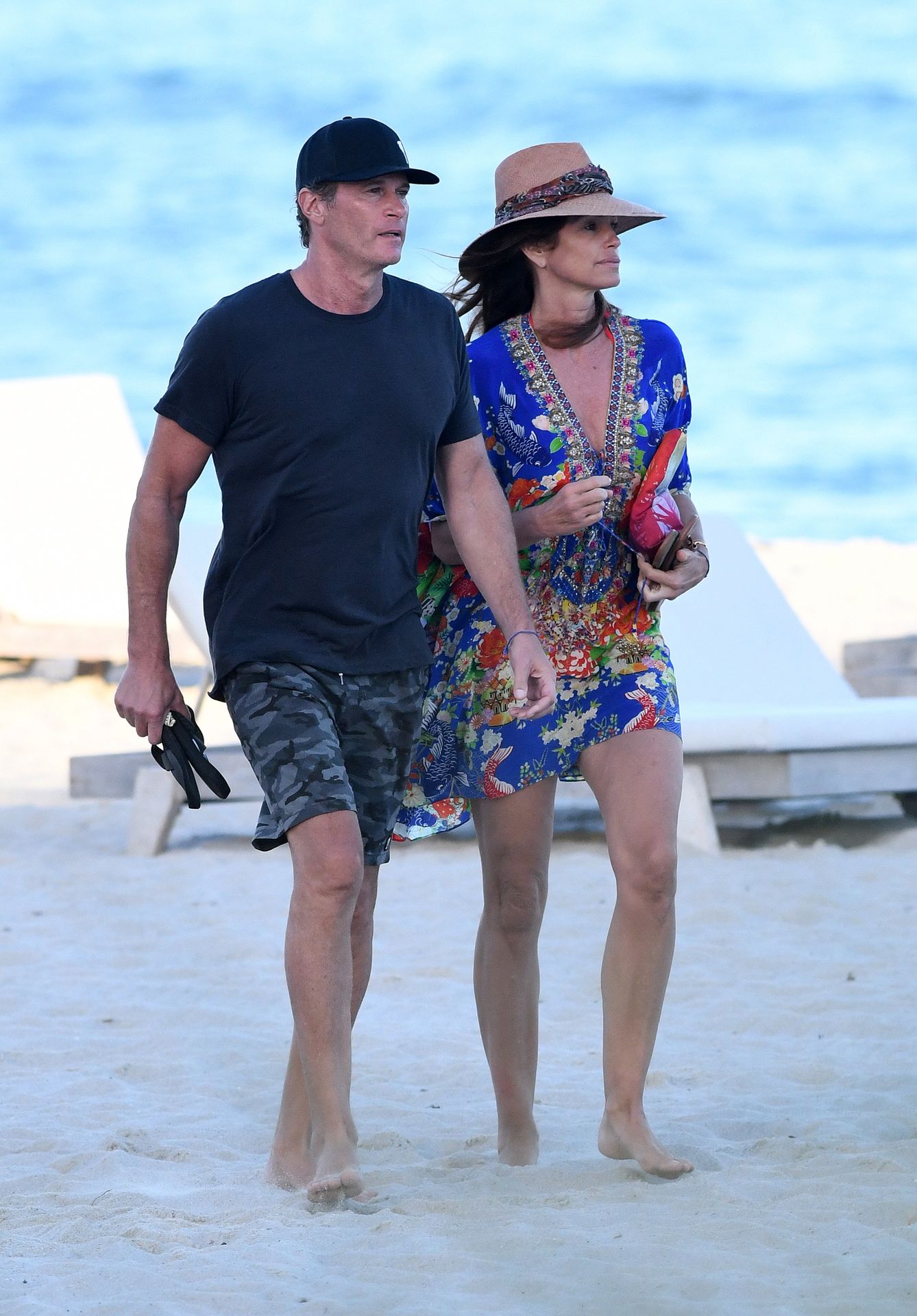 La esbelta supermodelo estadounidense Cindy Crawford (53) y su esposo Rande Gerber se relajan en la playa de Miami, 01/03/2020.