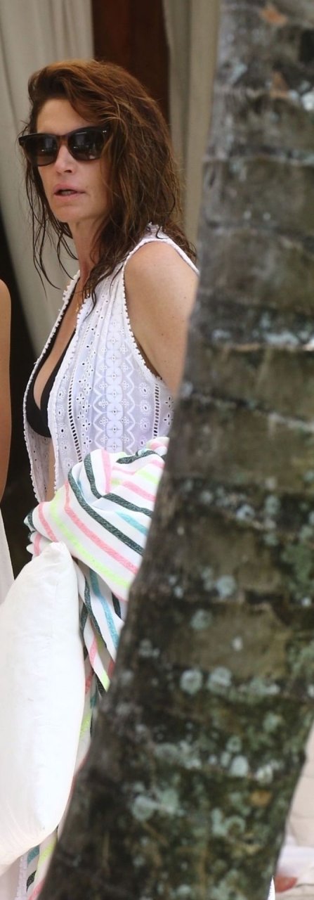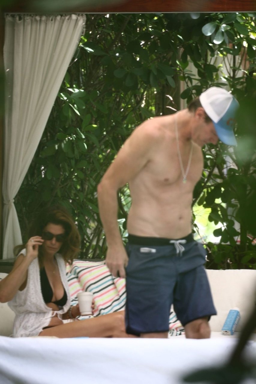 Supermodelo Cindy Crawford y su esposo Rande Gerber disfrutan de sus vacaciones en Miami, 22/06/2019. La pareja se ve relajándose junto a la piscina.