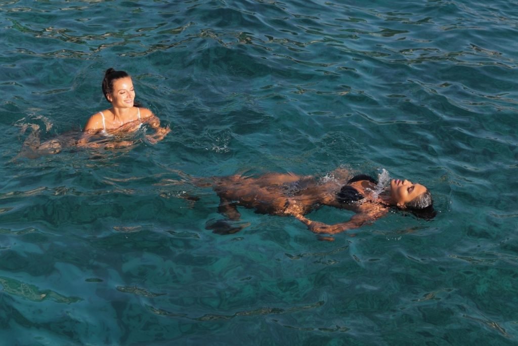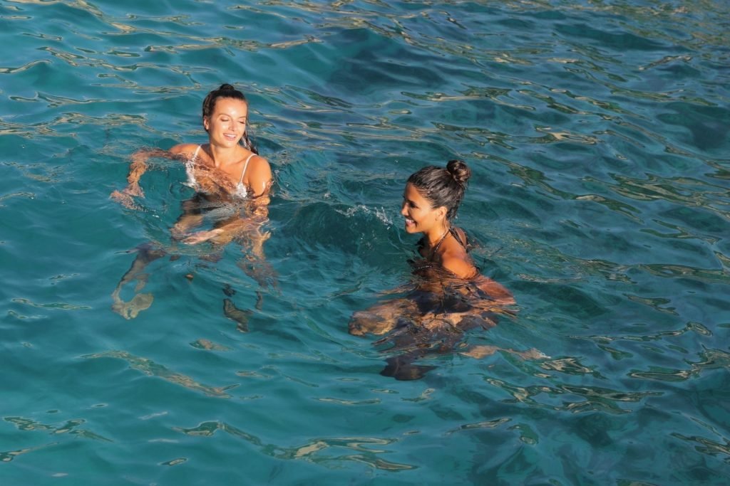 CJ Franco y Natalia Janoszek se sumergen en el Mar Caribe mientras vacacionan en Jamaica, 25/09/2019. Las modelos pasaron un tiempo relajándose en un yate cerca del famoso Rick’s Cafe.