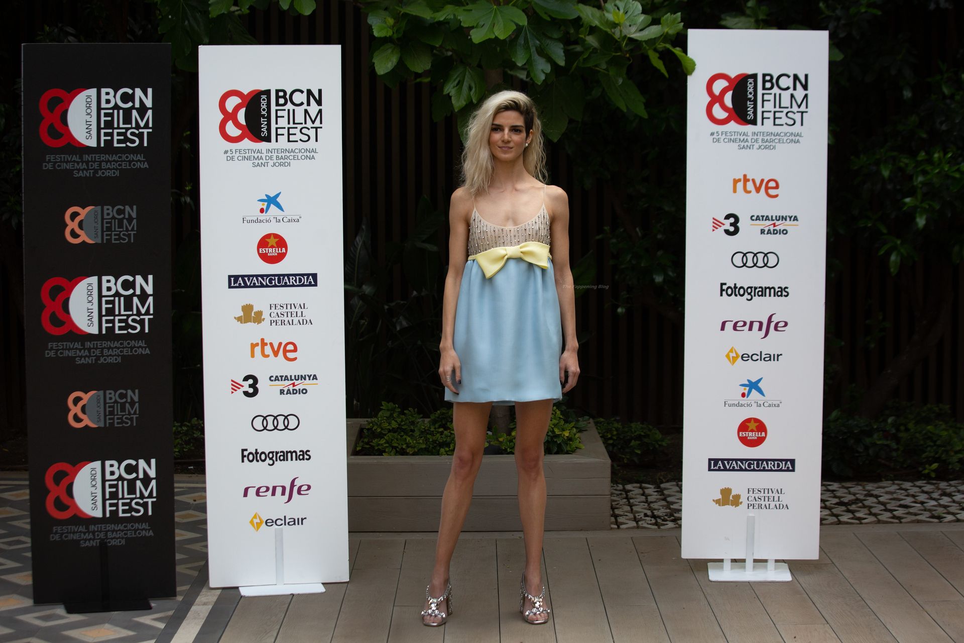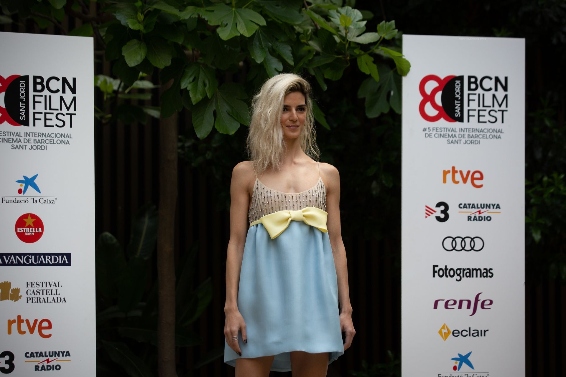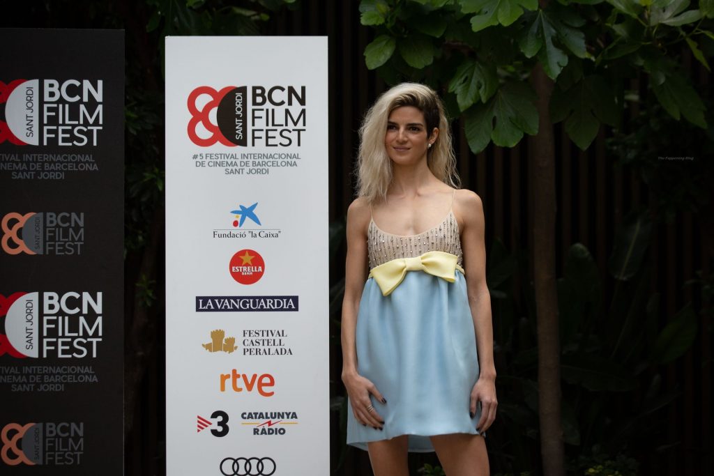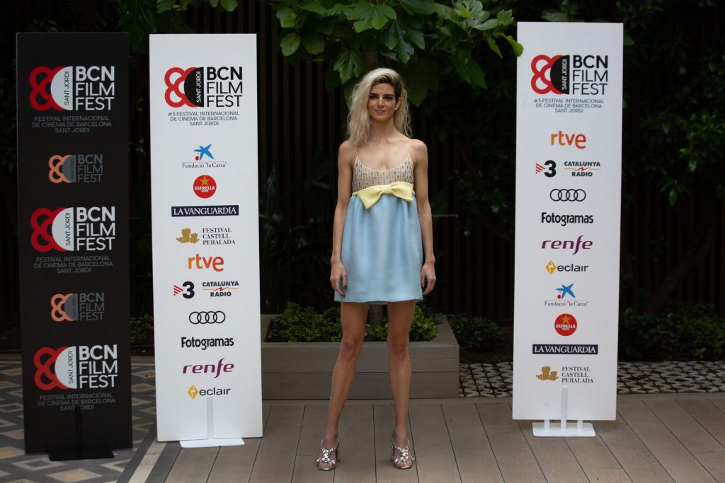 La actriz de piernas largas Clara Lago posa sin sujetador en la sesión de fotos de la película Crónica de una tormenta en el BCN Film Fest en Barcelona, 22/04/2021. La película se estrenará en cines el 30 de abril.