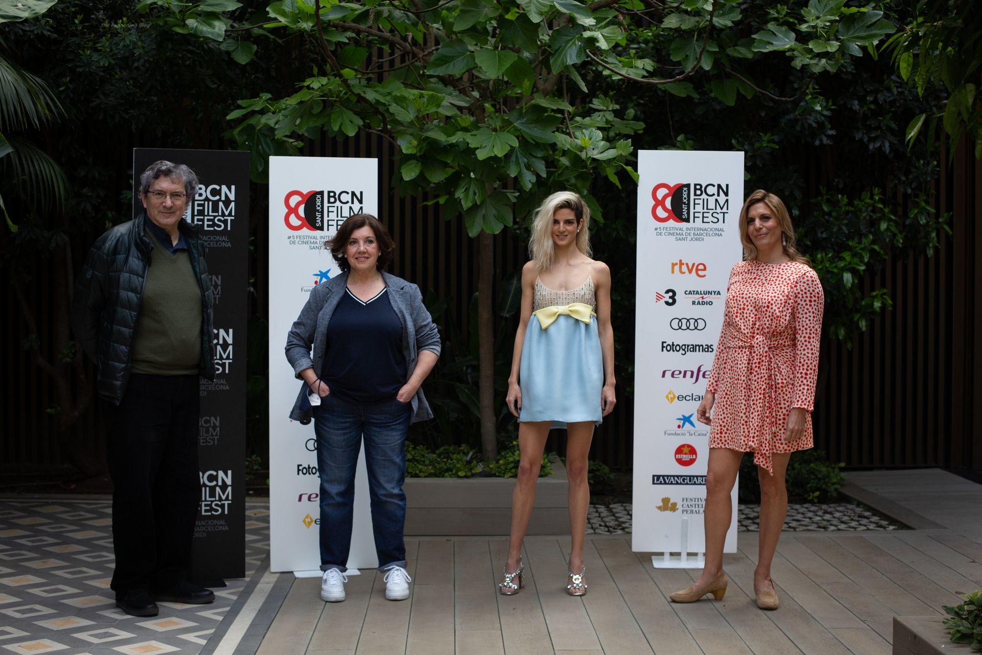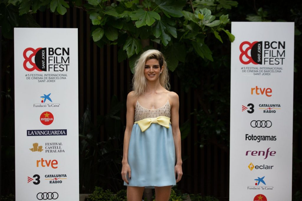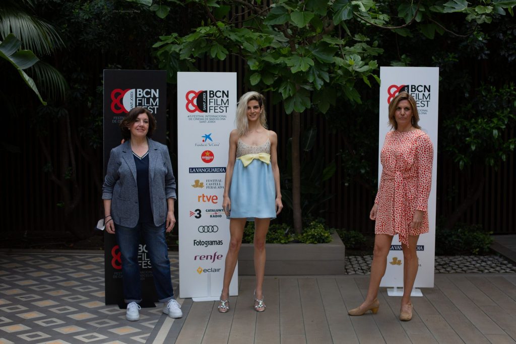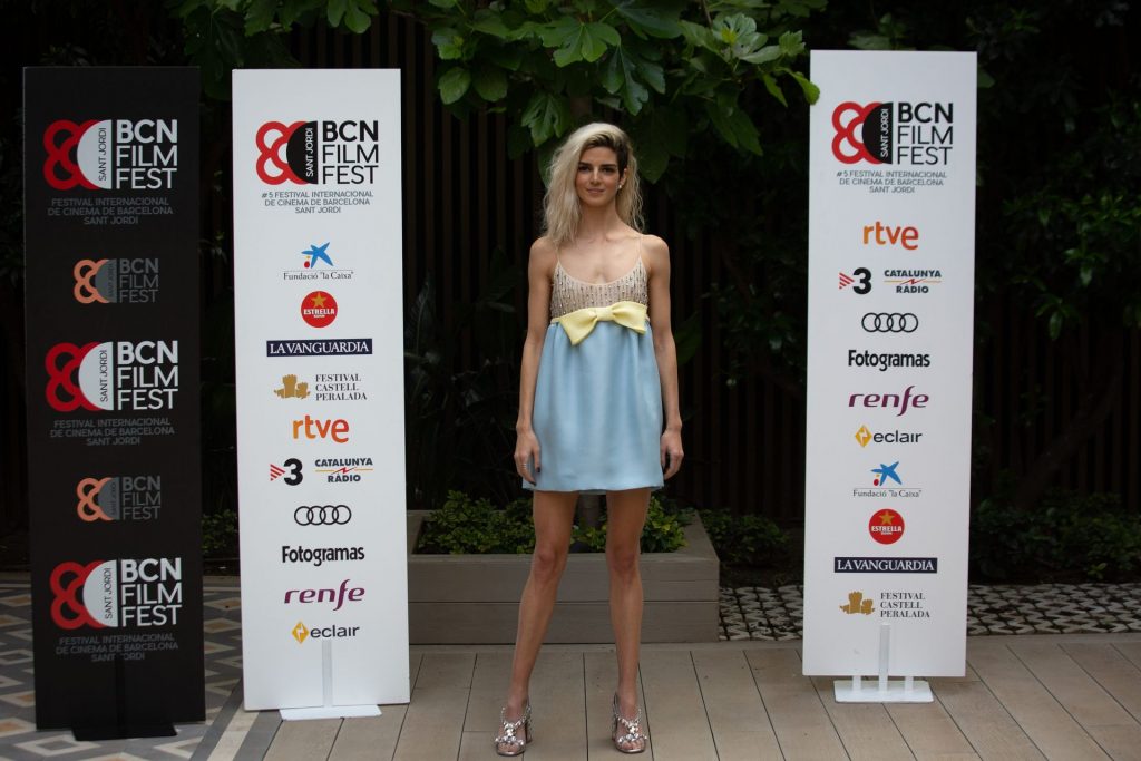 La actriz de piernas largas Clara Lago posa sin sujetador en la sesión de fotos de la película Crónica de una tormenta en el BCN Film Fest en Barcelona, 22/04/2021. La película se estrenará en cines el 30 de abril.