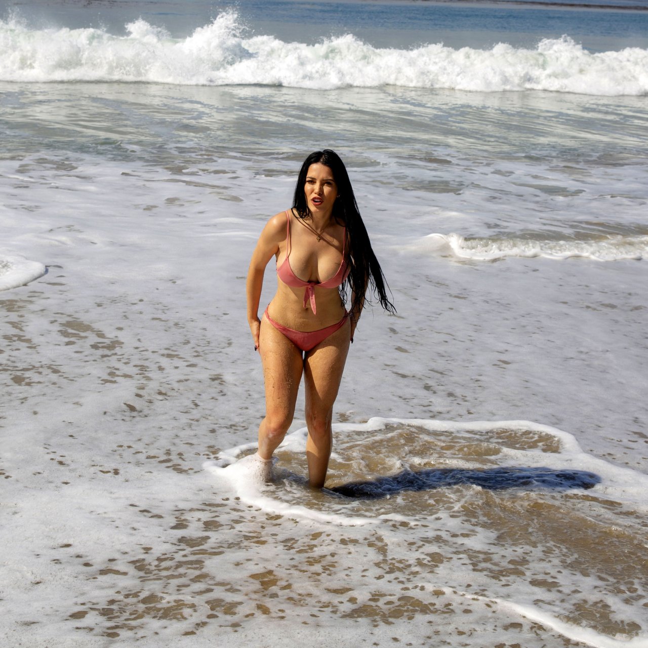 Social media sensation Claudia Alende, quien tiene más de 10.1 millones de seguidores solo en Instagram, mostró las famosas curvas que la hicieron una popular candidata a Miss Bumbum, 07/04/2018. Fue vista en la playa en Los Ángeles, donde la joven de 24 años ha estado intentando lanzar una carrera como actriz y cantante.