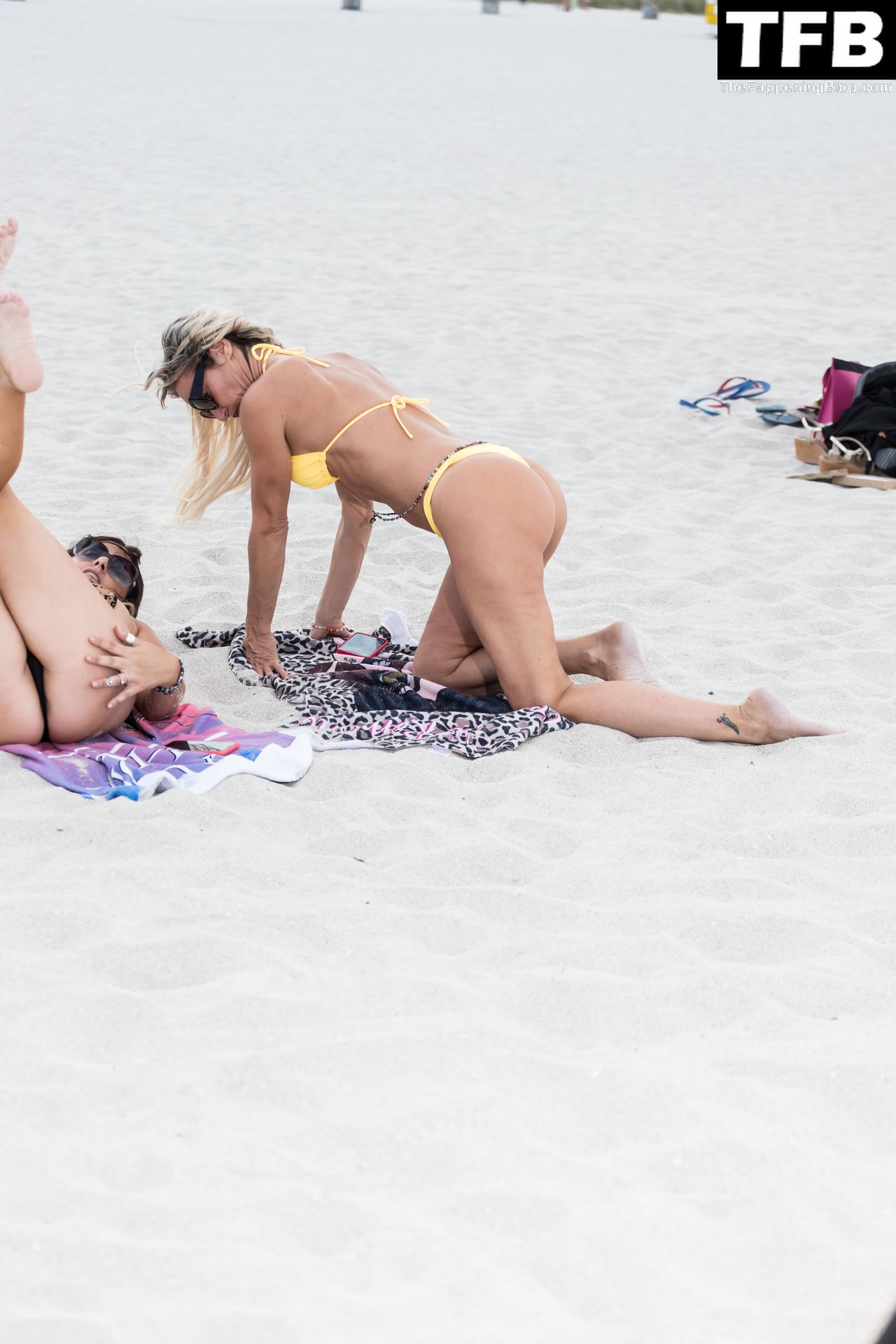 Las modelos estaban sonriendo mientras posaban para selfies en el malecón con sus prendas de cobertura, luego en la playa usando diminutos bikinis tanga y joyería corporal.