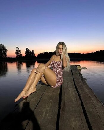 La modelo posó sobre una gran toalla con la bandera americana, vistiendo un top sin mangas de estrellas y rayas y una parte inferior de bikini azul combinada con zapatillas deportivas con cuña y gafas de sol rojas.