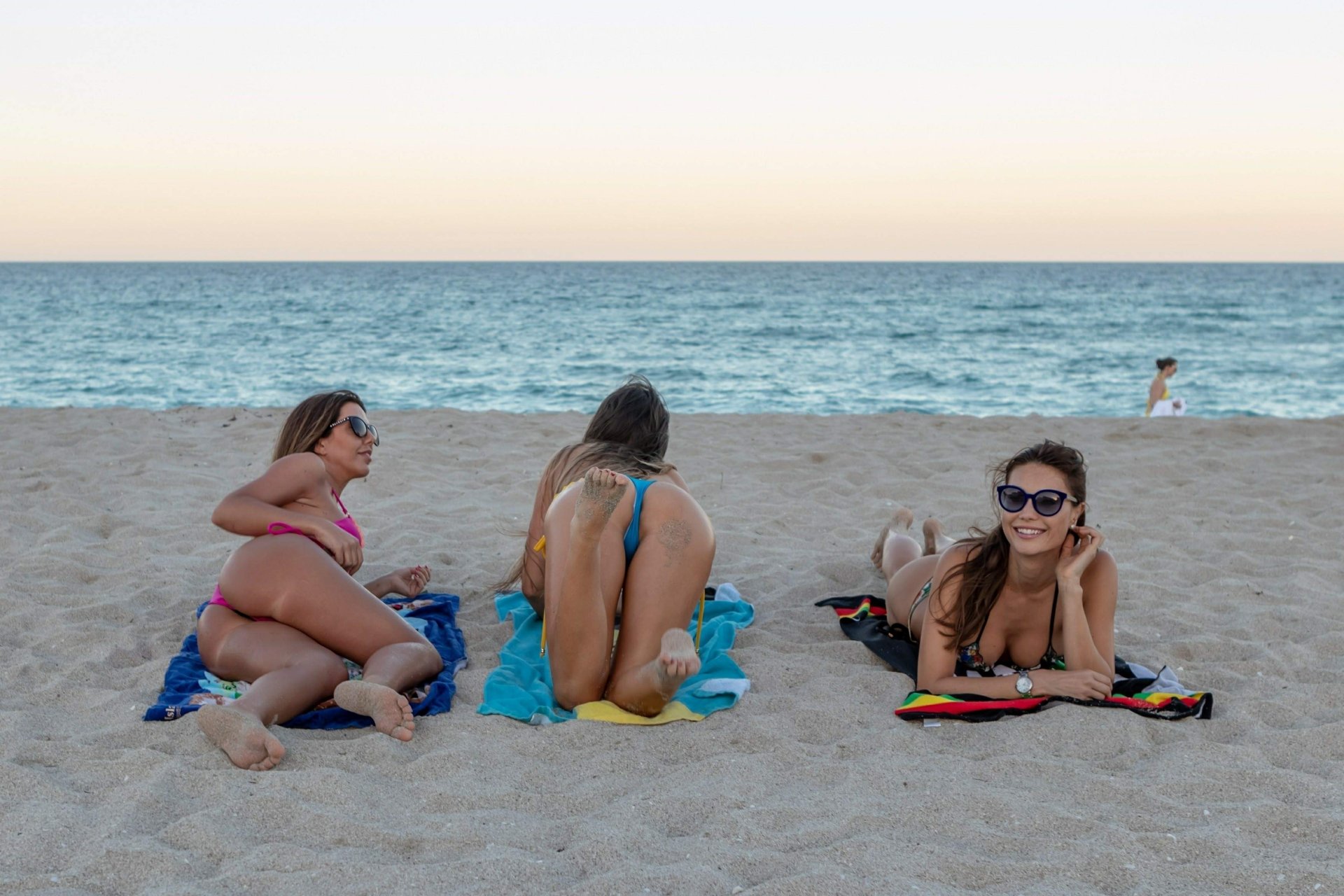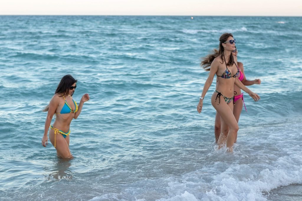 Modelos Claudia Romani, Julia Pereira y Laura Bragato realizaron una sesión de fotos en bikini en la playa de Miami, 04/09/2018.