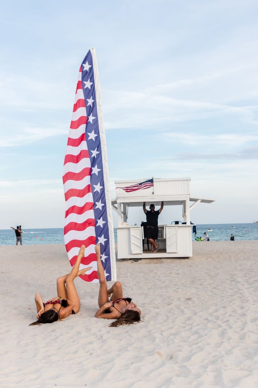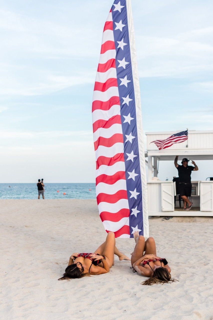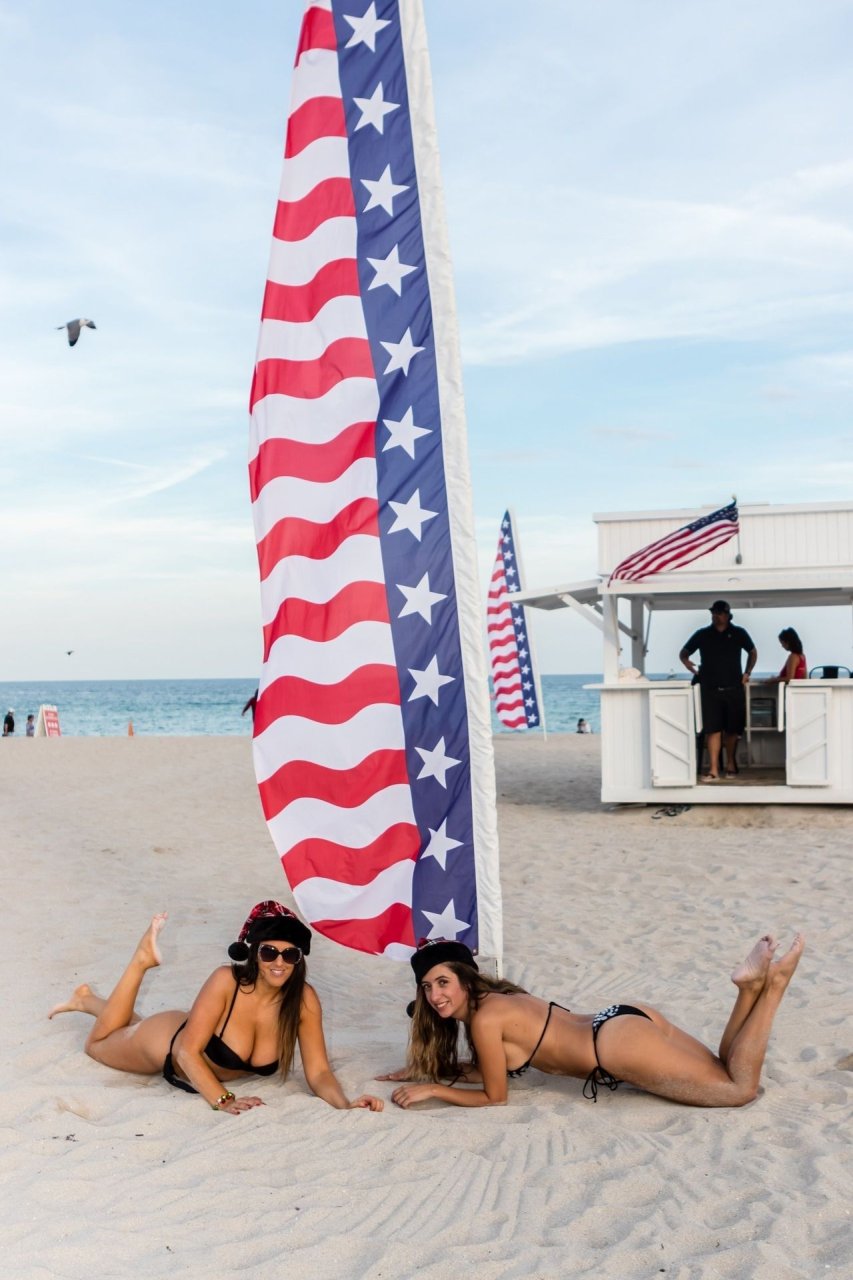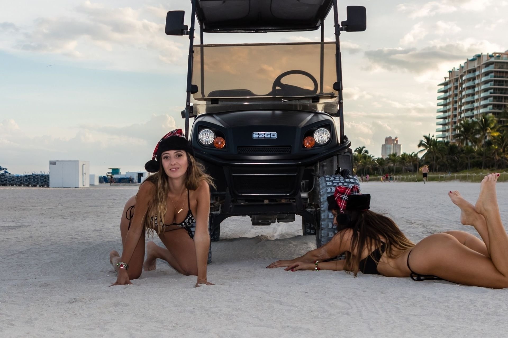 La modelo italiana y estrella de reality TV Claudia Romani y la estrella estadounidense de Youtube Lauren Francesca posan en South Beach justo antes de Navidad, 23/12/2018. Las amigas llevaban bikinis negros sexys y gorros de Santa. Ho Ho Ho.