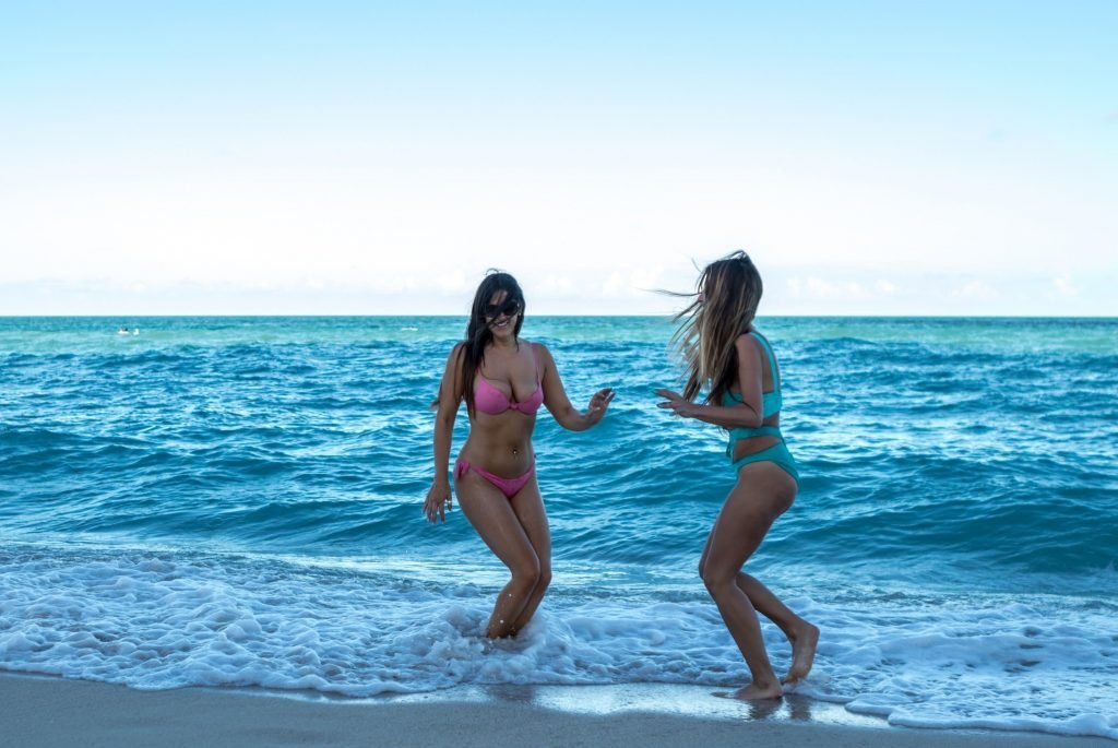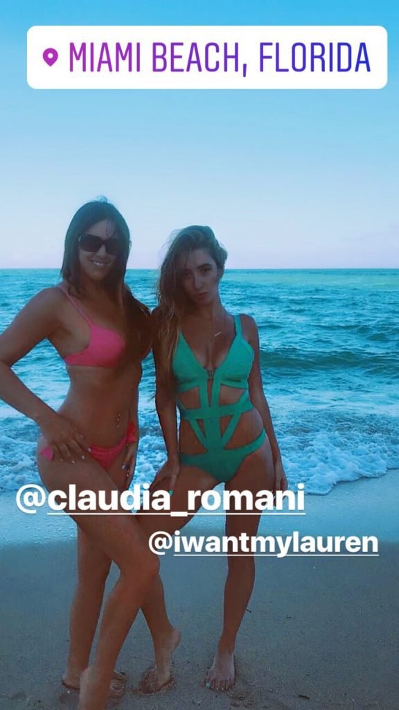 La estrella de reality Claudia Romani y la estrella de YouTube con base en Los Ángeles Lauren Francesca divirtiéndose en South Beach, 25/02/2018.