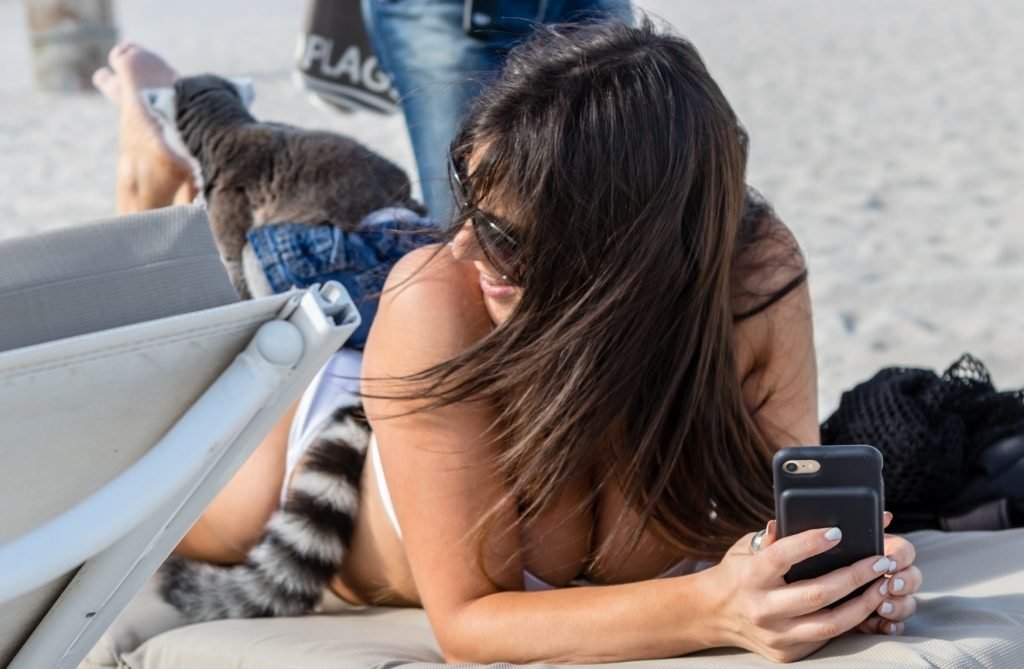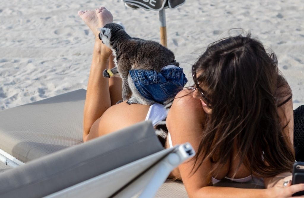 Modelo y estrella de reality TV Claudia Romani (35) es vista en South Beach jugando con un lémur, 21/01/2018.