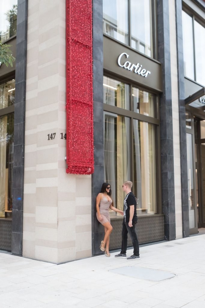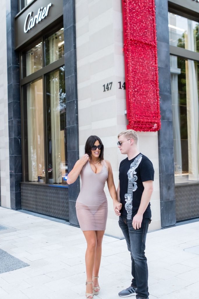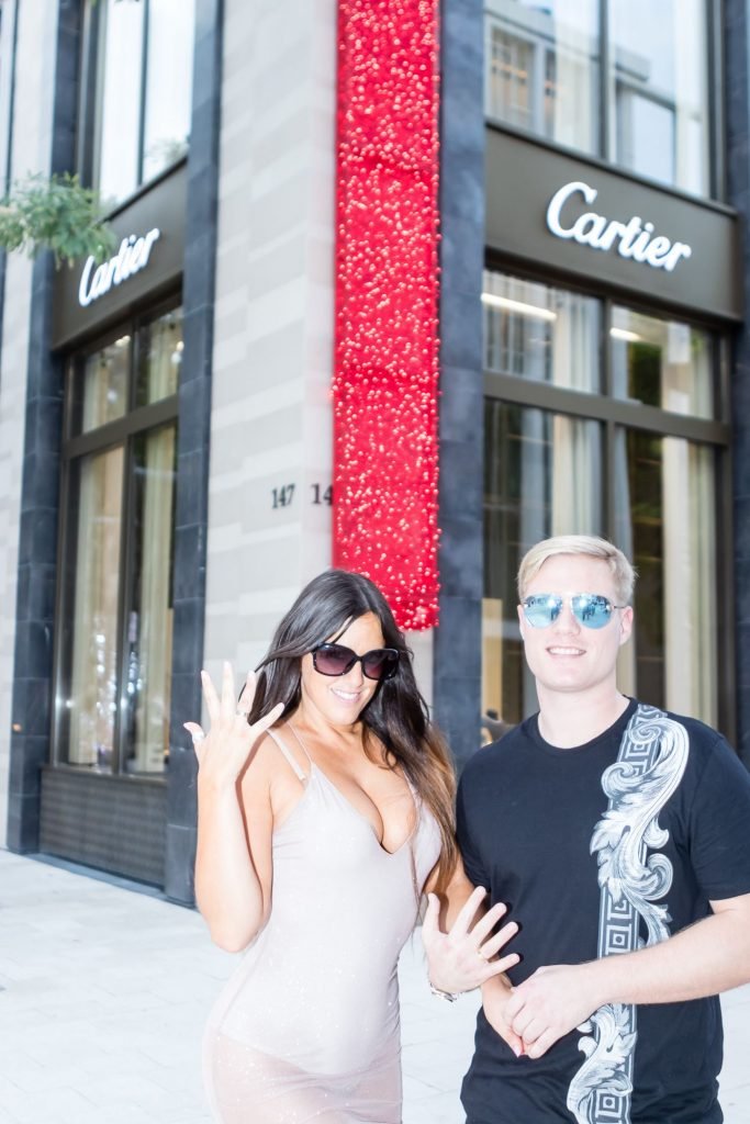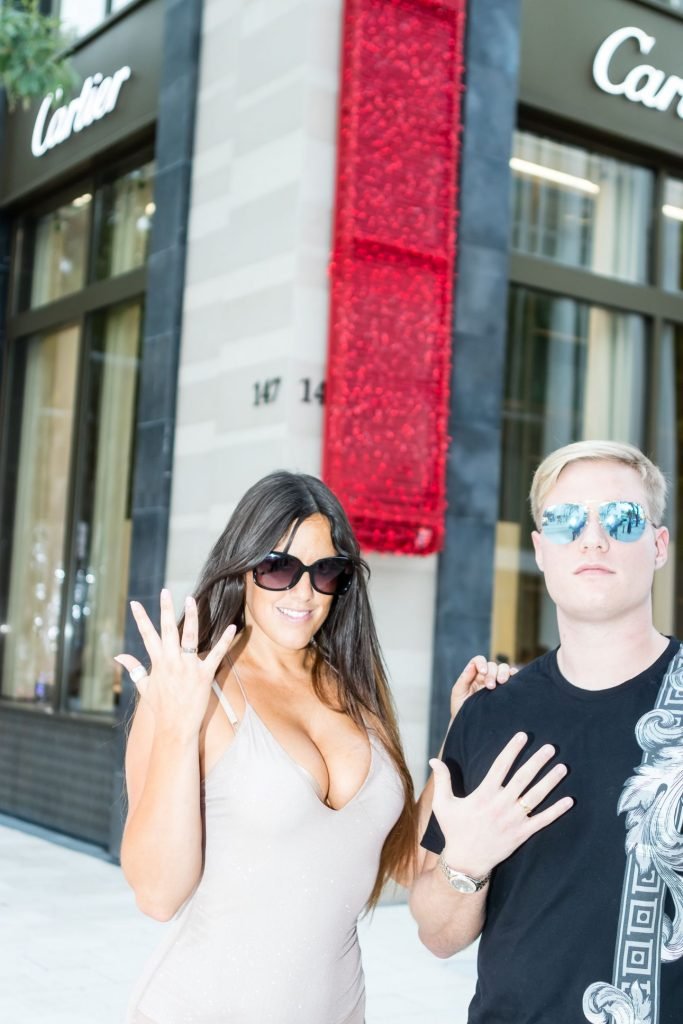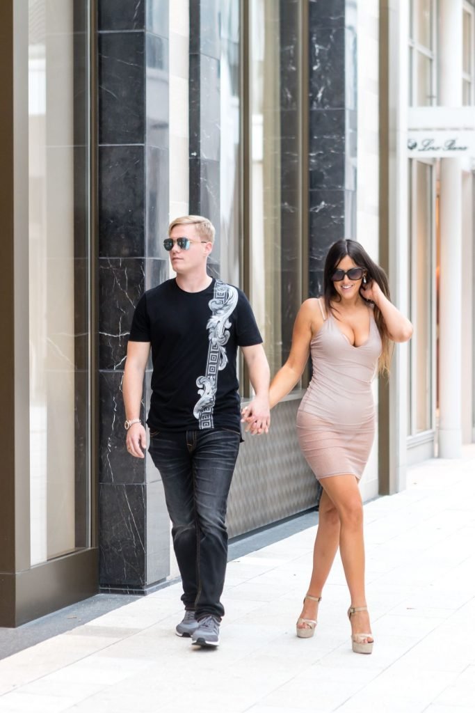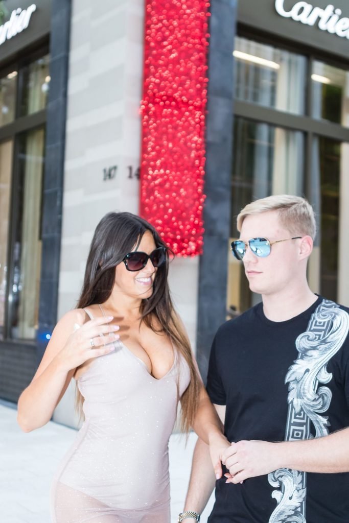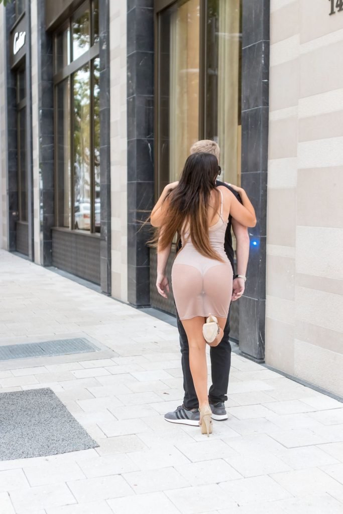 Secret Story IIalian estrella de reality Claudia Romani y su novio Chris Johns fueron vistos en el distrito de diseño de Miami comprando anillos Cartier a juego, 16/11/2017. Claudia llevaba un vestido transparente para que se pudiera ver la tanga.