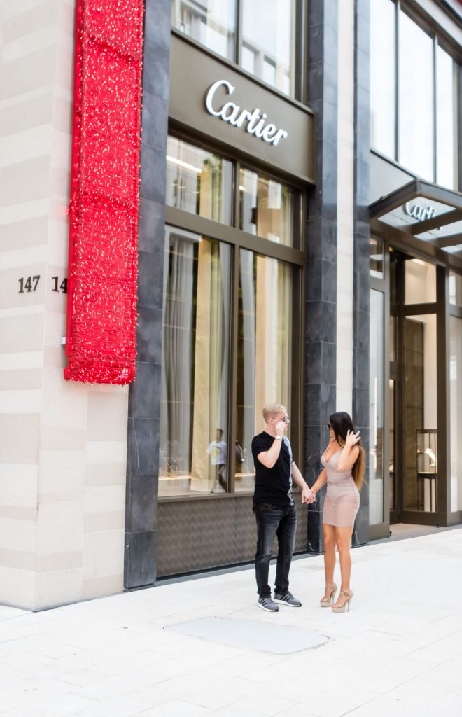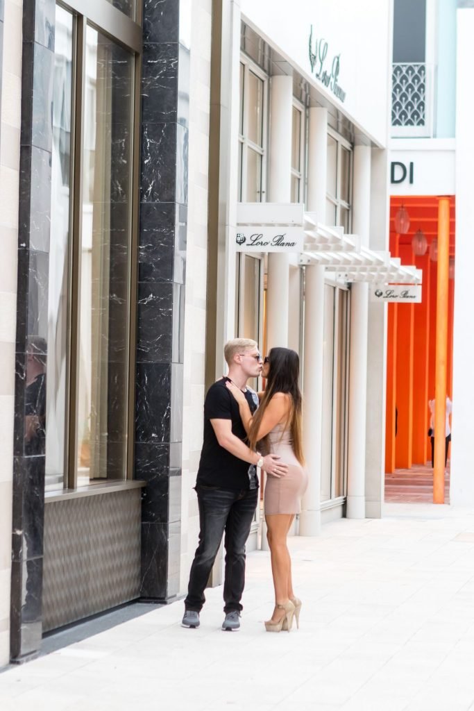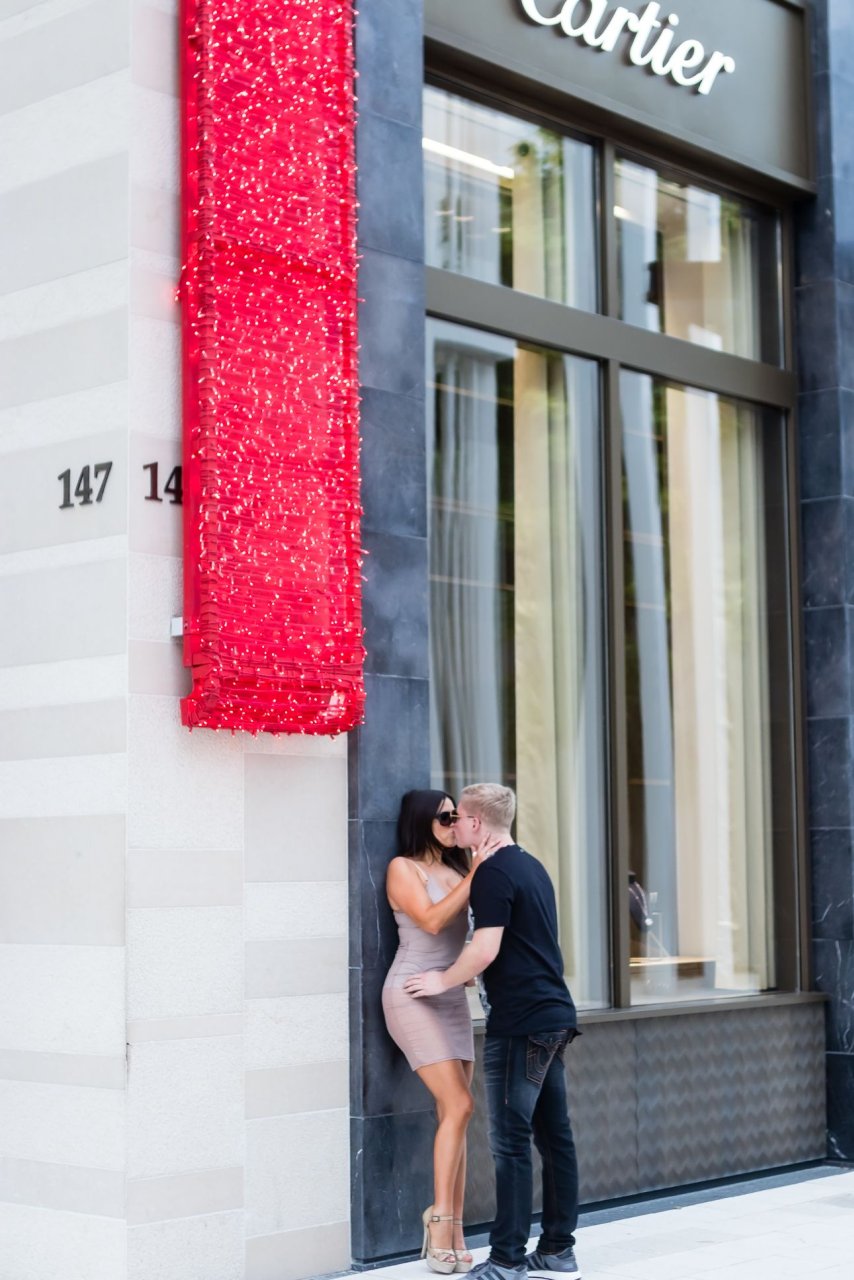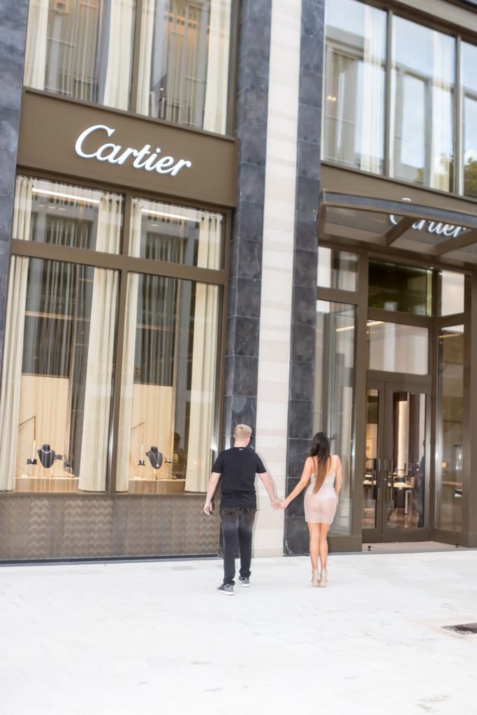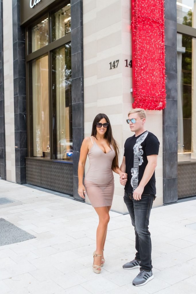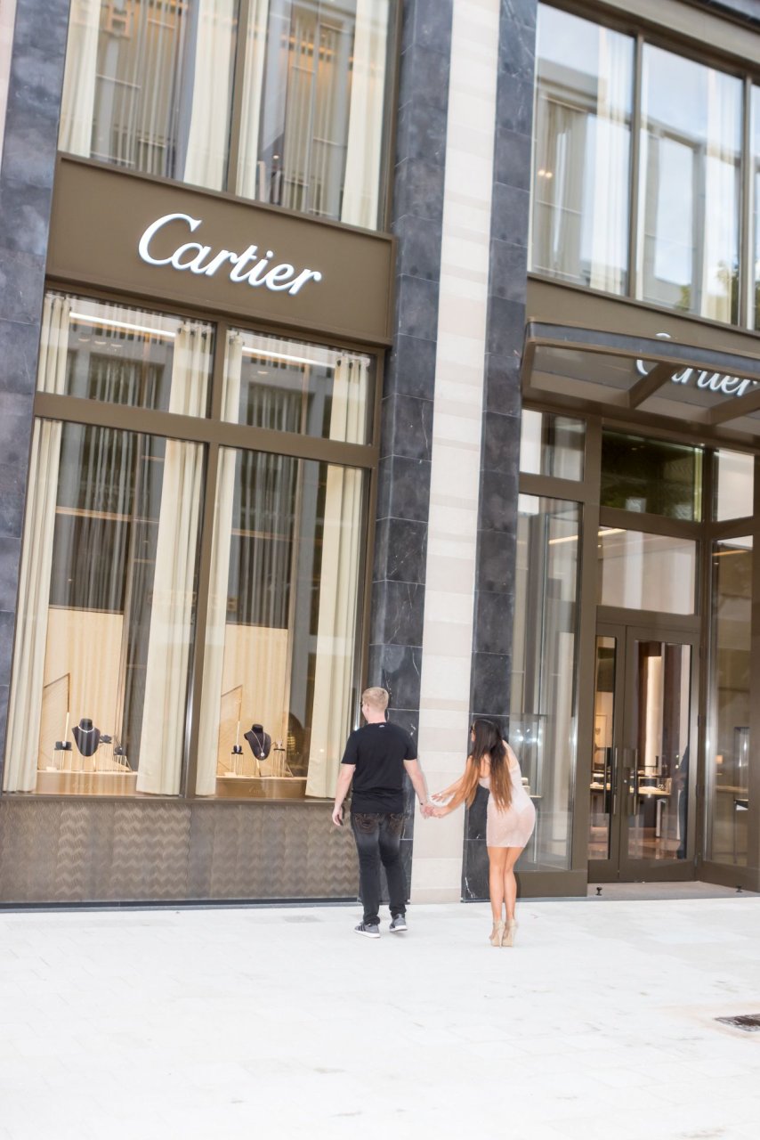 Secret Story IIalian estrella de reality Claudia Romani y su novio Chris Johns fueron vistos en el distrito de diseño de Miami comprando anillos Cartier a juego, 16/11/2017. Claudia llevaba un vestido transparente para que se pudiera ver la tanga.