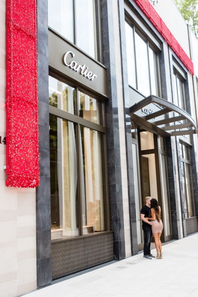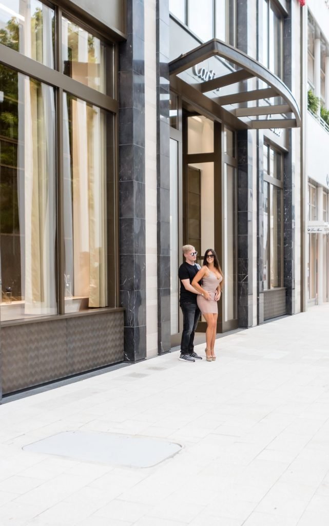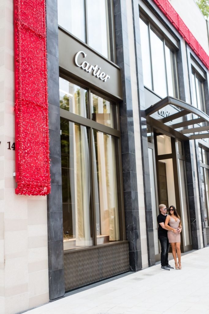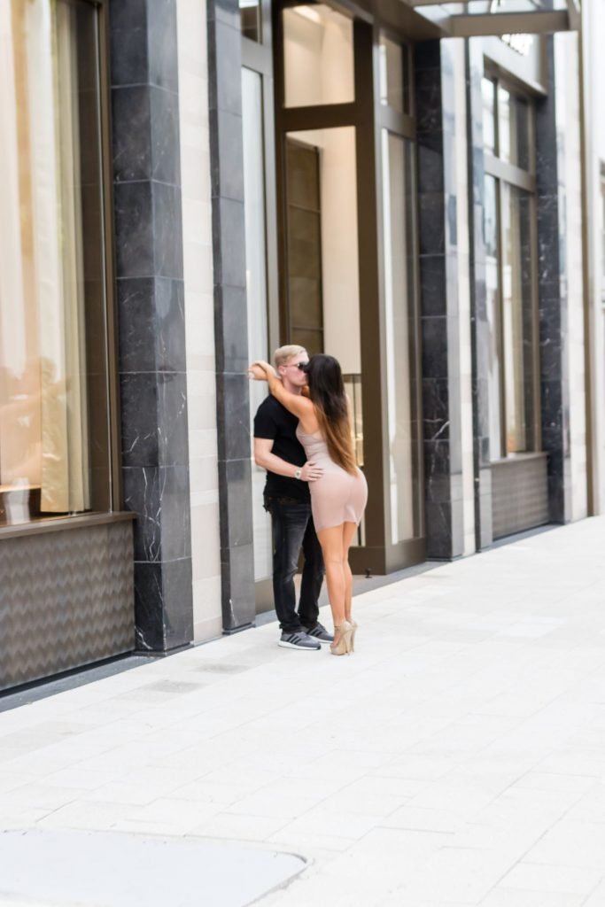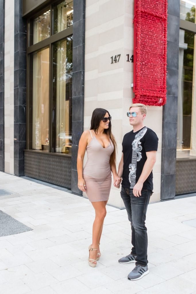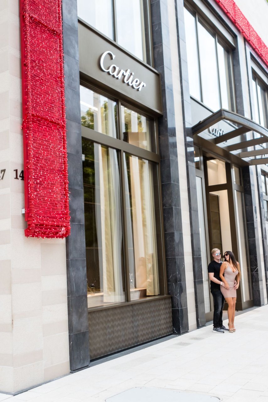 Secret Story IIalian estrella de reality Claudia Romani y su novio Chris Johns fueron vistos en el distrito de diseño de Miami comprando anillos Cartier a juego, 16/11/2017. Claudia llevaba un vestido transparente para que se pudiera ver la tanga.