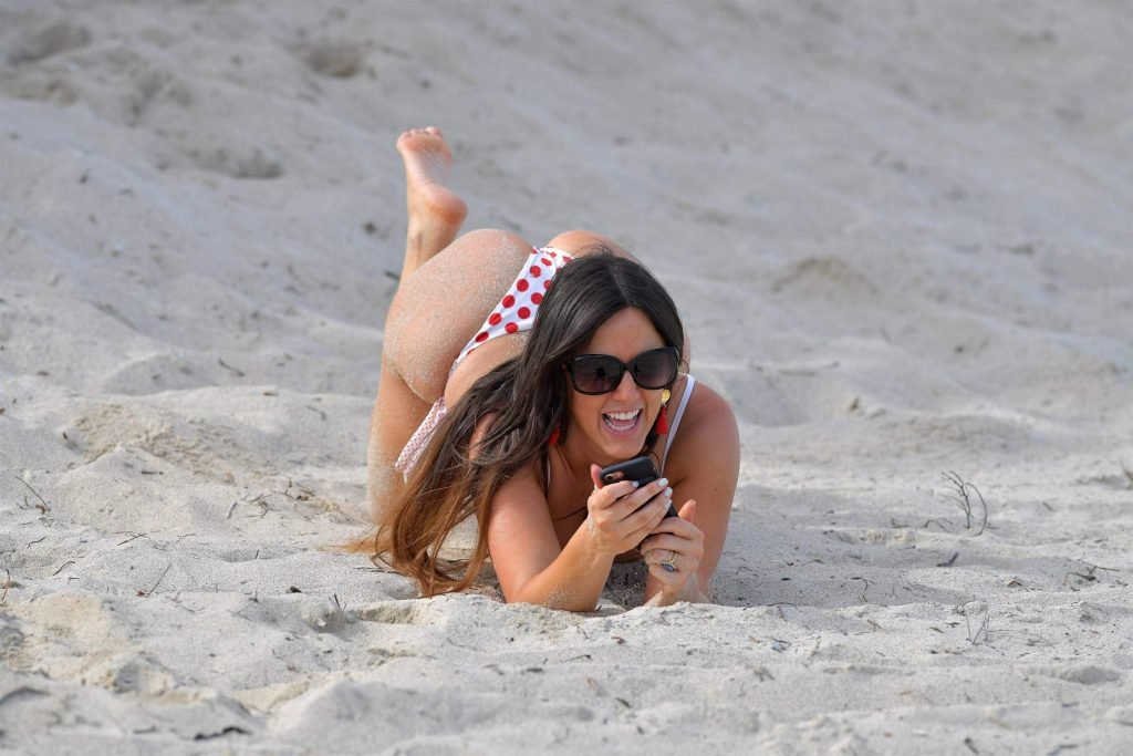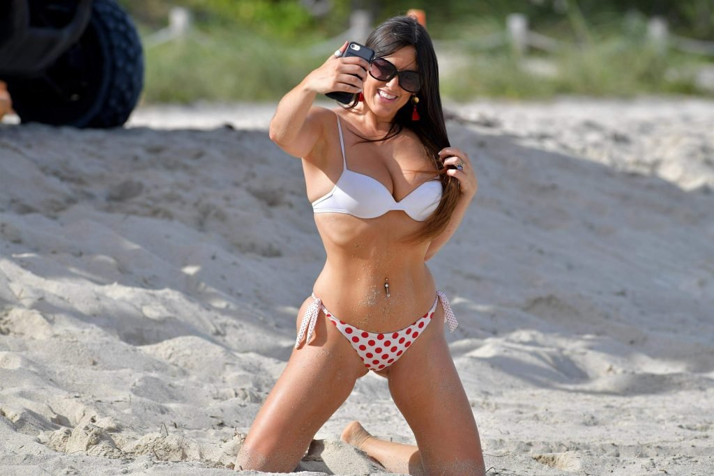Model y estrella de telerrealidad Claudia Romani, 35, posa en bikini para una sesión de fotos del Día de San Valentín en la playa de Miami, 14/02/2018.