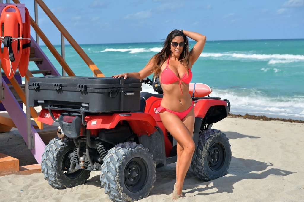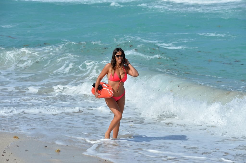 Claudia Romani vista luciendo increíblemente sexy con un bikini rosa sexy en la playa de Miami, 22/04/2017. Claudia Romani es una modelo y estrella de reality TV de Italia. Edad: 34.