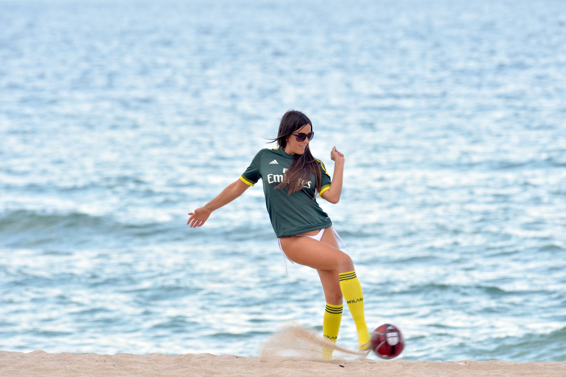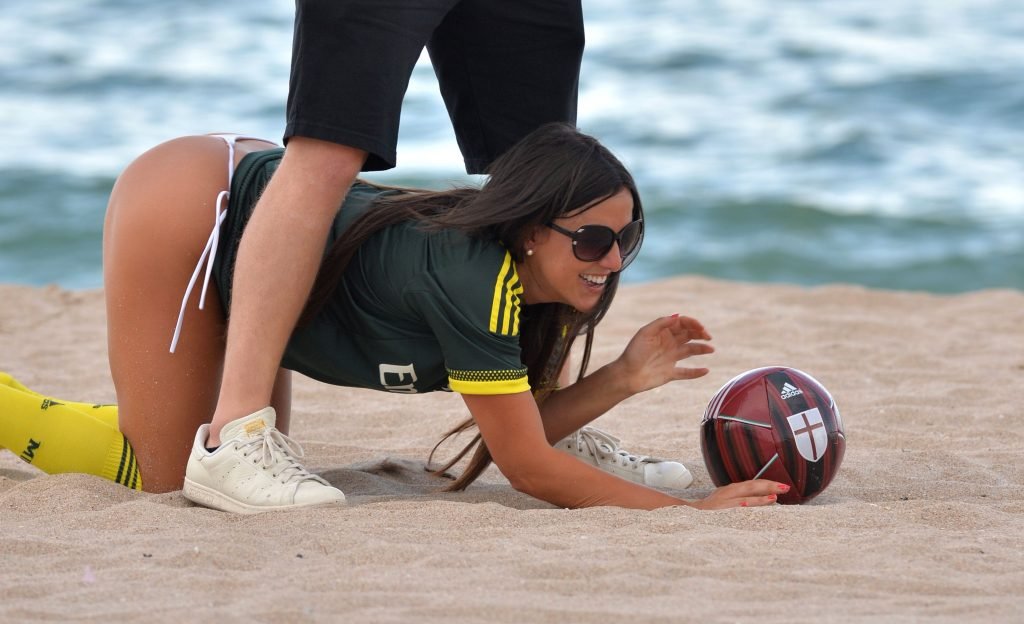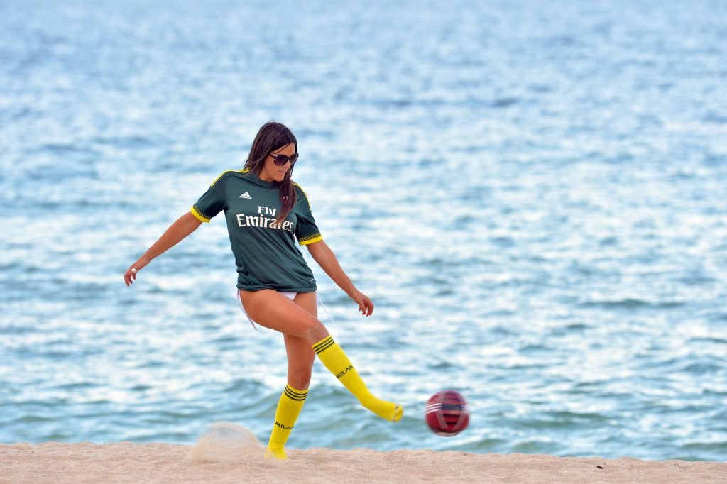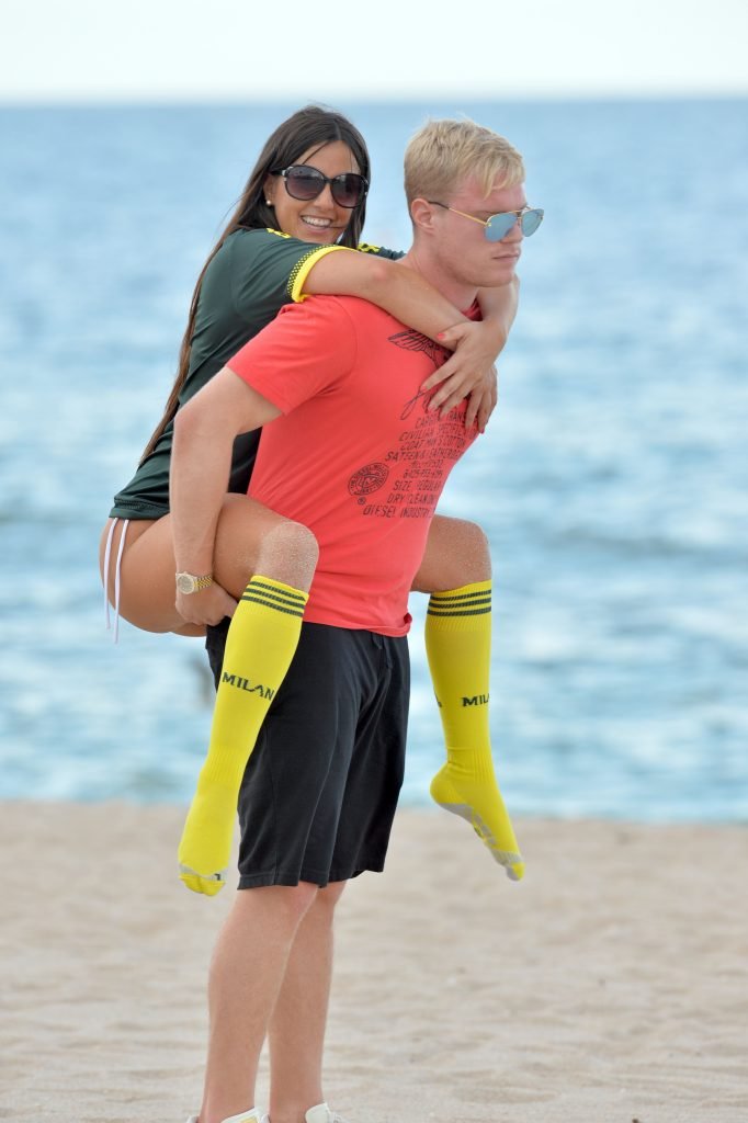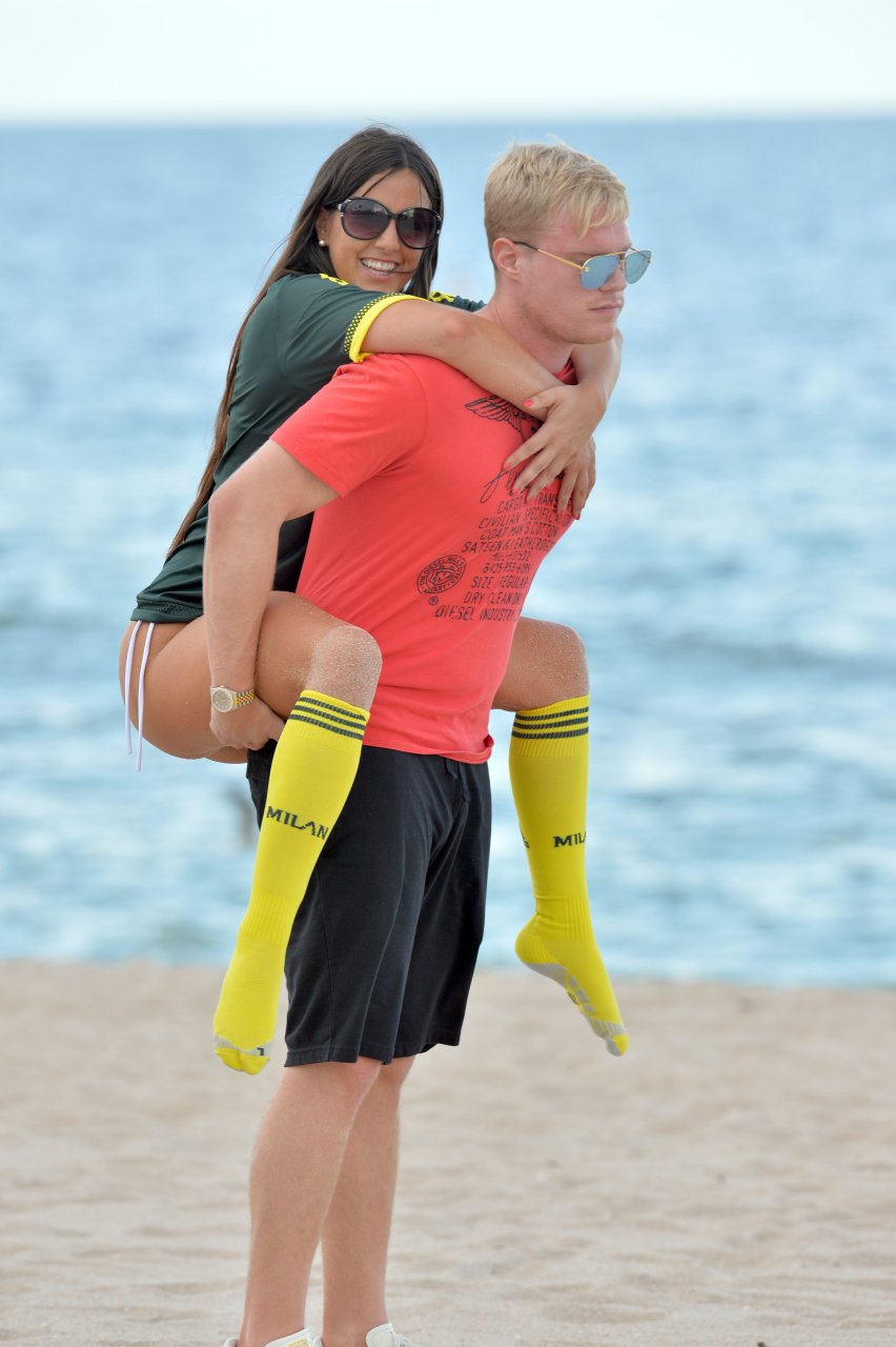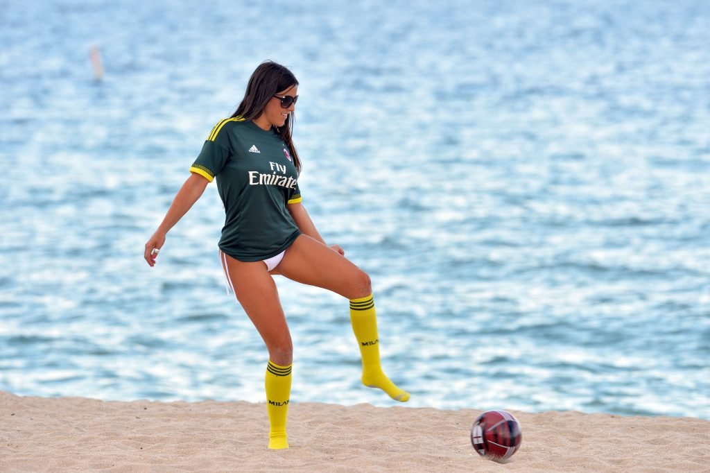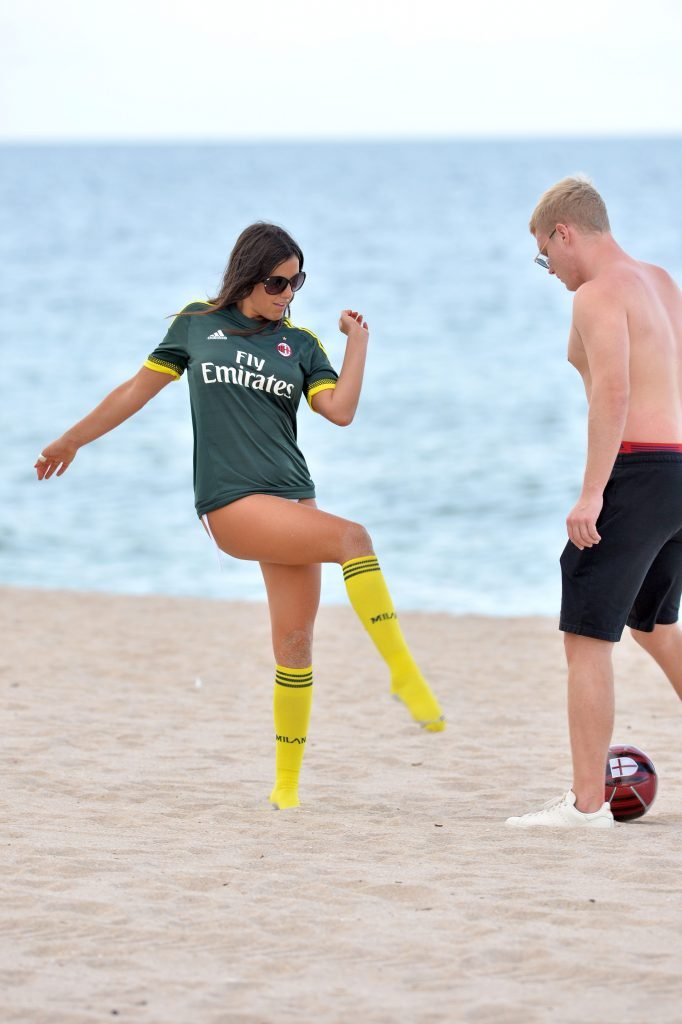 Claudia Romani luce increíblemente sexy con su camiseta del AC Milan jugando con su novio, el empresario Chris Johns en Sunny Isles Beach, 19/07/2017. Claudia Romani es modelo, ex estrella del programa francés de telerrealidad ‘Secret story 9’ y ganadora de la chica morena del año 2016 para Playboy Italia.