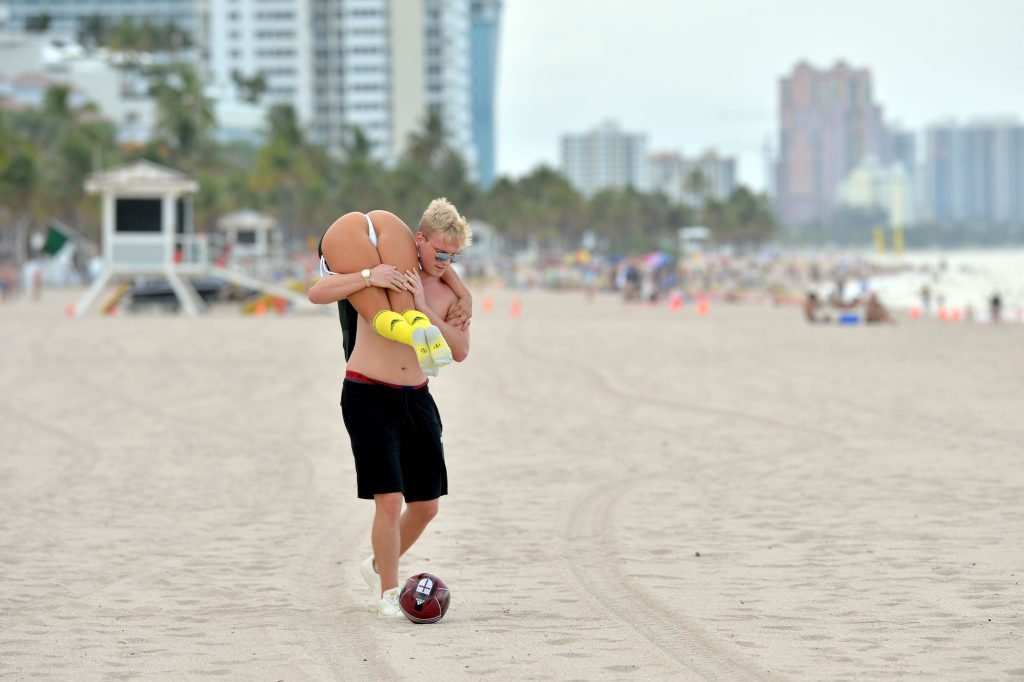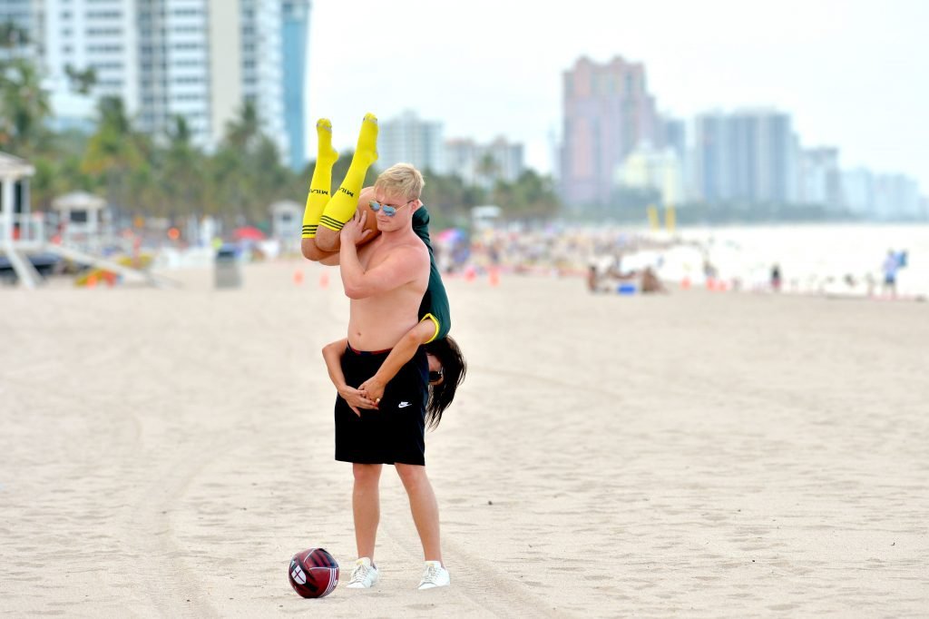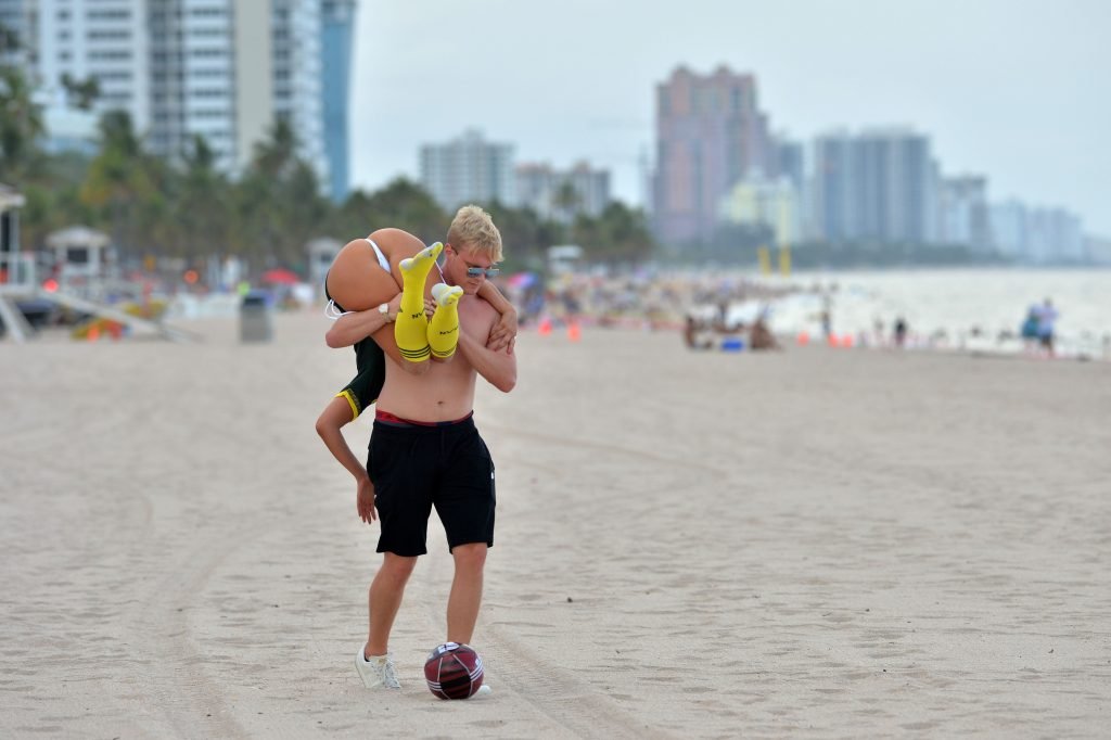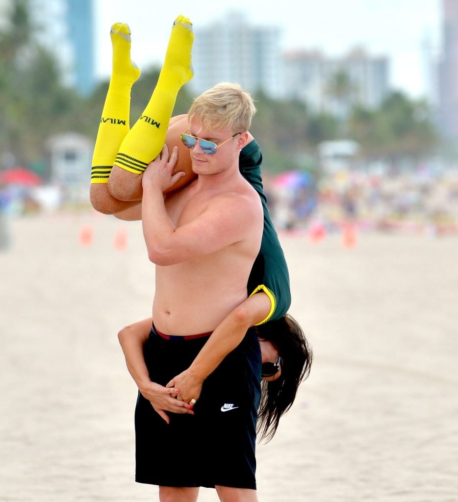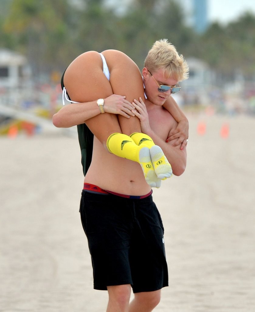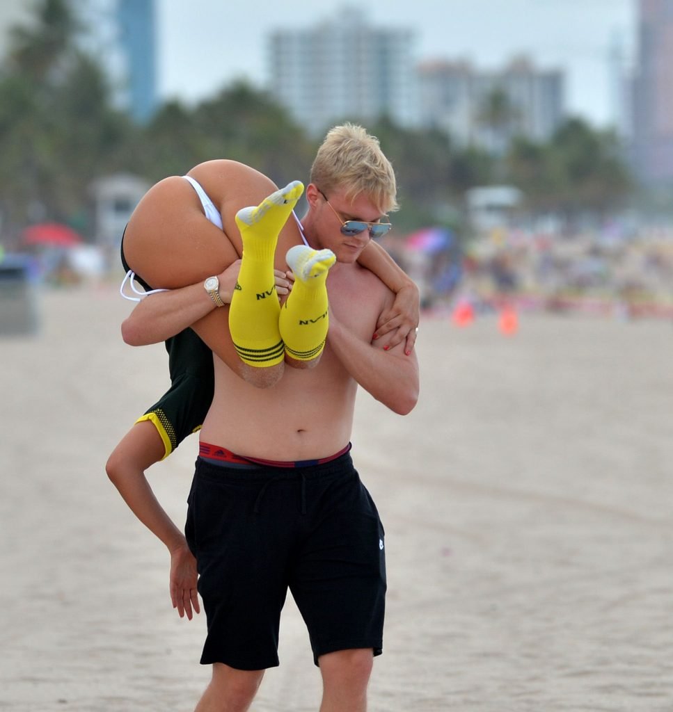 Claudia Romani luce increíblemente sexy con su camiseta del AC Milan jugando con su novio, el empresario Chris Johns en Sunny Isles Beach, 19/07/2017. Claudia Romani es modelo, ex estrella del programa francés de telerrealidad ‘Secret story 9’ y ganadora de la chica morena del año 2016 para Playboy Italia.