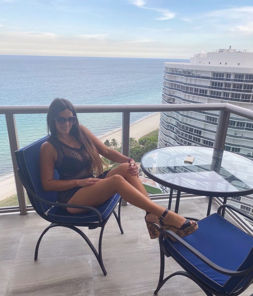 La modelo internacional Claudia Romani pasó el día en el resort St Regis en Bal Harbor, 20/07/2020. La personalidad de televisión llevaba un bikini negro, cuñas y lucía una toalla personalizada. Claudia se relajó junto a la piscina y posó para fotos luciendo en forma y bronceada en el increíble paisaje.