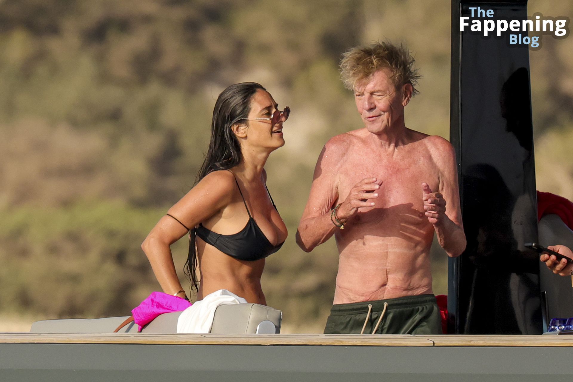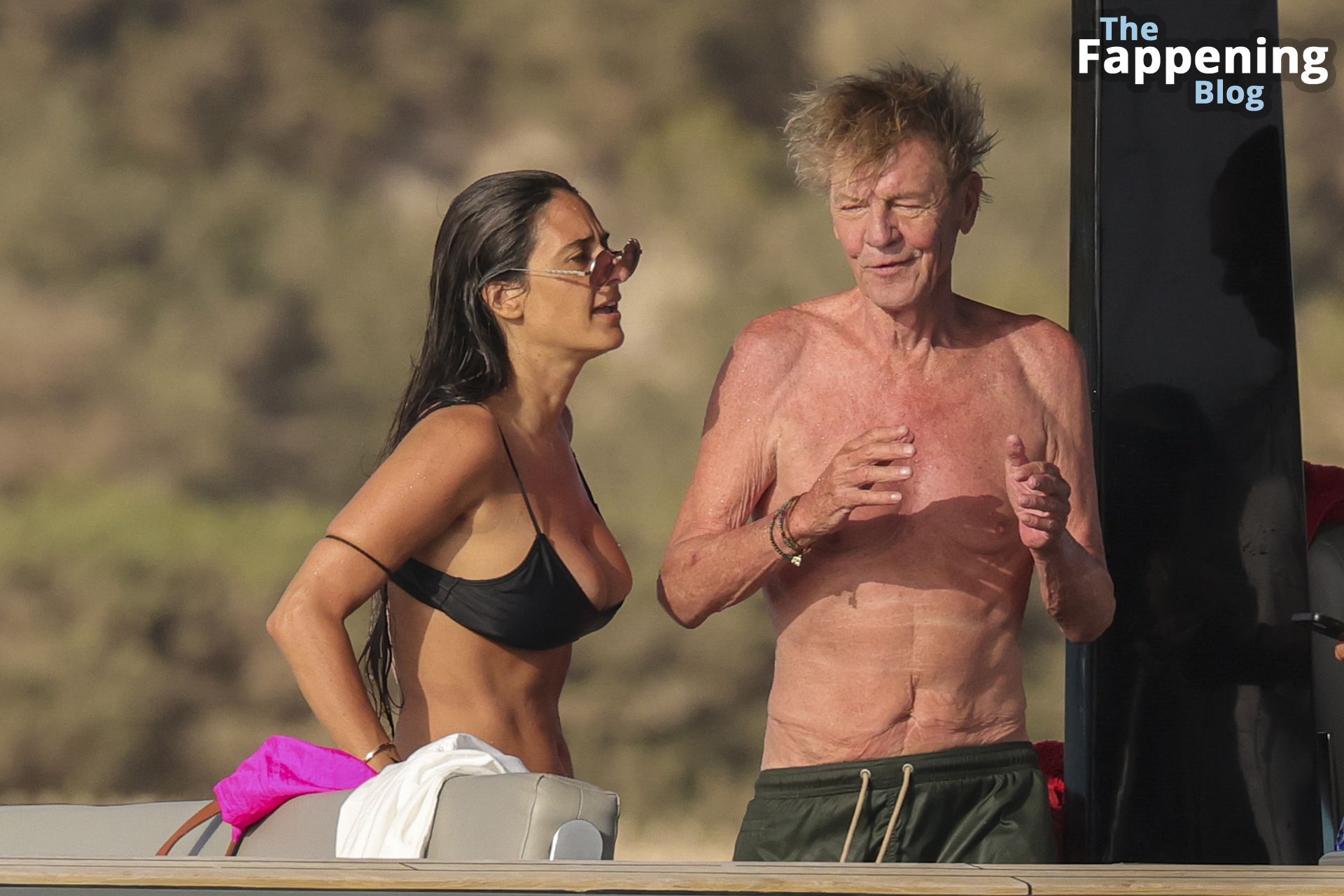 Ernst August von Hannover disfruta de sus vacaciones en Ibiza, España, 15/08/2023. Su novia Claudia Stilianopoulos mostró su cuerpo luciendo un bikini negro.