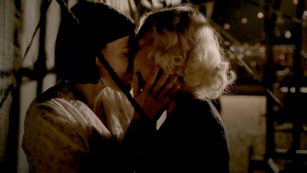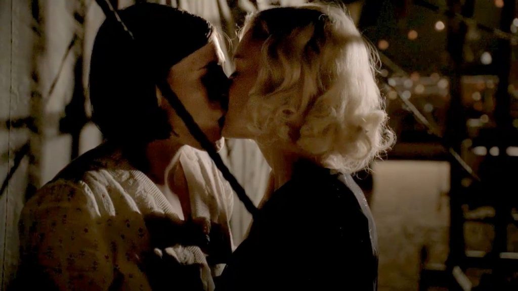 Comencemos con la escena lésbica caliente de Clea Duvall en “Carnivàle”. La escena comienza con su beso lésbico a Carla Gallo antes de que hagan una pausa por un segundo y luego vuelvan a besarse apasionadamente.