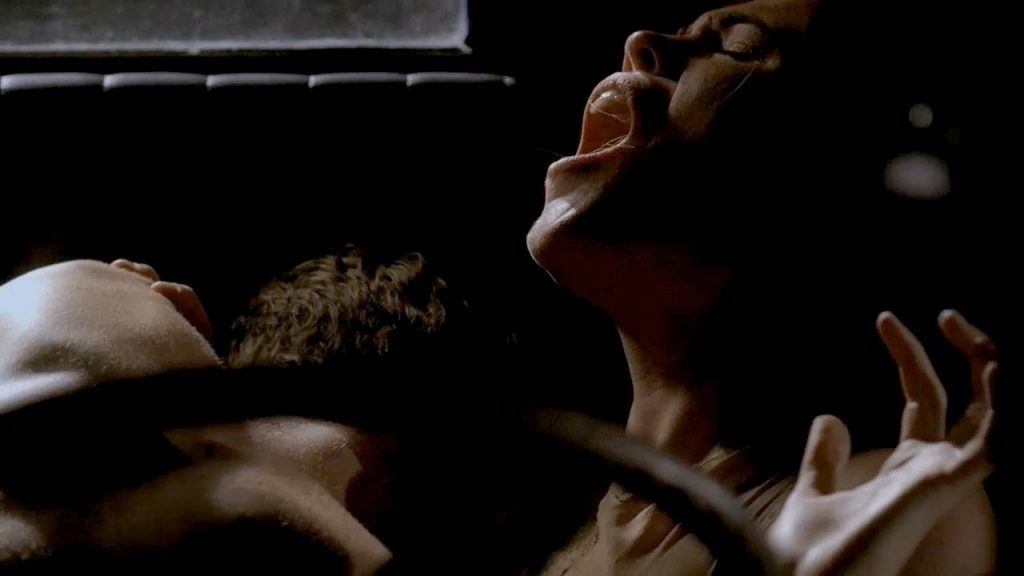 In one of my favorite scenes from “Carnivale”, we see Clea DuVall naked as she has sex in the front seat of a car as a storm takes place outside. She moans so nicely and makes this sex scene intense and unforgettable.