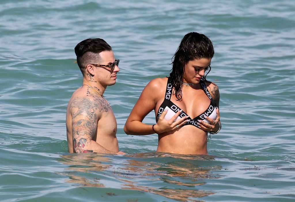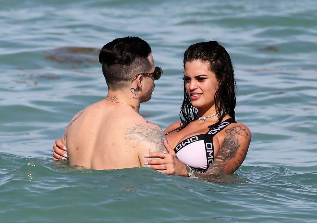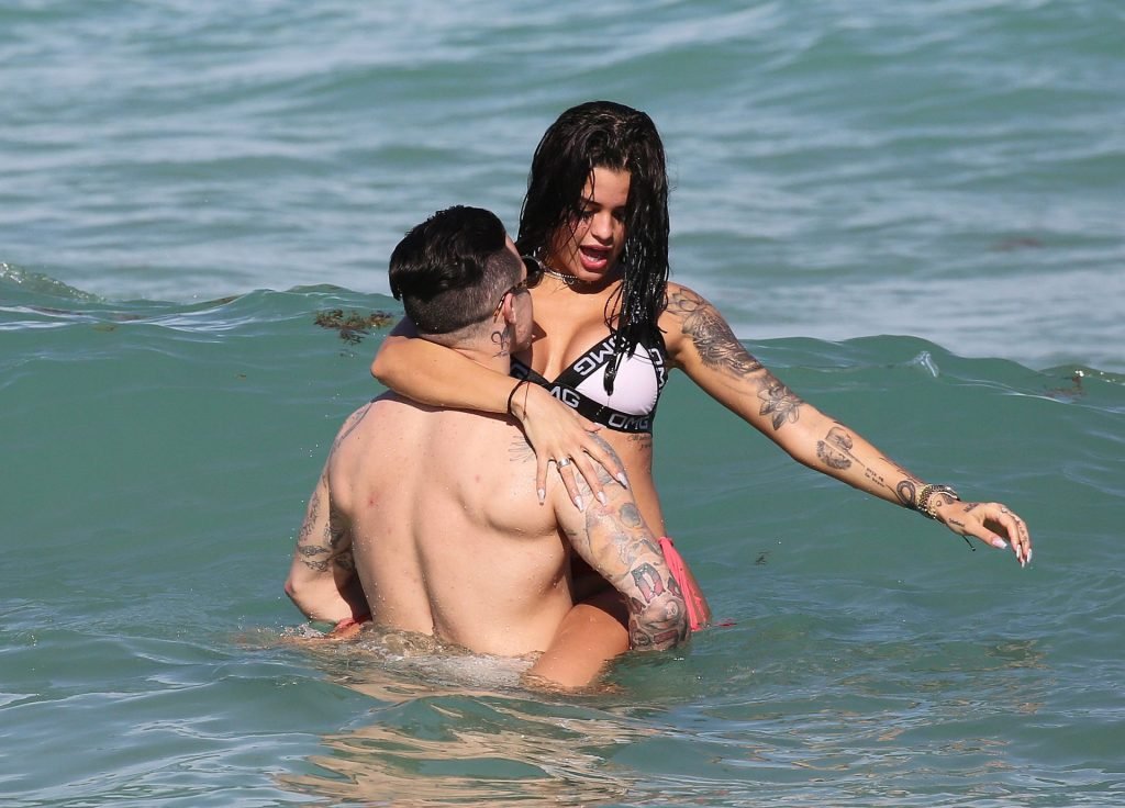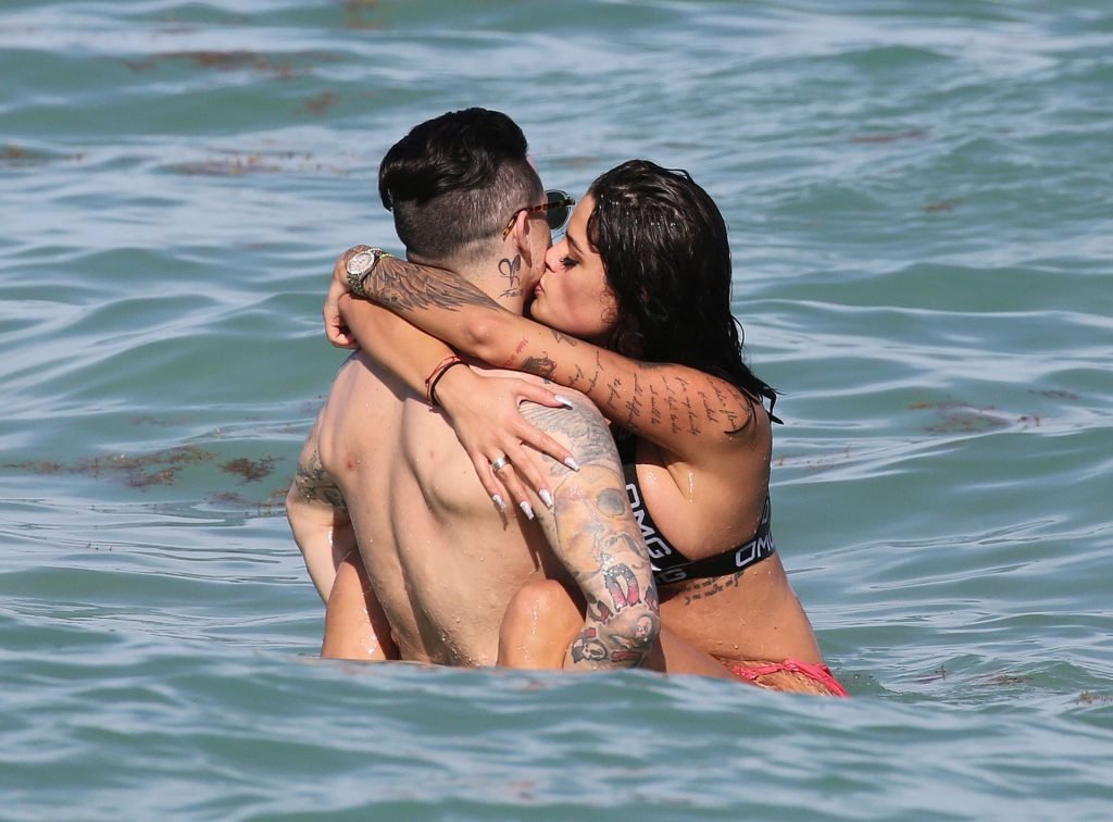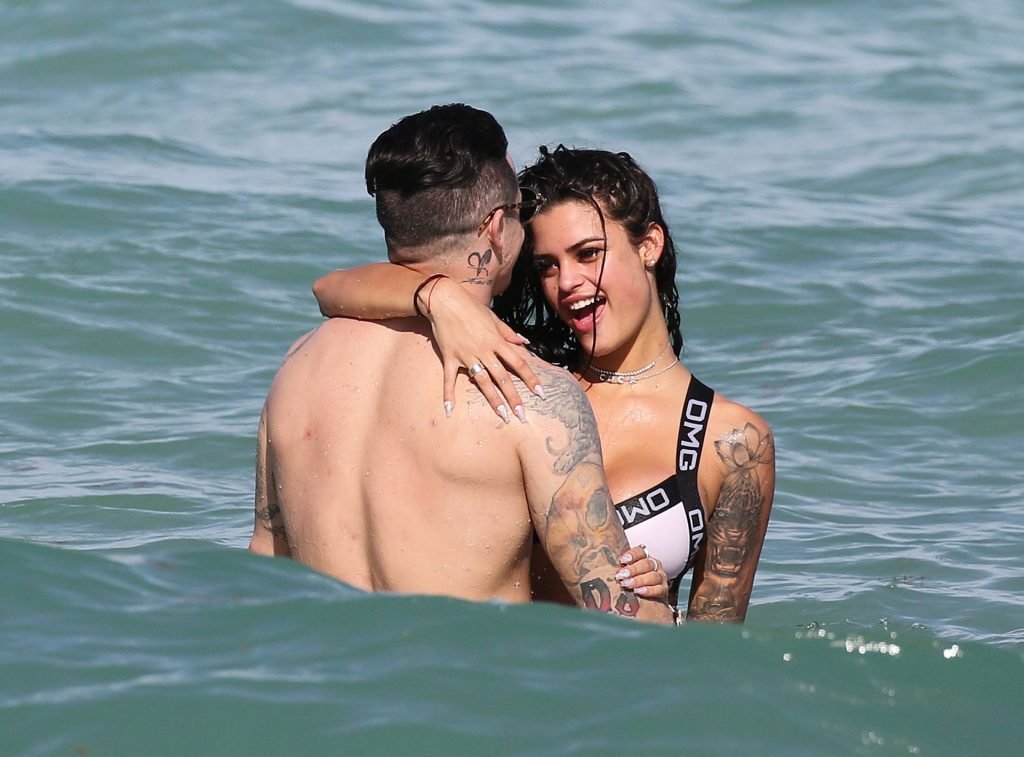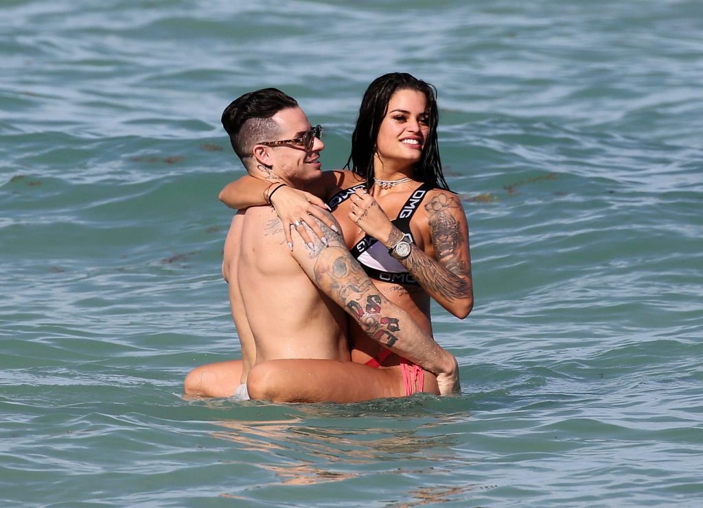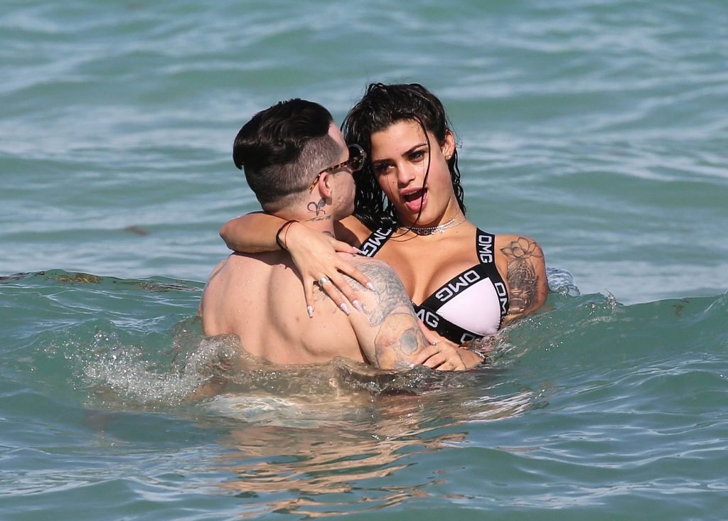 El exnovio de Jennifer Lopez, Casper Smart, no parece estar muy triste por la noticia del compromiso de su famosa ex, ya que se le ve besándose con una chica en bikini, la modelo/actriz Coca, mientras nadan en Miami, 11/03/2019.