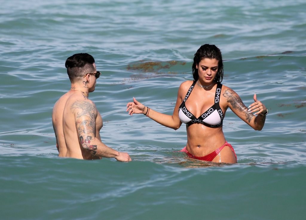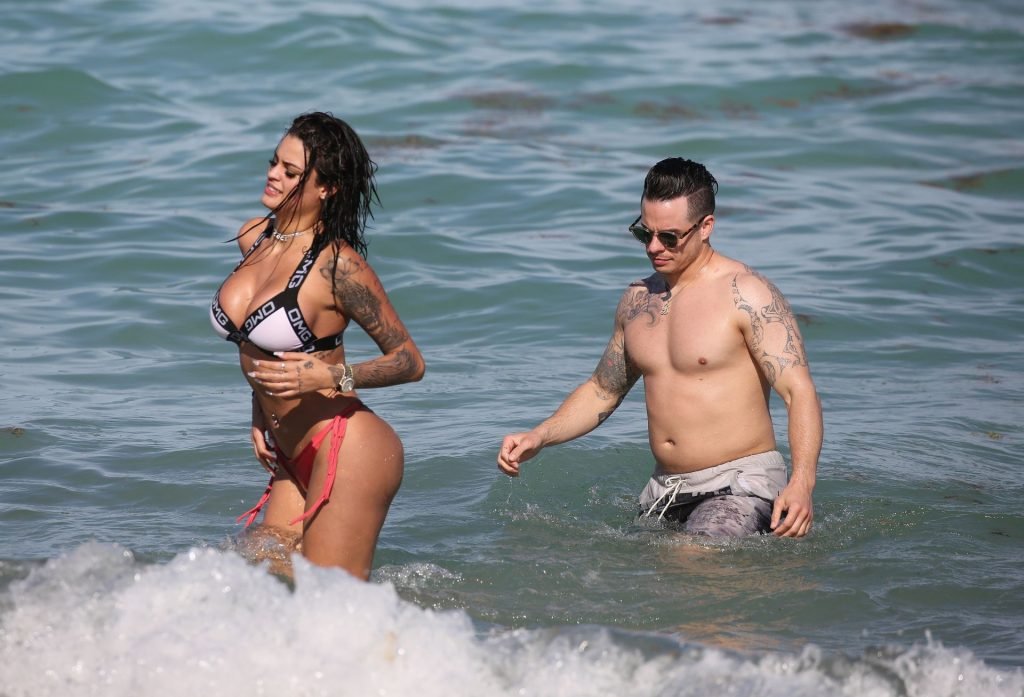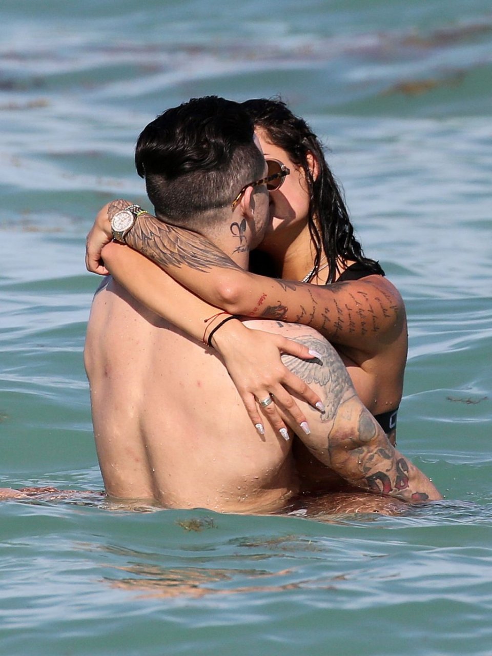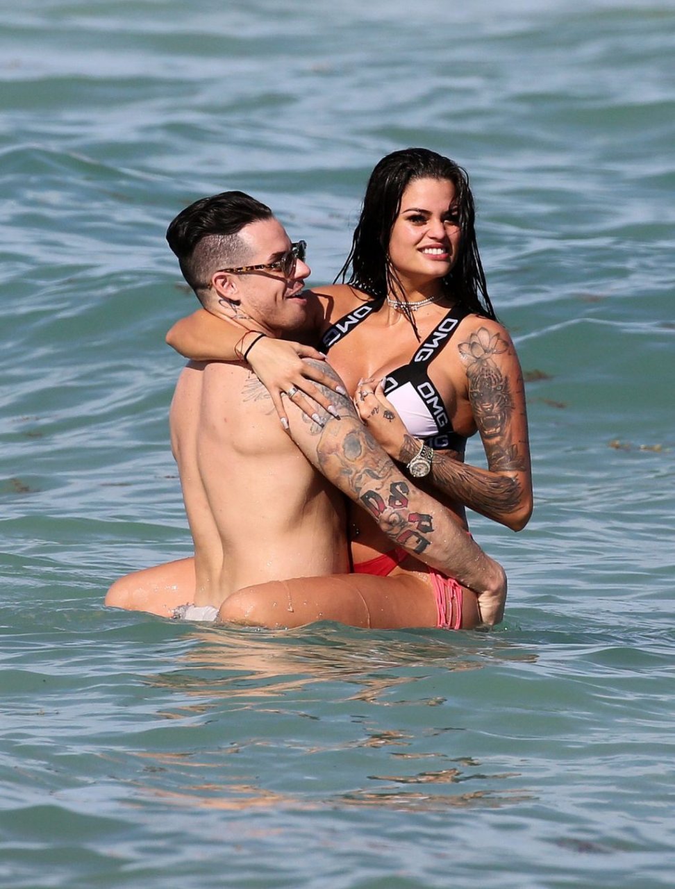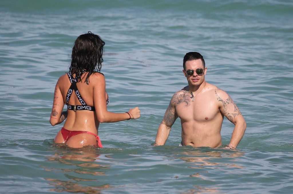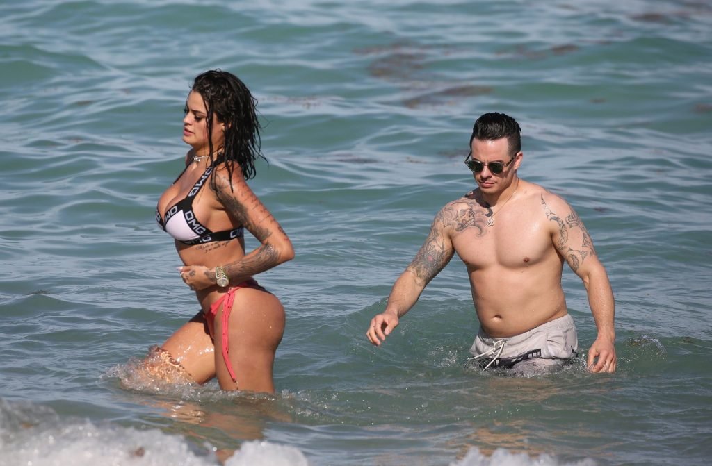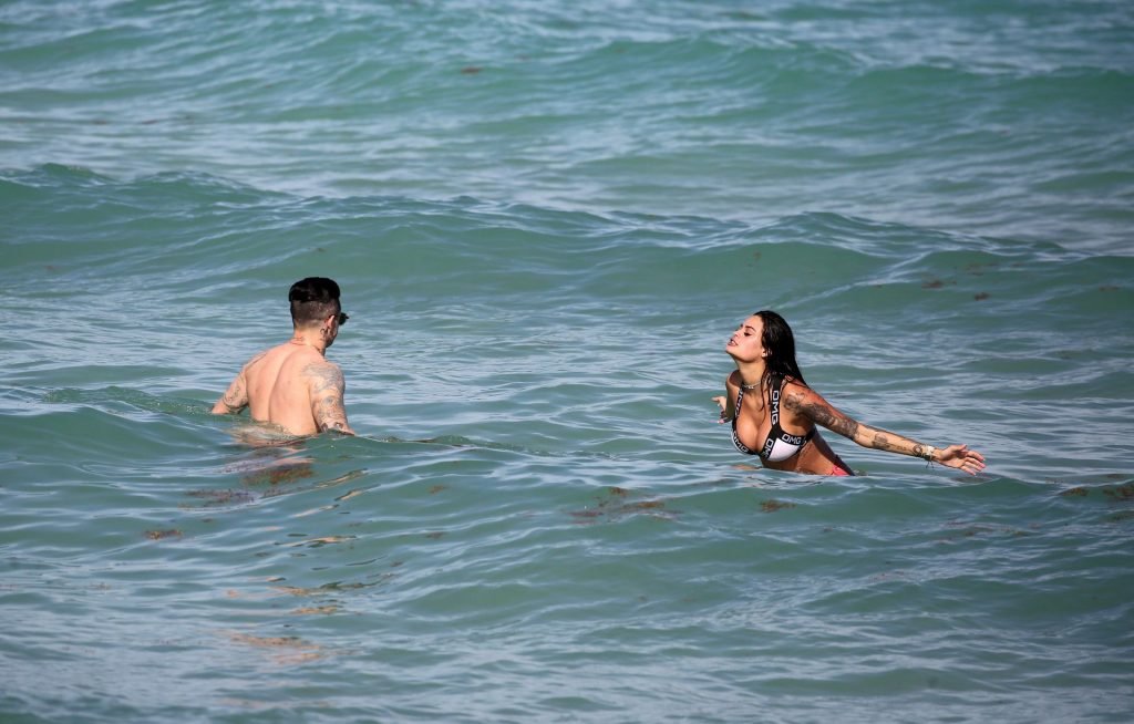 El exnovio de Jennifer Lopez, Casper Smart, no parece estar muy triste por la noticia del compromiso de su famosa ex, ya que se le ve besándose con una chica en bikini, la modelo/actriz Coca, mientras nadan en Miami, 11/03/2019.