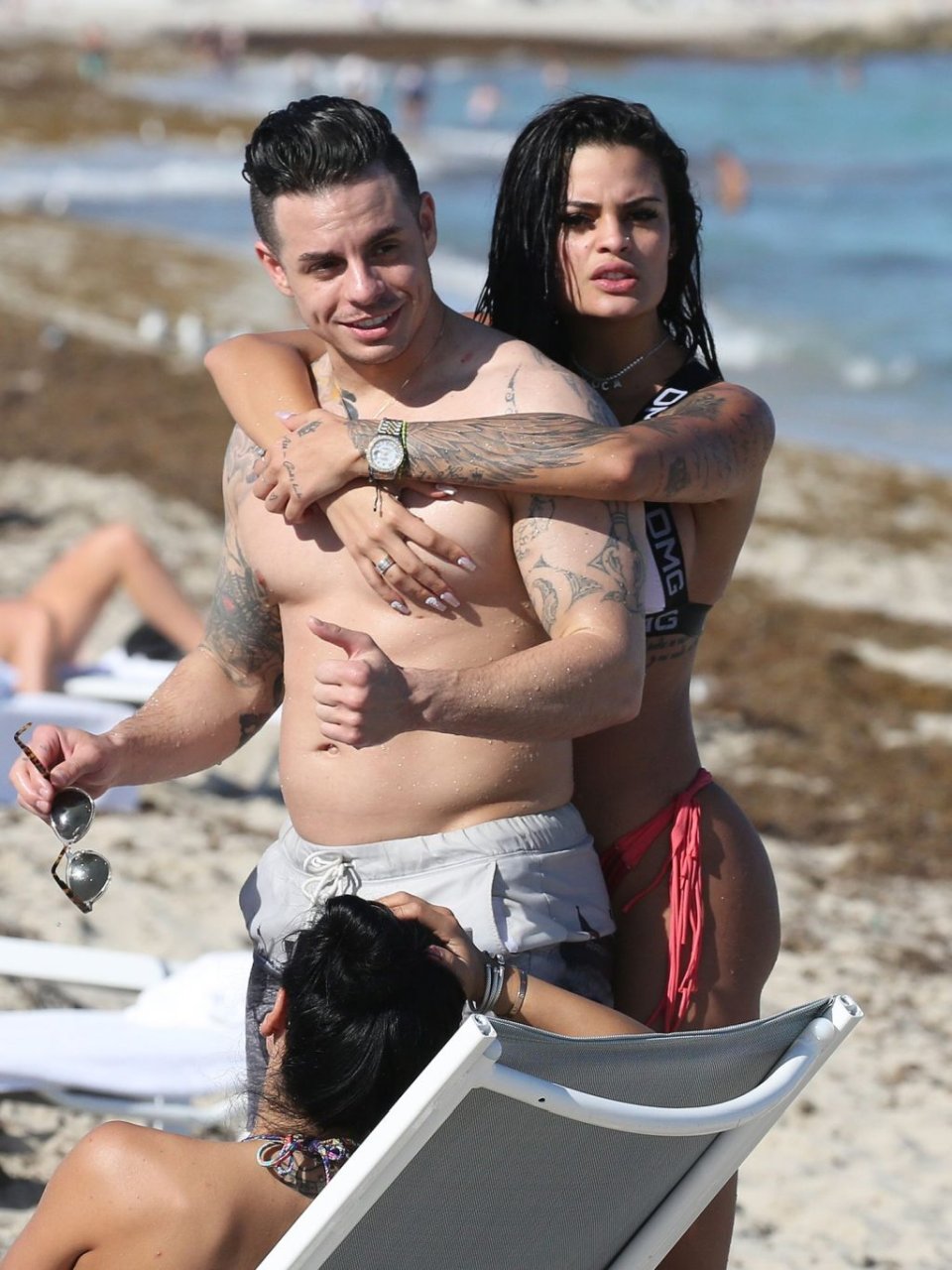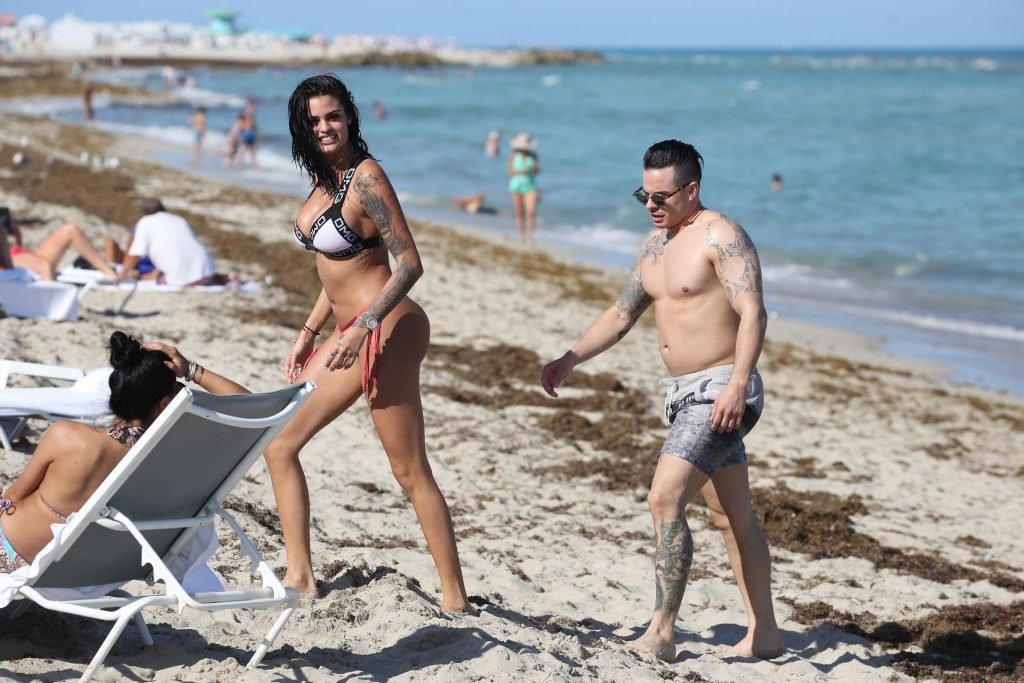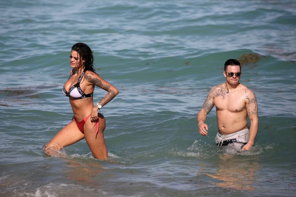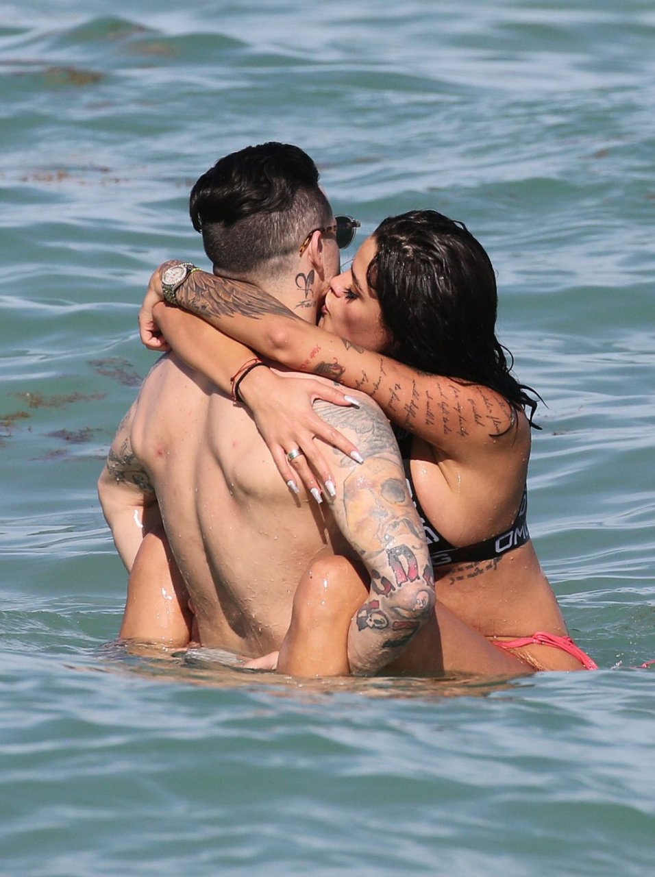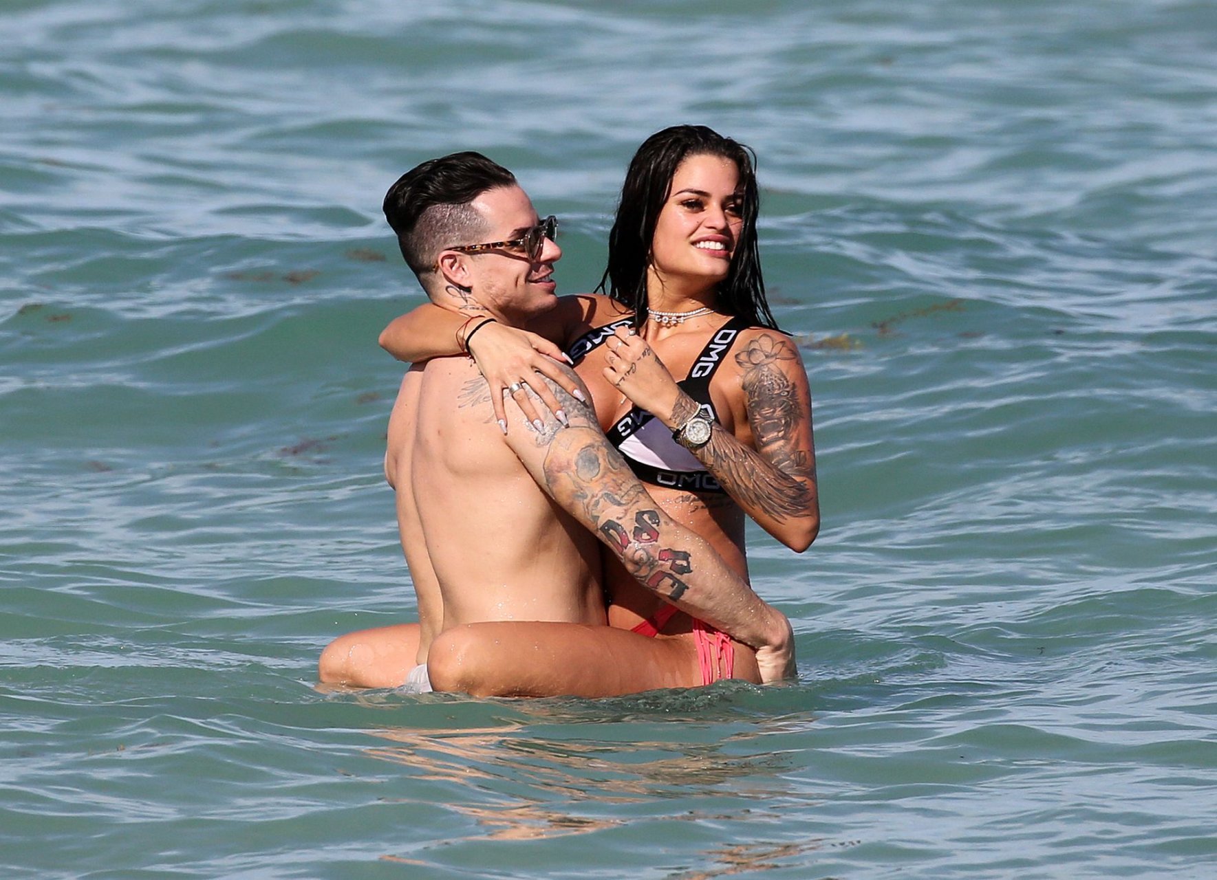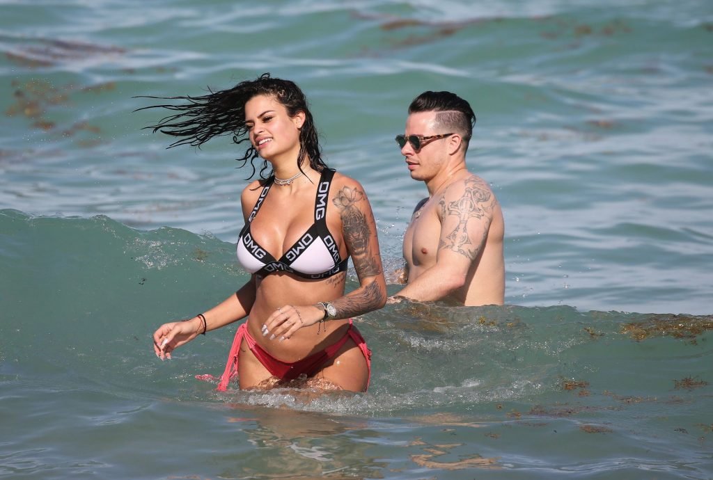 El exnovio de Jennifer Lopez, Casper Smart, no parece estar muy triste por la noticia del compromiso de su famosa ex, ya que se le ve besándose con una chica en bikini, la modelo/actriz Coca, mientras nadan en Miami, 11/03/2019.
