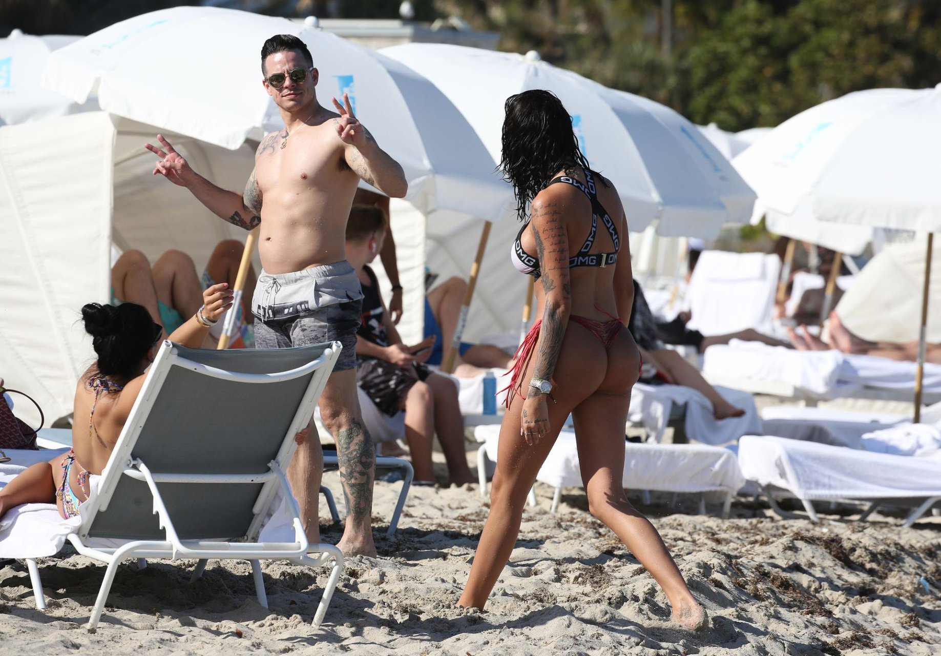 [Casper Smart] es visto besándose con una chica en bikini, la modelo/actriz Coca. Más tarde esa noche, la pareja fue acompañada por su amiga, Heroin, en su suite de hotel para un trío