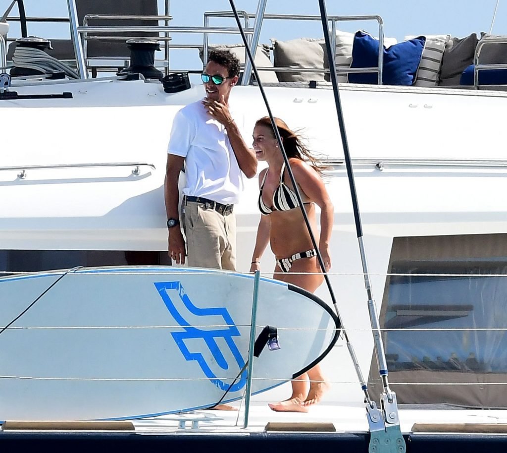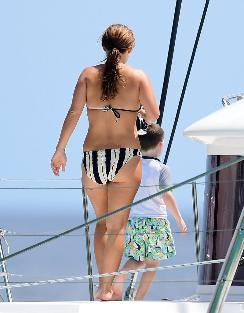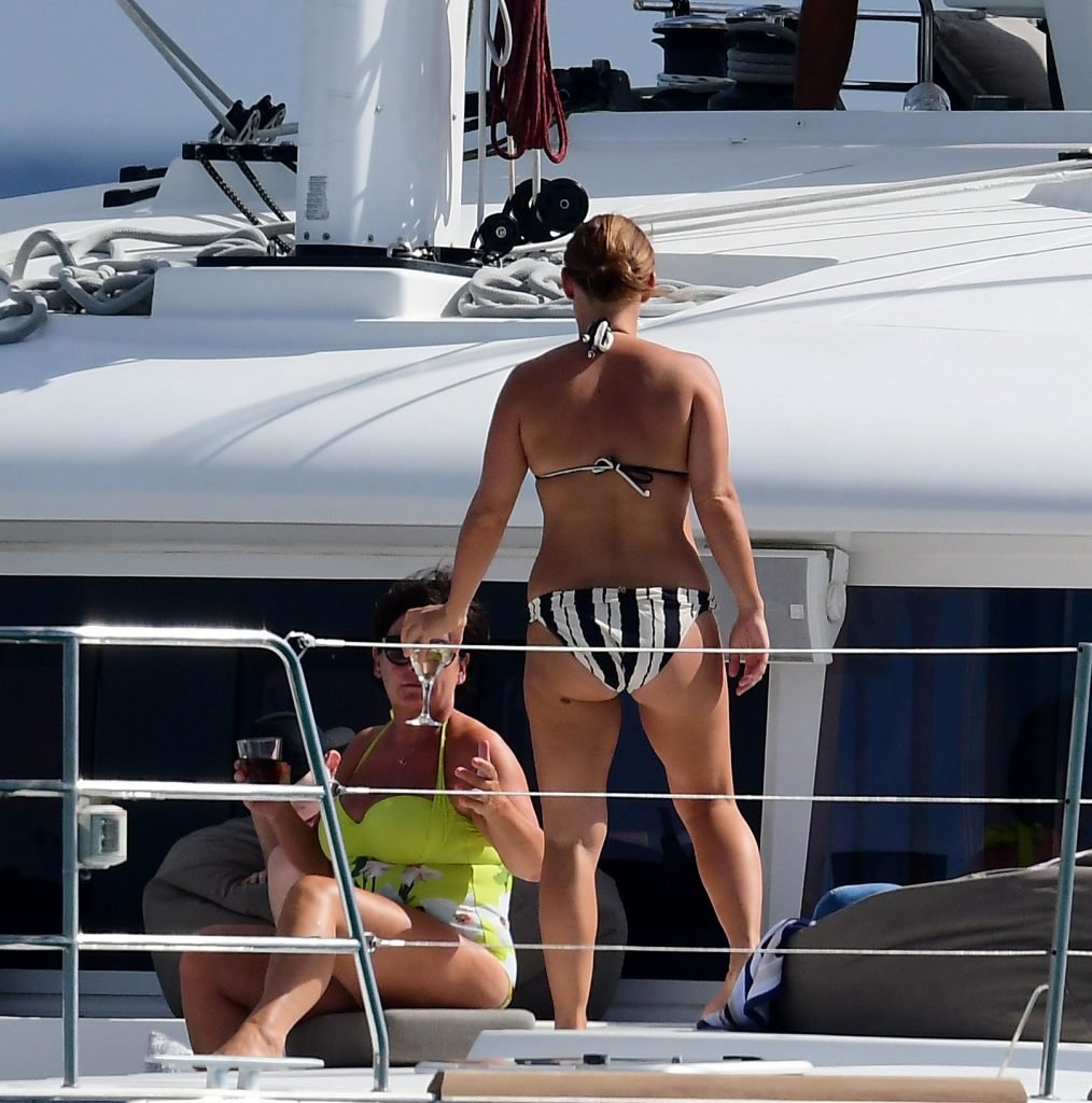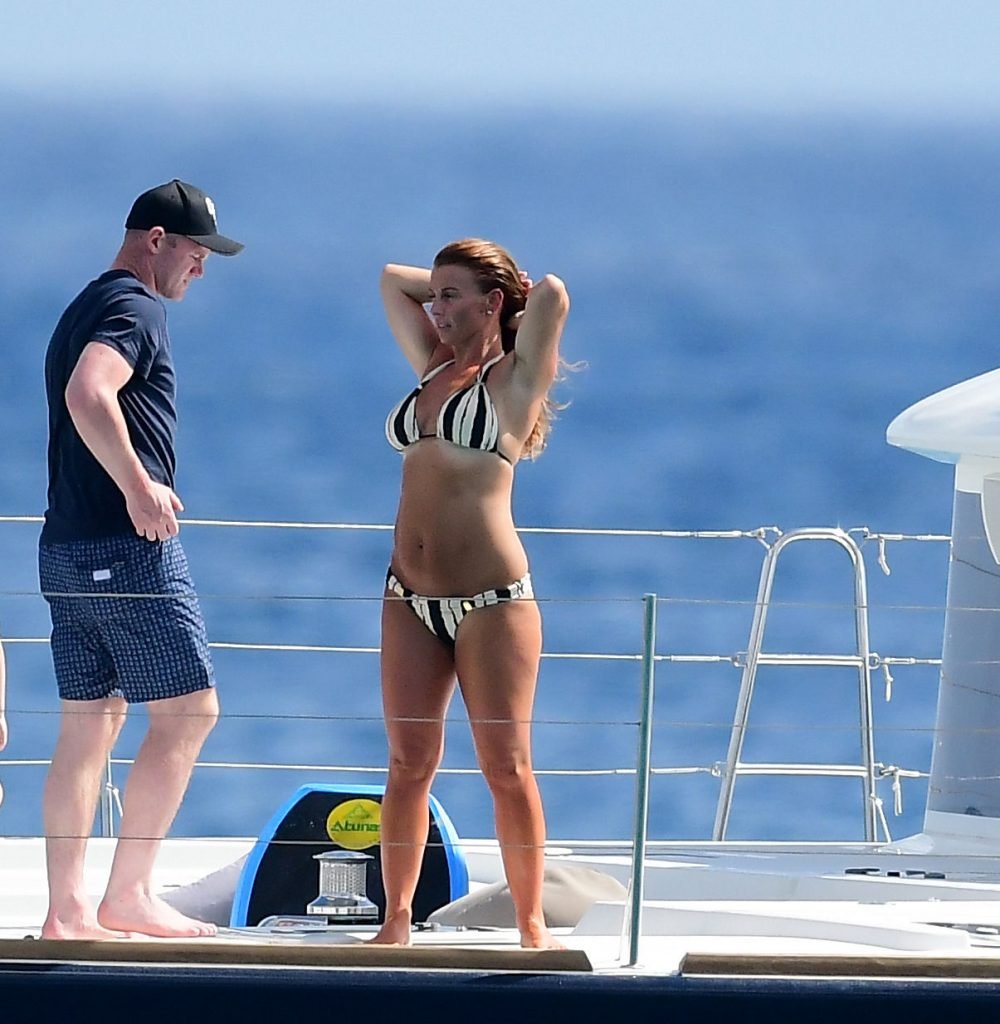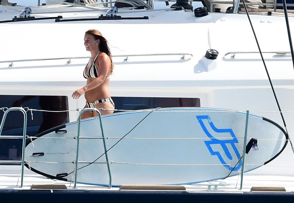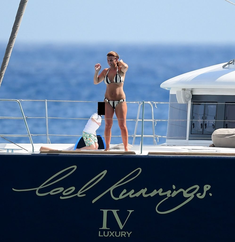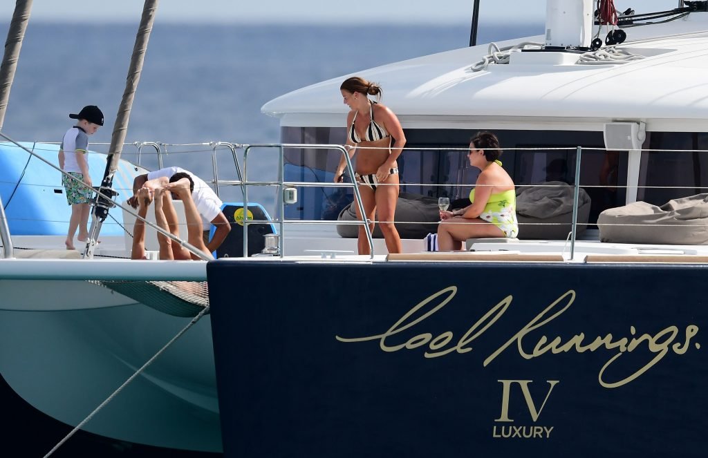 Coleen Rooney y su familia continúan sus vacaciones en Barbados, 28/05/2018. La periodista de 32 años llevaba un bikini blanco y negro en un yate con su famoso esposo, madre e hijos.